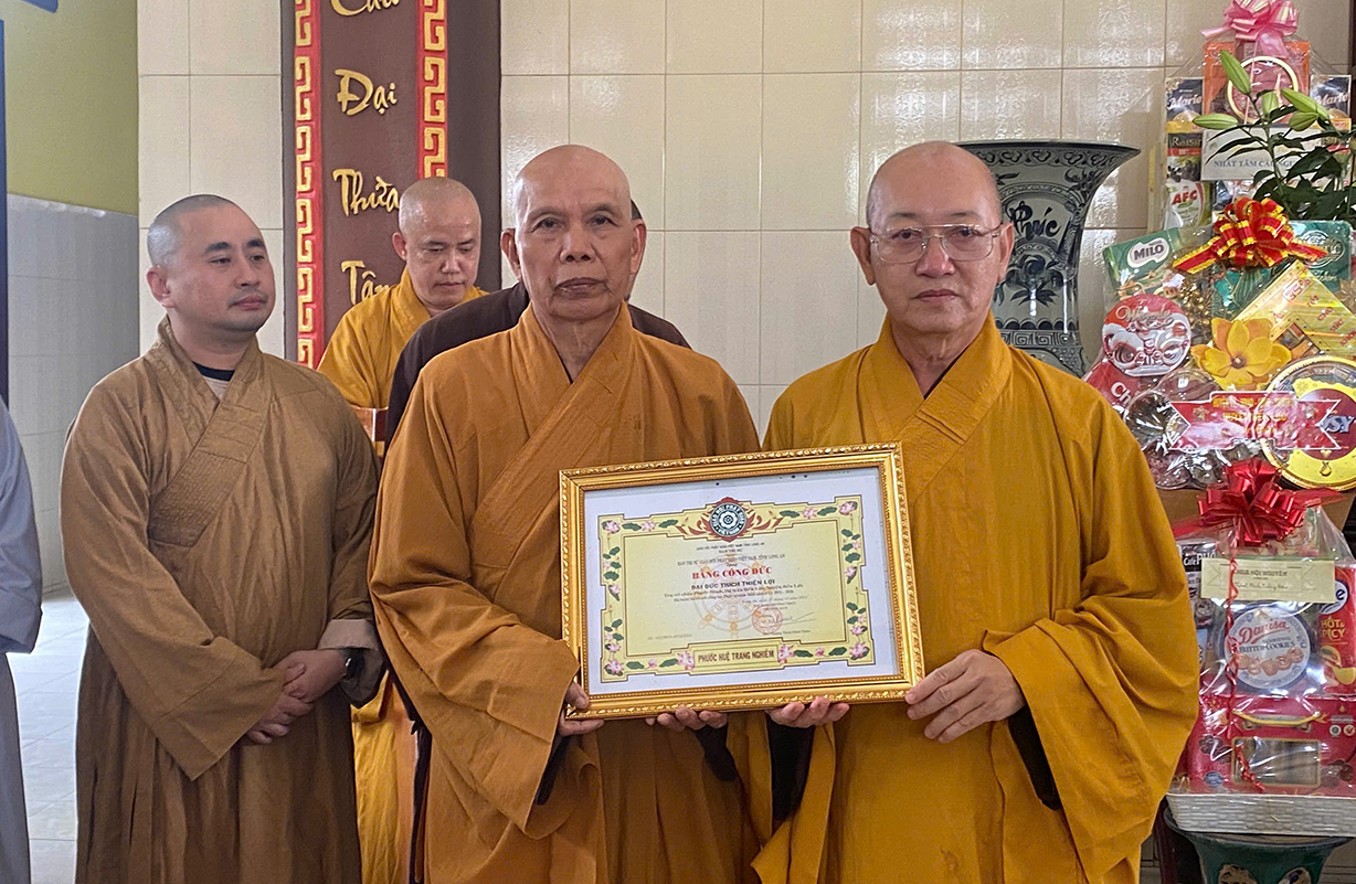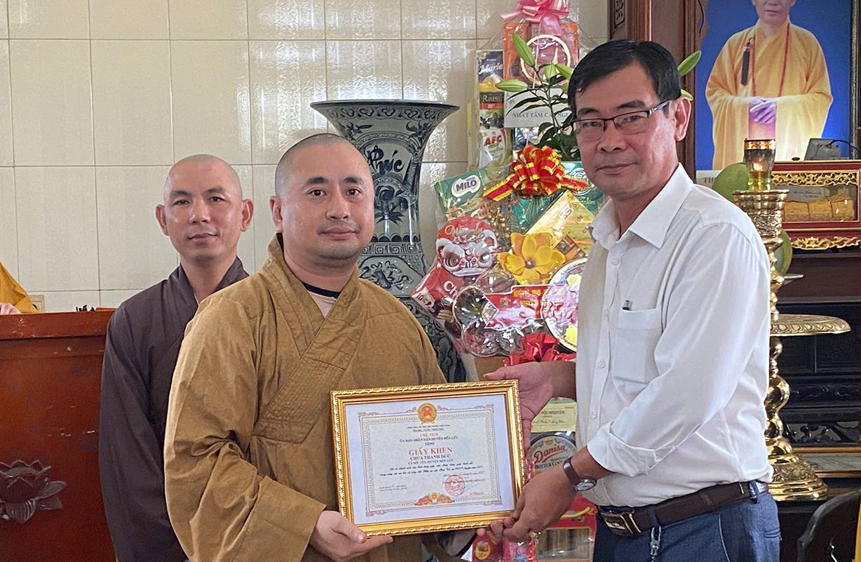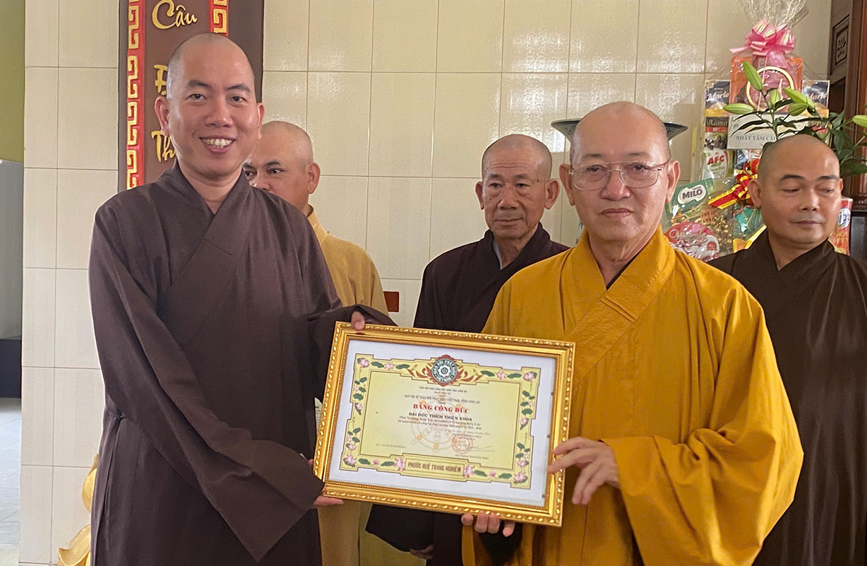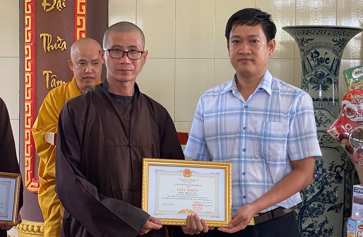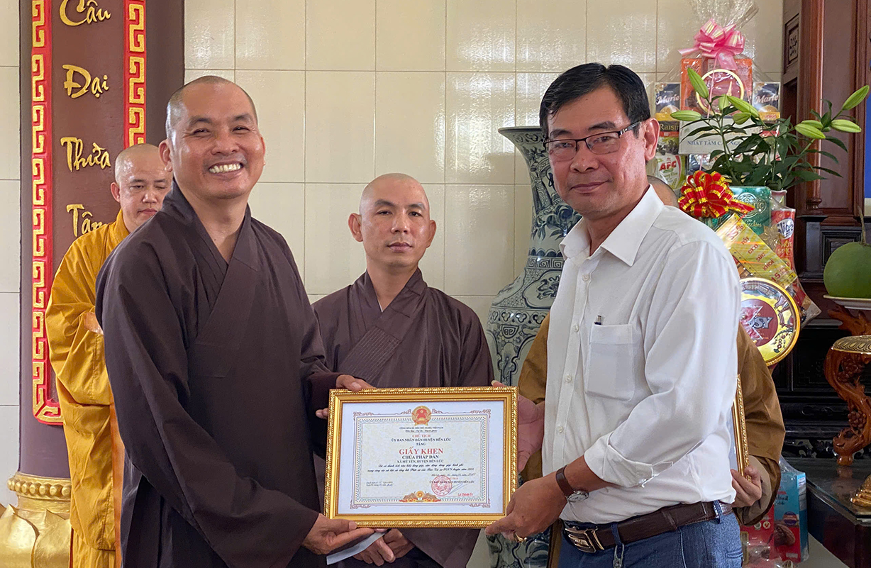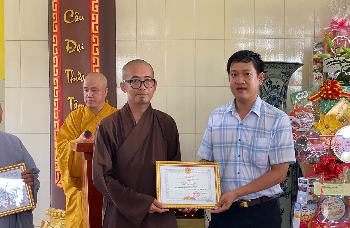 Ghi nhận đóng góp tích cực của tập thể Tăng Ni và các tự viện; ĐĐ. Thích An Nhựt – Trưởng ban Hướng dẫn Phật tử GHPGVN tỉnh Long An truyên đọc danh sách khen thưởng , BTS GHPGVN tỉnh Long An, UBND huyện Bến Lức đã trao tặng nhiều Bằng Tuyên Dương Công Đức, Bằng Công Đức và Giấy khen đến các tập thể và cá nhân tiêu biểu.