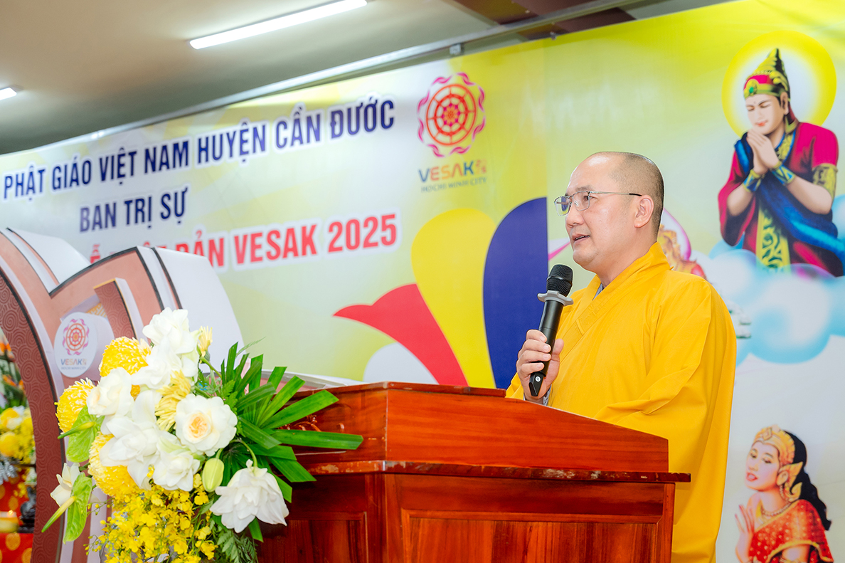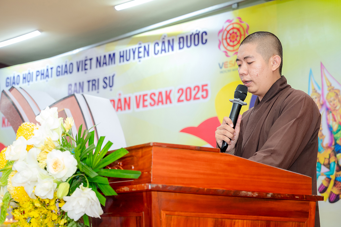 Khai mạc tại Buổi lễ Thượng tọa Thích Trí Minh – Uỷ viên Thường trực BTS GHPGVN tỉnh Long An, Trưởng BTS GHPGVN huyện Cần Đước đã gửi lời chúc sức khỏe đến toàn thể chúng hội, thông qua đó Thầy đã nhấn mạnh sức ảnh hưởng của Phật giáo trong lòng dân tộc qua tinh thần “ Phụng sự chúng sanh là cúng dường Chư Phật”.