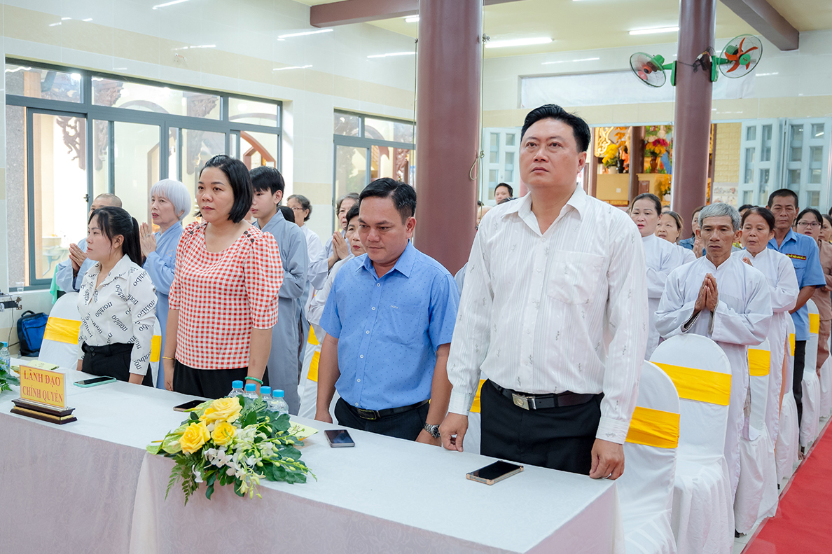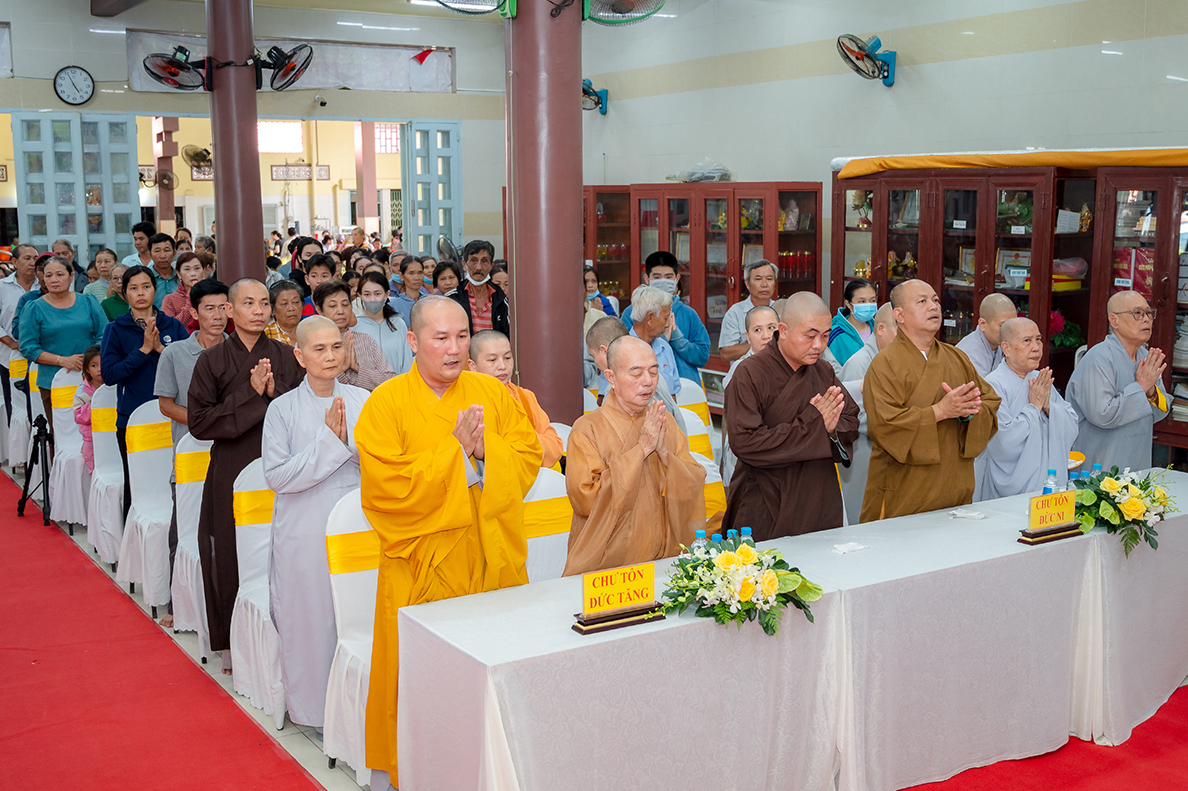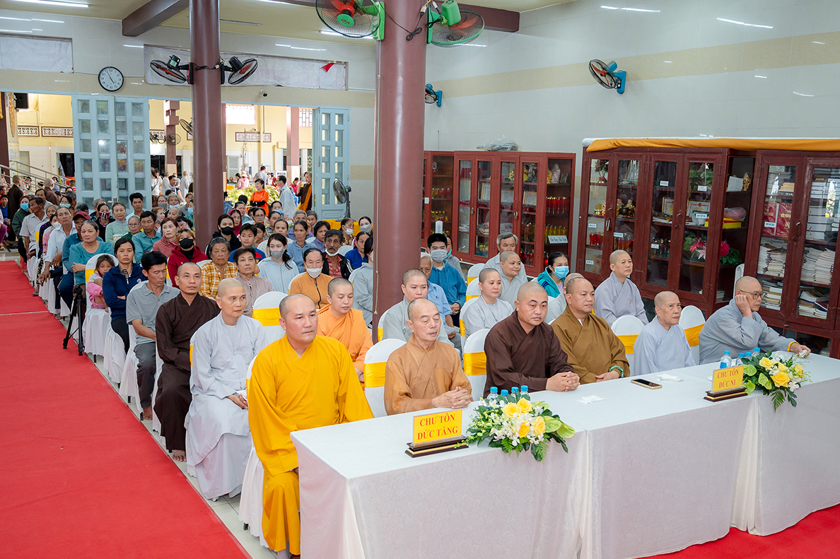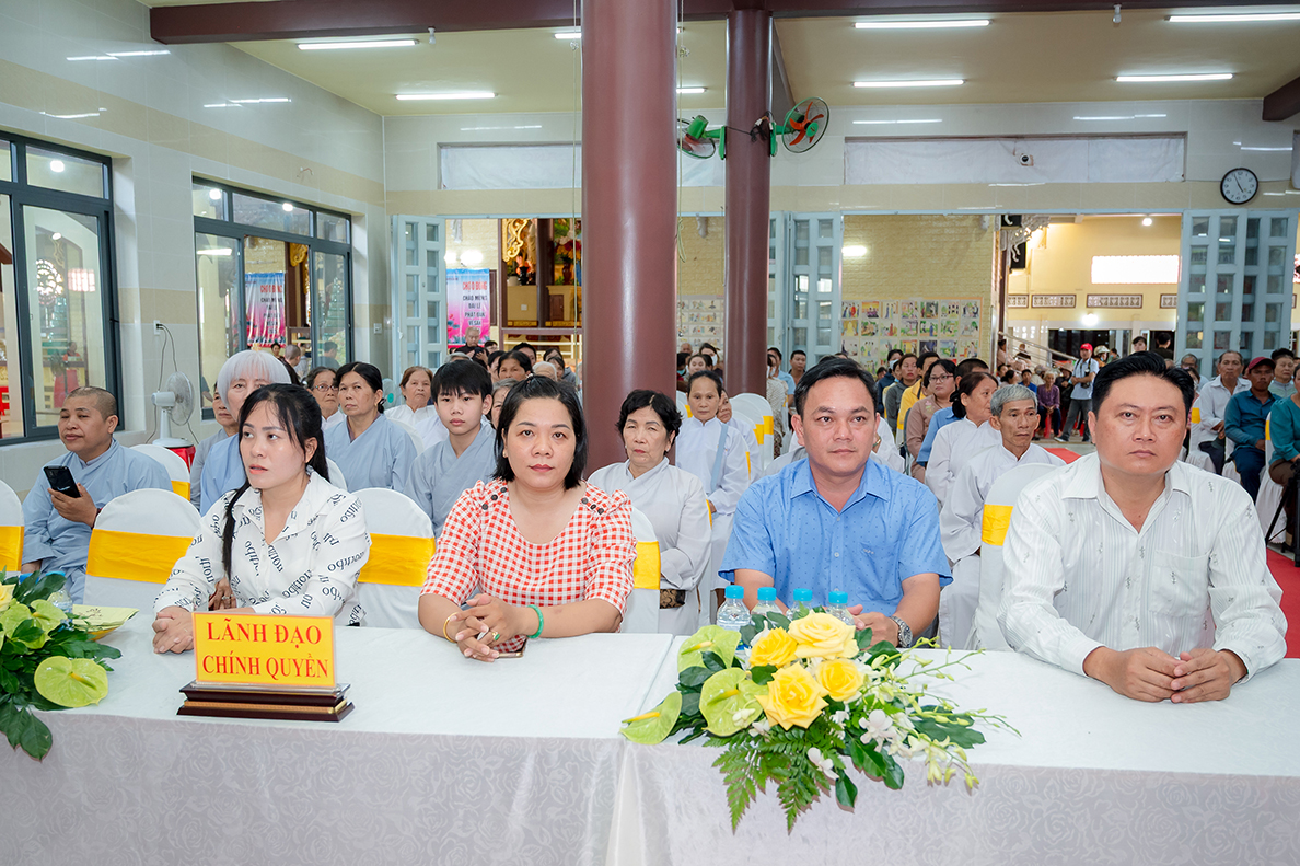 Quang lâm buổi lễ có sự quang lâm của Hòa thượng Thích Đức Hảo – Chứng minh BTS GHPGVN huyện Cần Đước, Thượng tọa Thích Trí Minh – Ủy viên Thường trực BTS GHPGVN tỉnh Long An, Trưởng BTS GHPGVN huyện Cần Đước, Thượng tọa Thích Tâm Hướng – Uỷ viên BTS GHPGVN tỉnh Long An, Phó Trưởng Ban Thường trực GHPGVN huyện Cần Đước, Đại đức Thích Quảng Giác – Uỷ viên BTS GHPGVN tỉnh Long An, Phó Trưởng BTS GHPGVN huyện Cần Đước, Đại đức Thích Nguyên Tịnh – Uỷ viên BTS GHPGVN tỉnh Long An, Chánh Thư Ký BTS GHPGVN huyện Cần Đước, Ni trưởng Thích Nữ Chúc Đăng, Ni trưởng Thích Nữ Chúc Viên – Chứng minh Phân ban Ni giới BTS GHPGVN huyện Cần Đước, Sư Cô Thích Nữ Huệ Hưng – Trưởng Phân Ban Ni giới huyện, Phó Trưởng BTS GHPGVN huyện Cần Đước, Ni Sư Thích Nữ Chúc Phướng – Trưởng Ban Hoằng pháp BTS GHPGVN huyện, Sư cô Thích Nữ Diệu Nguyên – Trưởng Ban từ thiện – xã hội Phật giáo huyện, Chư Tôn đức Tăng, Ni, thường trực BTS GHPGVN huyện Cần Đước, đông đảo quần chúng, tín đồ, Phật tử tham dự.