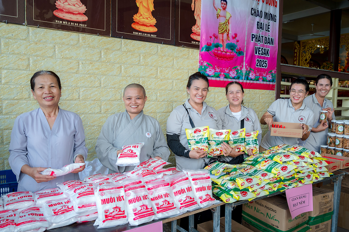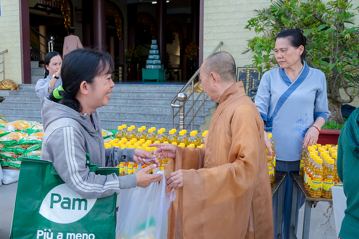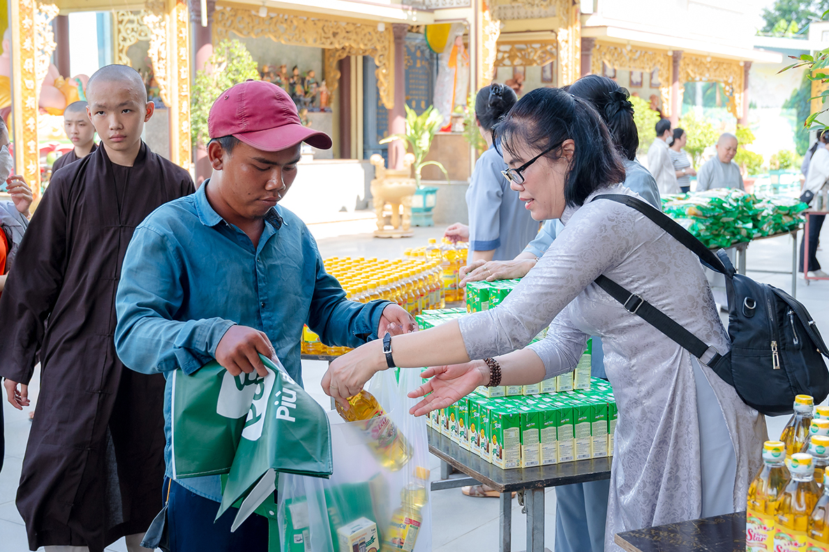 Phiên chợ 0 đồng được đón nhận tấm lòng hỡ trợ từ Chư tôn đức Thường trực BTS trong huyện, Qúy Tăng, Ni trụ trì các Tự viện và Mạnh Thường quân, Phật tử xa gần hỗ trợ, với hơn 26 mặt hàng hóa, nhu yếu phẩm cần thiết gửi đến các gia đình đủ duyên đón nhận.