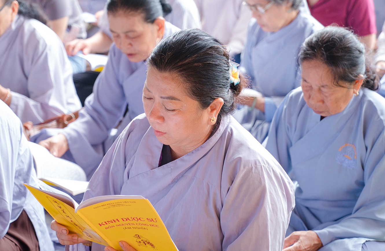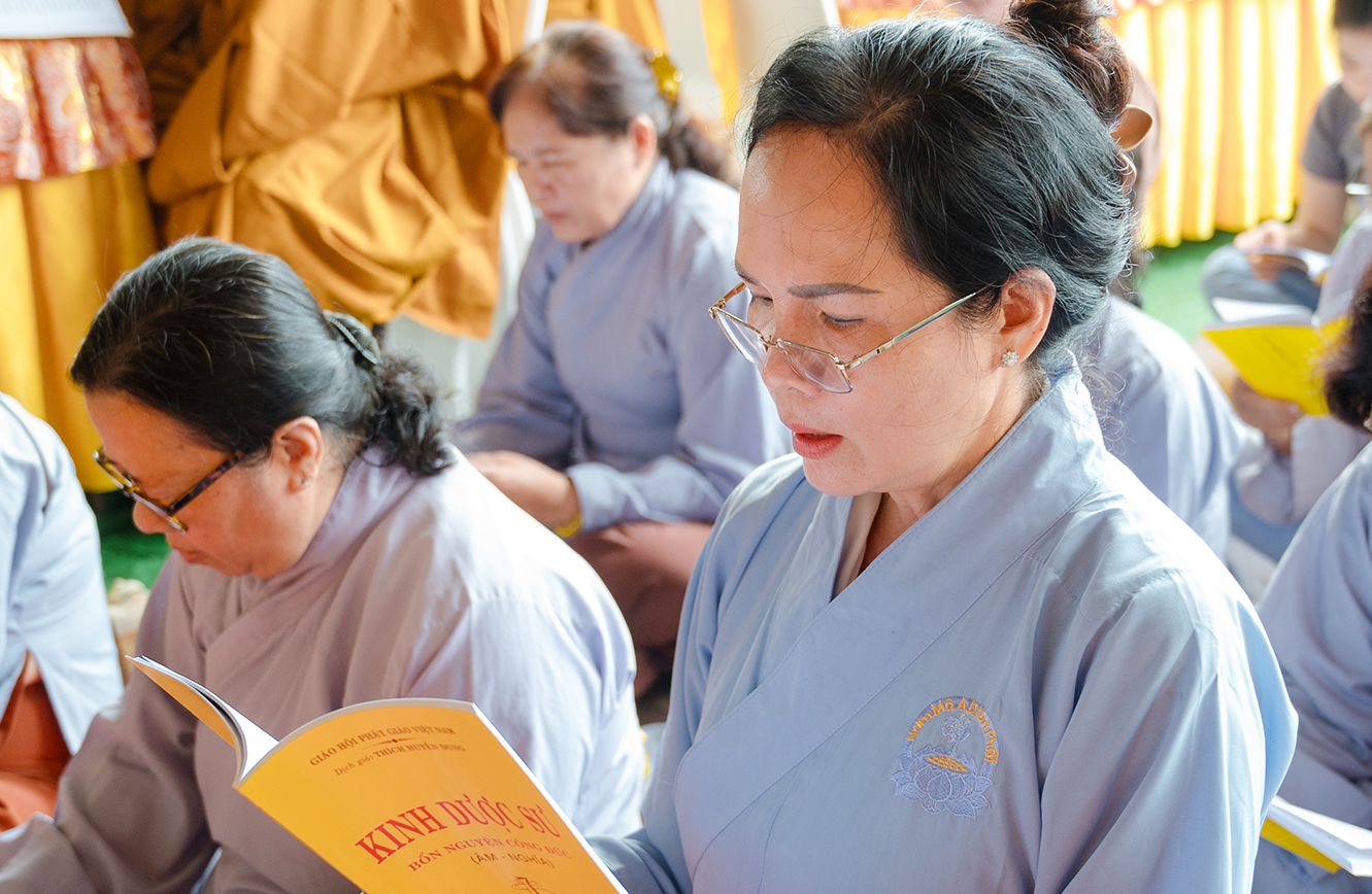 Toàn thể Chư tôn đức đã nhất tâm trì tụng Kinh Dược Sư và gia tâm trì niệm thần chú Quán đảnh để mong cầu Quốc thái Dân an và những điều tốt đẹp nhất đến với ngôi Chùa Phật Quang cũng như Đại đức Trụ trì được phước duyên viên mãn.