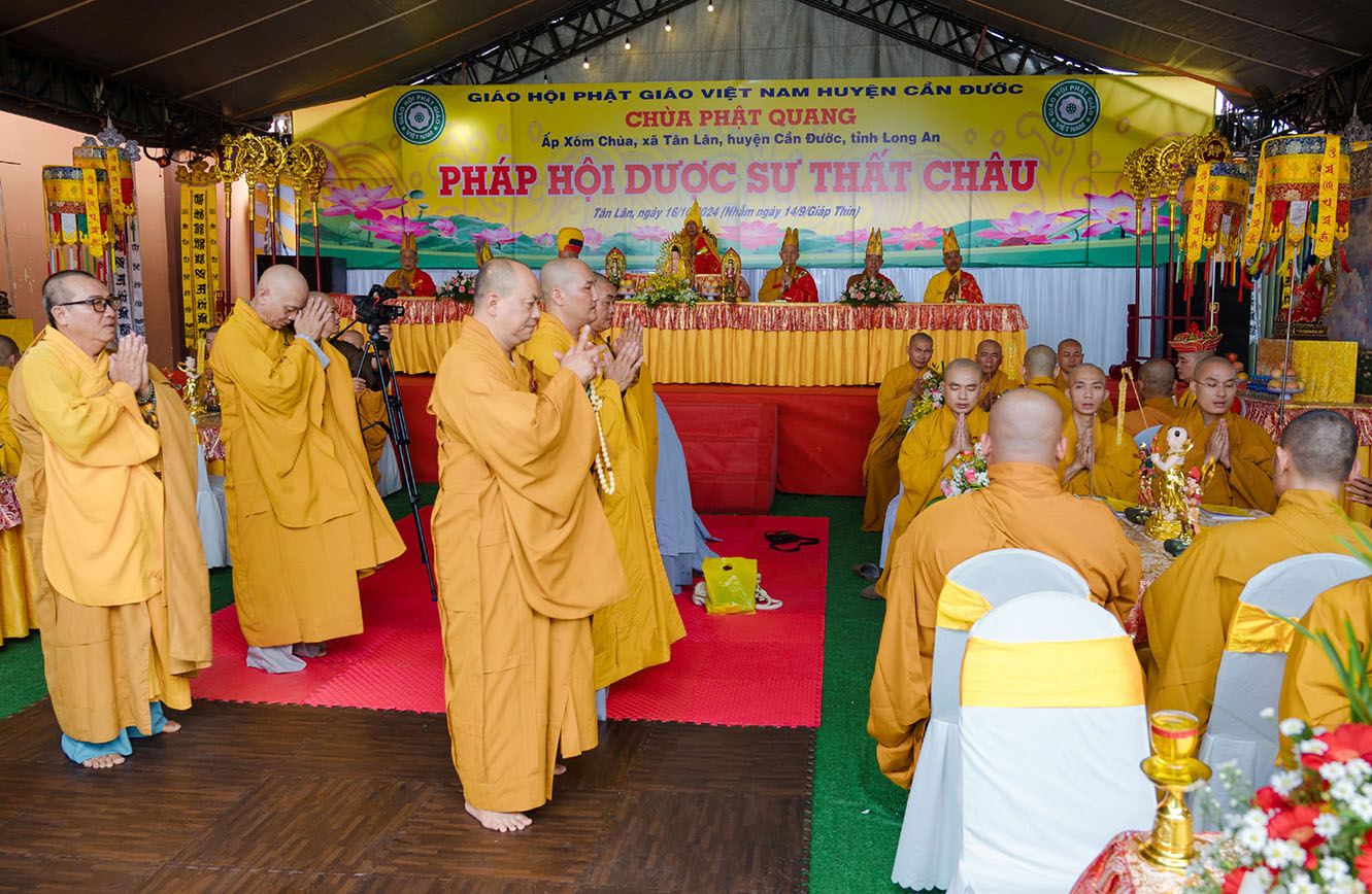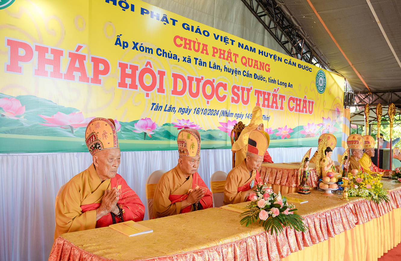 Sáng ngày 16 tháng 10 năm 2024 (nhằm ngày 14 tháng 9 năm Giáp Thìn), Chùa Phật Quang, ấp Xóm Chùa, xã Tân Lân, Cần Đước, Long An, trang nghiêm thiết lễ tạ đàn Dược Sư Thất Châu.