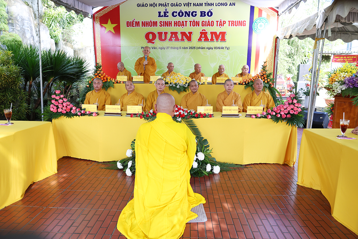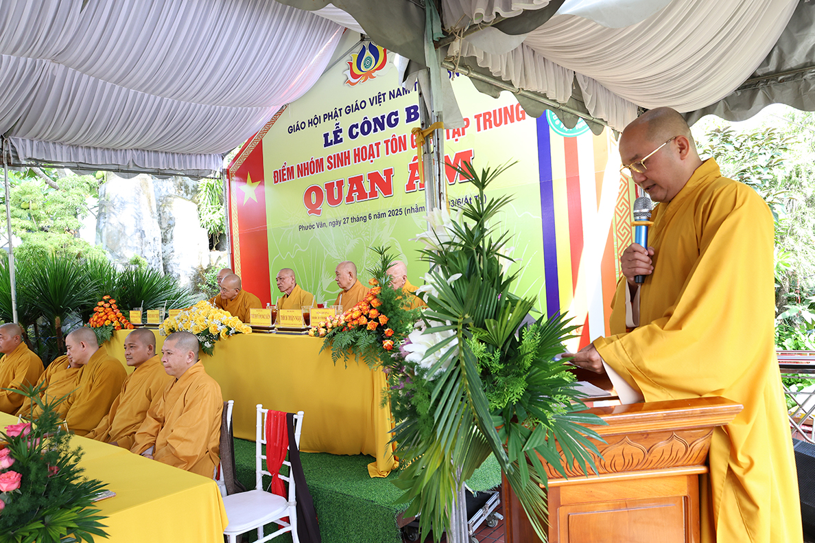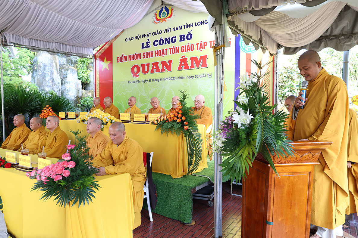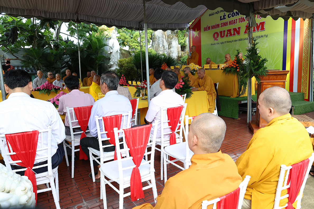 Tại buổi lễ, Đại đức Thích Lệ Duyên- Phó Ban Trị sự kiêm chánh thư ký BTS GHPGVN tỉnh công bố quyết định công nhận Điểm nhóm Sinh hoạt Tôn giáo Tập trung Quan Âm do Đại đức Thích Lệ Duyên thường trú chịu trách nhiệm quản lý sinh hoạt.