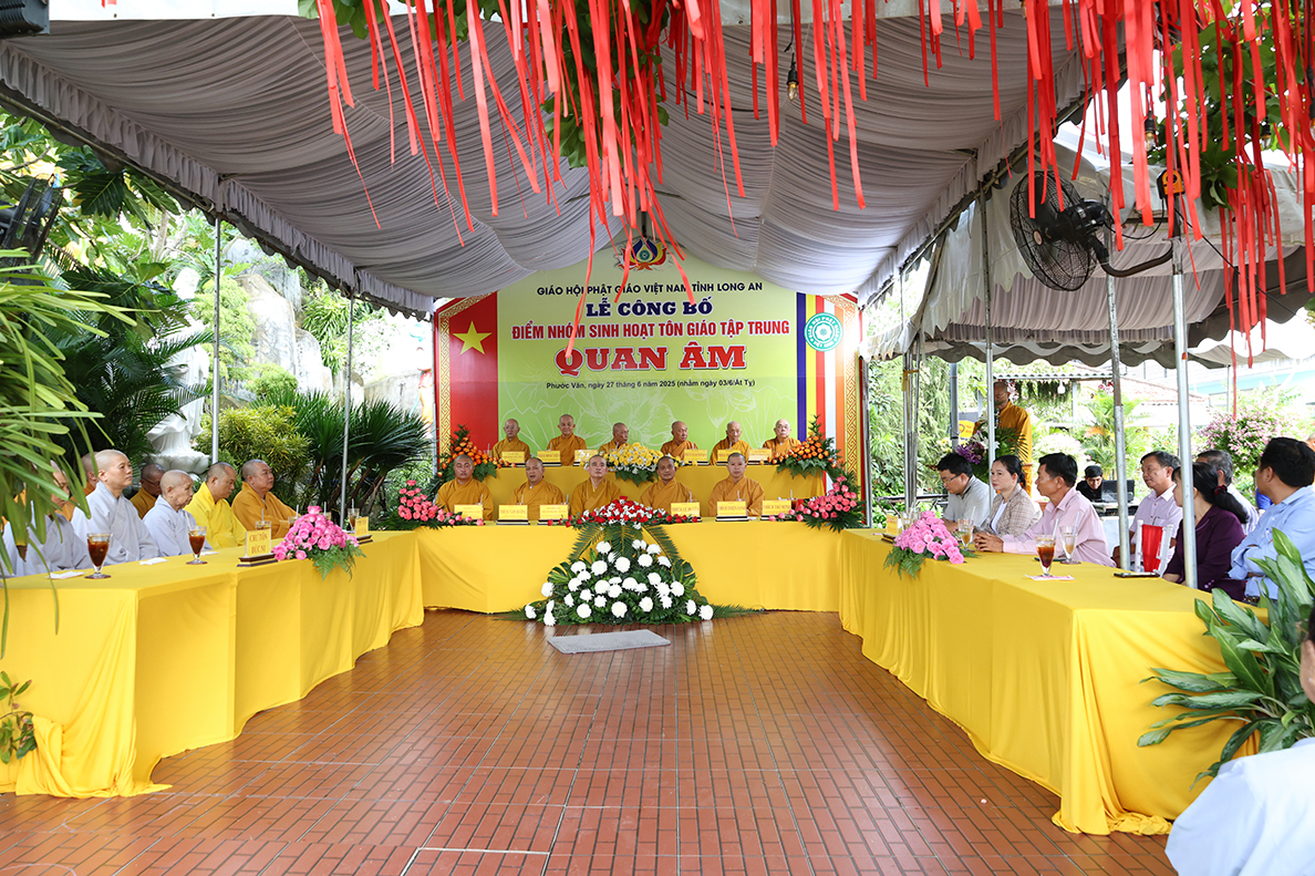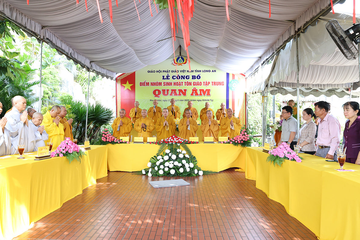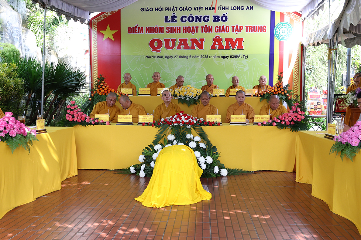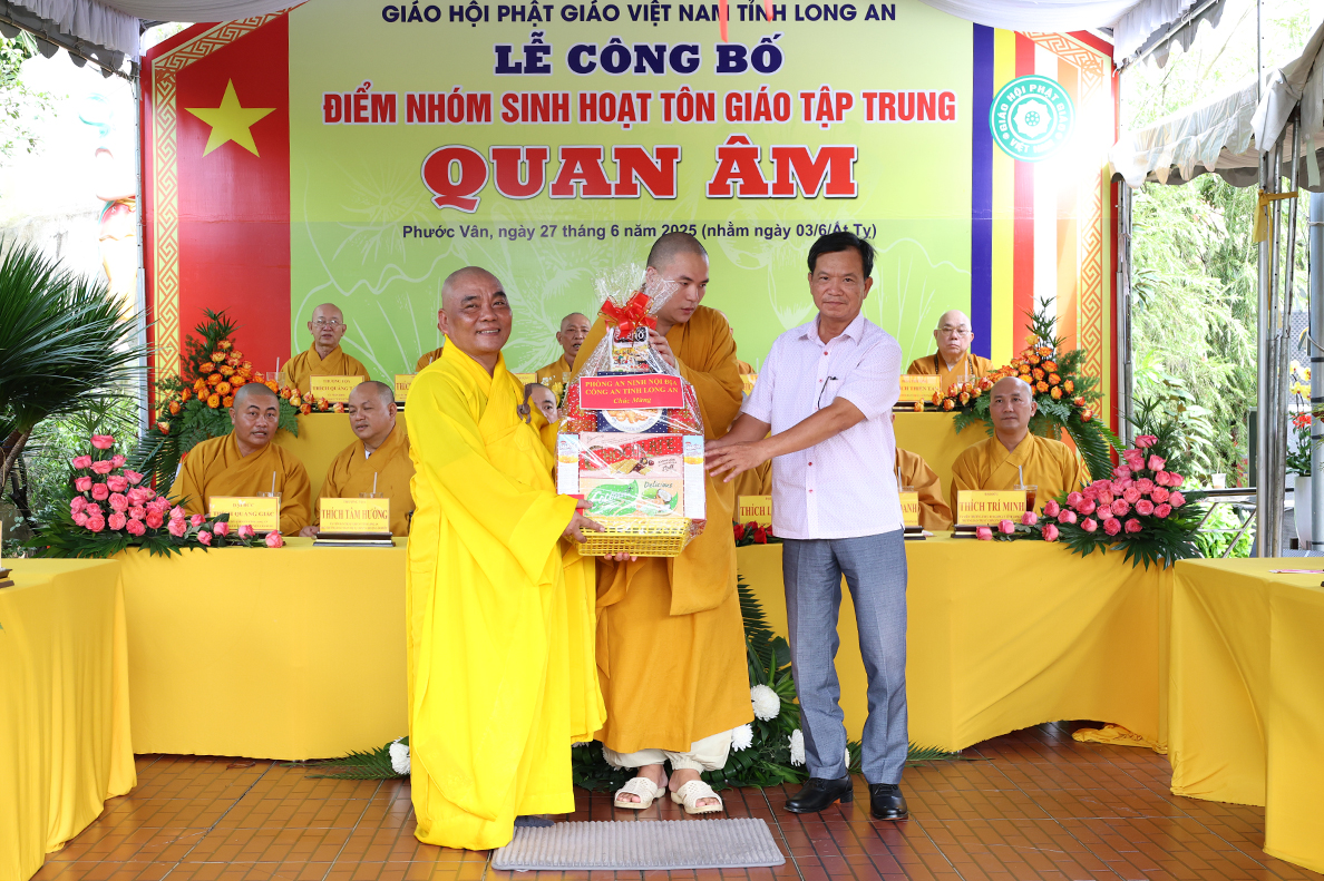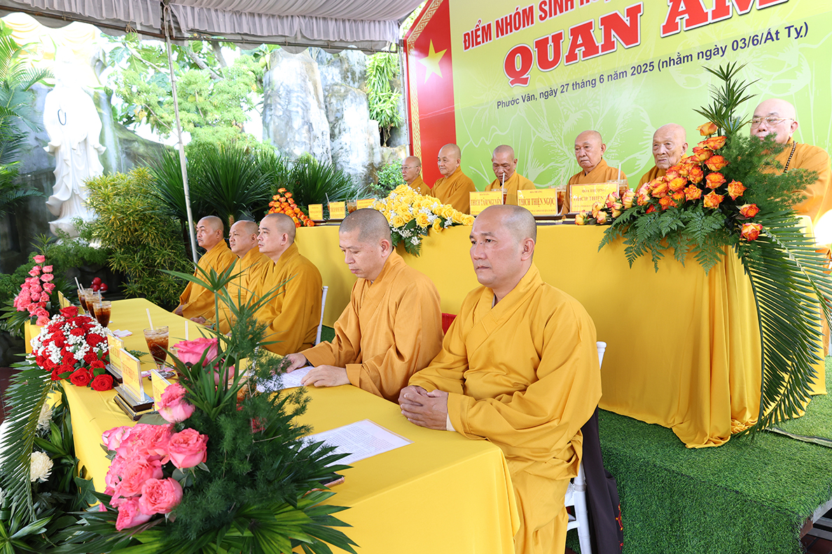 Tại buổi lễ, Đại đức Thích Lệ Duyên- Phó Ban Trị sự kiêm chánh thư ký BTS GHPGVN tỉnh công bố quyết định công nhận Điểm nhóm Sinh hoạt Tôn giáo Tập trung Quan Âm do Đại đức Thích Lệ Duyên thường trú chịu trách nhiệm quản lý sinh hoạt.