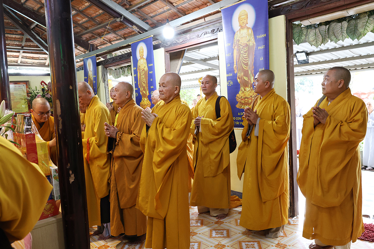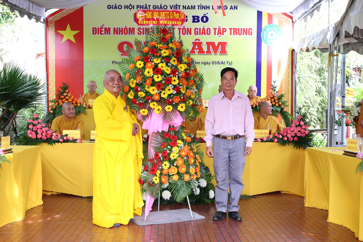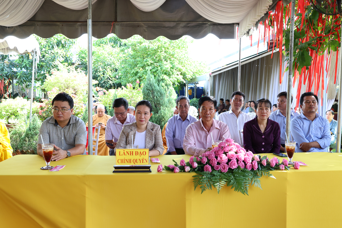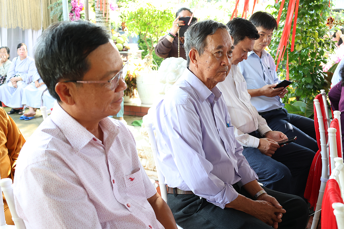 Buổi lễ được cung nghinh sự quang lâm chứng minh của Trưởng lão Hòa thượng Thích Thiện Huệ – Thành viên HĐCM, Chứng minh BTS GHPGVN tỉnh Long An; Hòa thượng Thích Minh Thiện – UV HĐTS – Phó Ban Hoằng Pháp TW GHPGVN – Trưởng BTS GHPGVN tỉnh Long An; Hòa thượng Thích Tâm Nguyên, Hòa thượng Thích Thiện Ngọc – Đồng Chứng Minh BTS GHPGVN huyện Cần Đước; Thượng tọa Thích Quảng Tâm – UV HĐTS – Phó Trưởng Ban thường trực BTS GHPGVN tỉnh Long An; Đại đức Thích Lệ Duyên – Phó Trưởng Ban, Chánh Thư Ký BTS GHPGVN tỉnh Long An; Đại đức Thích Thiện Danh – Phó Thư ký kiêm Chánh Văn phòng BTS GHPGVN tỉnh Long An; Đại đức Thích Trí Minh – UV Thường trực BTS GHPGVN tỉnh Long An; Trưởng BTS GHPGVN huyện Cần Đước; Thượng tọa Thích Tâm Hướng – UV BTS GHPGVN; Chu tôn đức trong Ban Trị sự Phật giáo huyện; Chư tôn đức Trụ trì các cơ sở tự viện trong địa bàn huyện và Phật tử đồng thân lâm tham dự.
