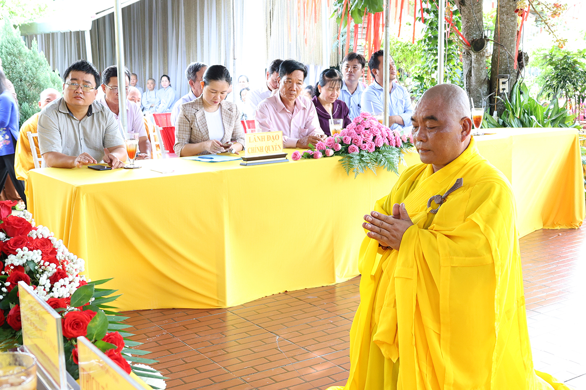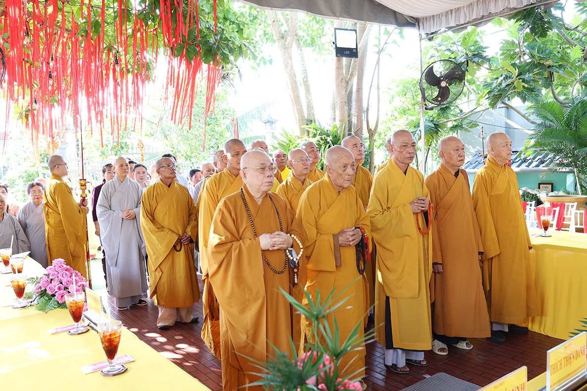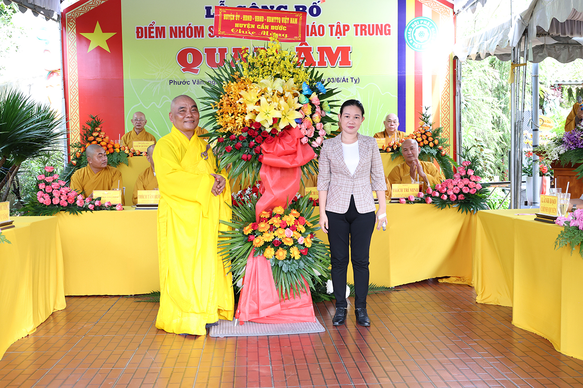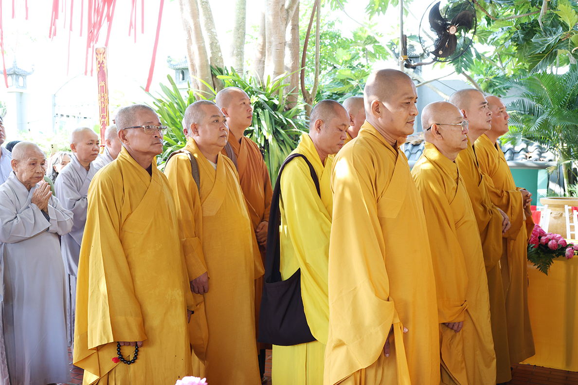 Buổi lễ được cung nghinh sự quang lâm chứng minh của Trưởng lão Hòa thượng Thích Thiện Huệ – Thành viên HĐCM, Chứng minh BTS GHPGVN tỉnh Long An; Hòa thượng Thích Minh Thiện – UV HĐTS – Phó Ban Hoằng Pháp TW GHPGVN – Trưởng BTS GHPGVN tỉnh Long An; Hòa thượng Thích Tâm Nguyên, Hòa thượng Thích Thiện Ngọc – Đồng Chứng Minh BTS GHPGVN huyện Cần Đước; Thượng tọa Thích Quảng Tâm – UV HĐTS – Phó Trưởng Ban thường trực BTS GHPGVN tỉnh Long An; Đại đức Thích Lệ Duyên – Phó Trưởng Ban, Chánh Thư Ký BTS GHPGVN tỉnh Long An; Đại đức Thích Thiện Danh – Phó Thư ký kiêm Chánh Văn phòng BTS GHPGVN tỉnh Long An; Đại đức Thích Trí Minh – UV Thường trực BTS GHPGVN tỉnh Long An; Trưởng BTS GHPGVN huyện Cần Đước; Thượng tọa Thích Tâm Hướng – UV BTS GHPGVN; Chu tôn đức trong Ban Trị sự Phật giáo huyện; Chư tôn đức Trụ trì các cơ sở tự viện trong địa bàn huyện và Phật tử đồng thân lâm tham dự.
