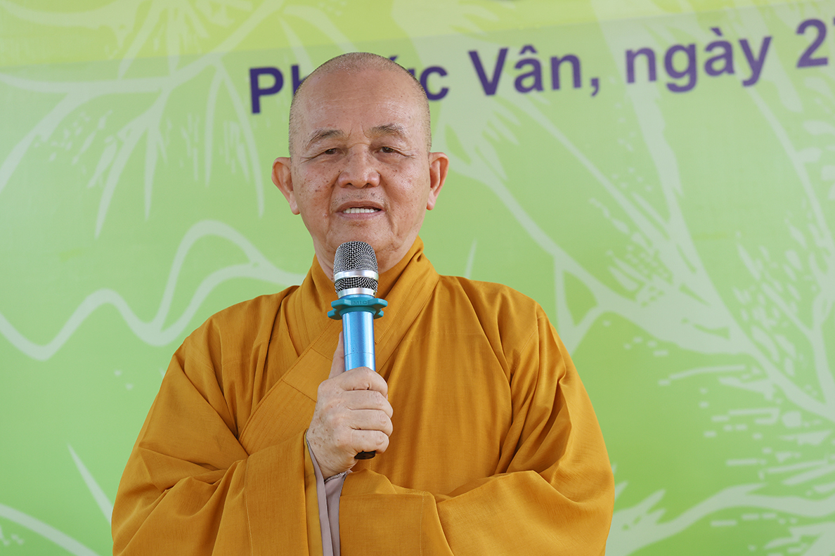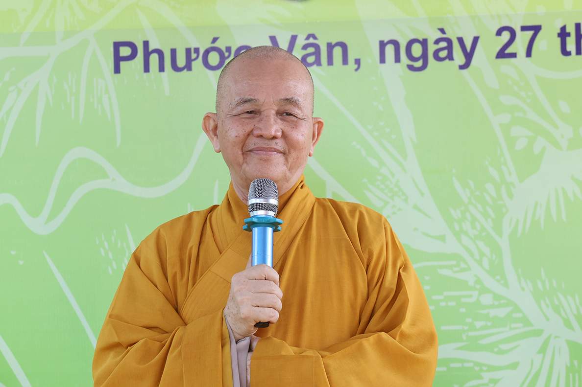 Buổi lễ được lắng nghe lời đạo từ cao quý của Hòa thượng Thích Minh Thiện – UV HĐTS – Phó Ban Hoằng pháp TW GHPGVN – Trưởng BTS GHPGVN tỉnh Long An. Trong lời đạo từ Hòa thượng Thích Minh Thiện đã dạy rõ những điểm quan trọng của Điểm nhóm Tập trung Tôn giáo, không khác gì với ngôi Tam bảo Tự viện của Phật giáo với các thời khóa hành trình theo đúng chủ trương của Phật giáo. Ngài đã khát quyết tổng thể quá trình hoạt động của Phật giáo tỉnh nhà trải suốt 42 năm từ lúc thành lập đến hôm nay. Trải qua bao thăng trầm về lịch sử và thời gian, nhưng tinh thần đạo pháp và dân tộc vẫn keo sơn bền chặt, định hướng tốt đẹp để những thành tựu về mọi mặt Giáo dục Phật giáo, Hoằng pháp lợi sinh, anh sinh xã hội, quản lý Tăng sự… hôm nay được kết quả tốt đẹp. Hòa thượng sách tấn chư tôn đức tại điểm nhóm nên cố gắng tu tập để dấn thân vào đời, đem tinh thần Từ bi và cứu khổ làm lợi ích cho mình và tha nhân, chung tay xây dựng sự phát triển Phật giáo khu vực ngày thêm vững mạnh. Đồng thời, Hòa thượng đã chúc nguyện cho ngôi Tam bảo nơi điểm nhóm được trang nghiêm, thanh tịnh, thành tựu như pháp.