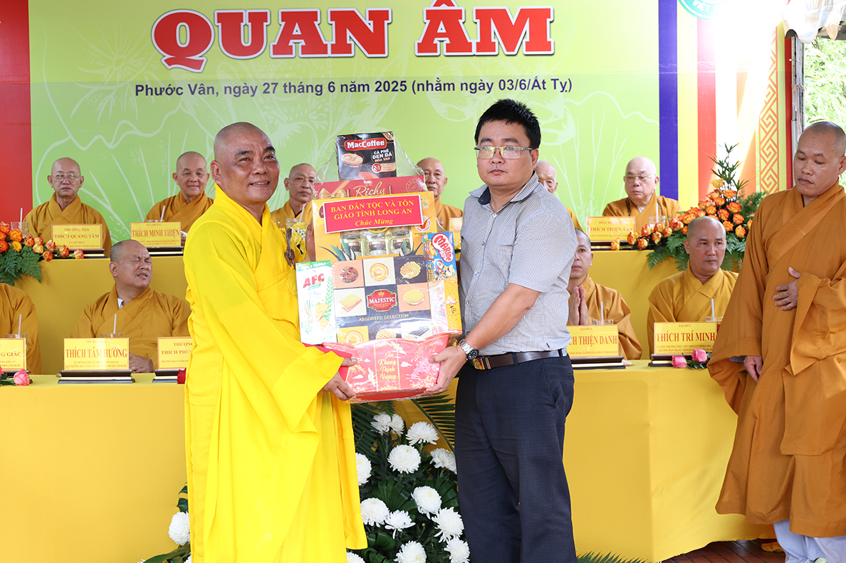 Buổi lễ đón nhận nhiều lãng hoa, khánh vàng và quà chúc mừng từ: Hòa thượng Thích Thiện Huệ, Hòa thượng Thích Minh Thiện, BTS GHPGVN tỉnh Long An, Ban Dân vận – Ban Tôn giáo tỉnh Long An; cục An ninh Nội địa Công an tỉnh Long An; BTS GHPGVN huyện Cần Đước; Huyện ủy – HĐND – UBND – UB MTTQ huyện Cần Đước; UBND xã Phước Vân,… và nhiều phần quà khác.