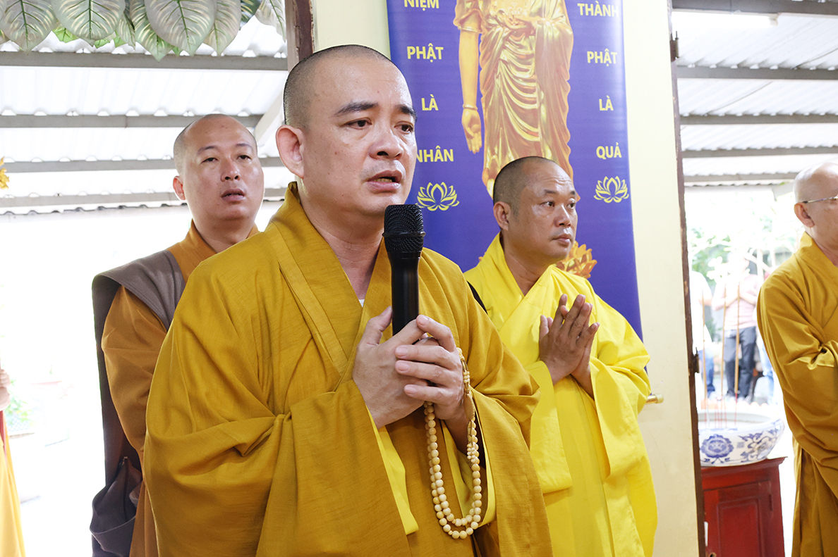 Kết thúc buổi lễ, Đại đức Thích Trí Minh – Trưởng BTS GHPGVN huyện, thay lời Ban Tổ chức dâng lời cảm tạ đến Chư Tôn đức quang lâm và tham dự buổi lễ, cung thỉnh Chư tôn đức thượng bản, thiết lễ An vị Phật sái tịnh đàn tràng hoàn mãn buổi lễ.