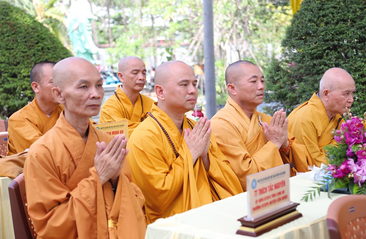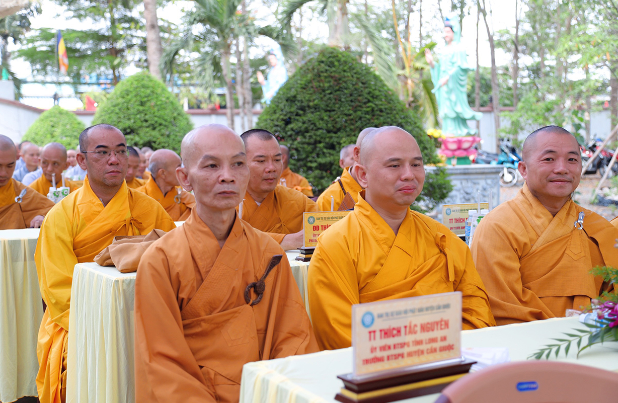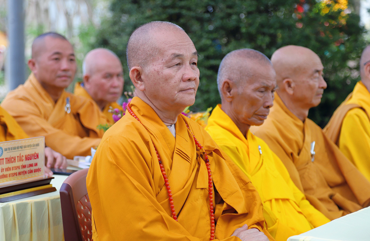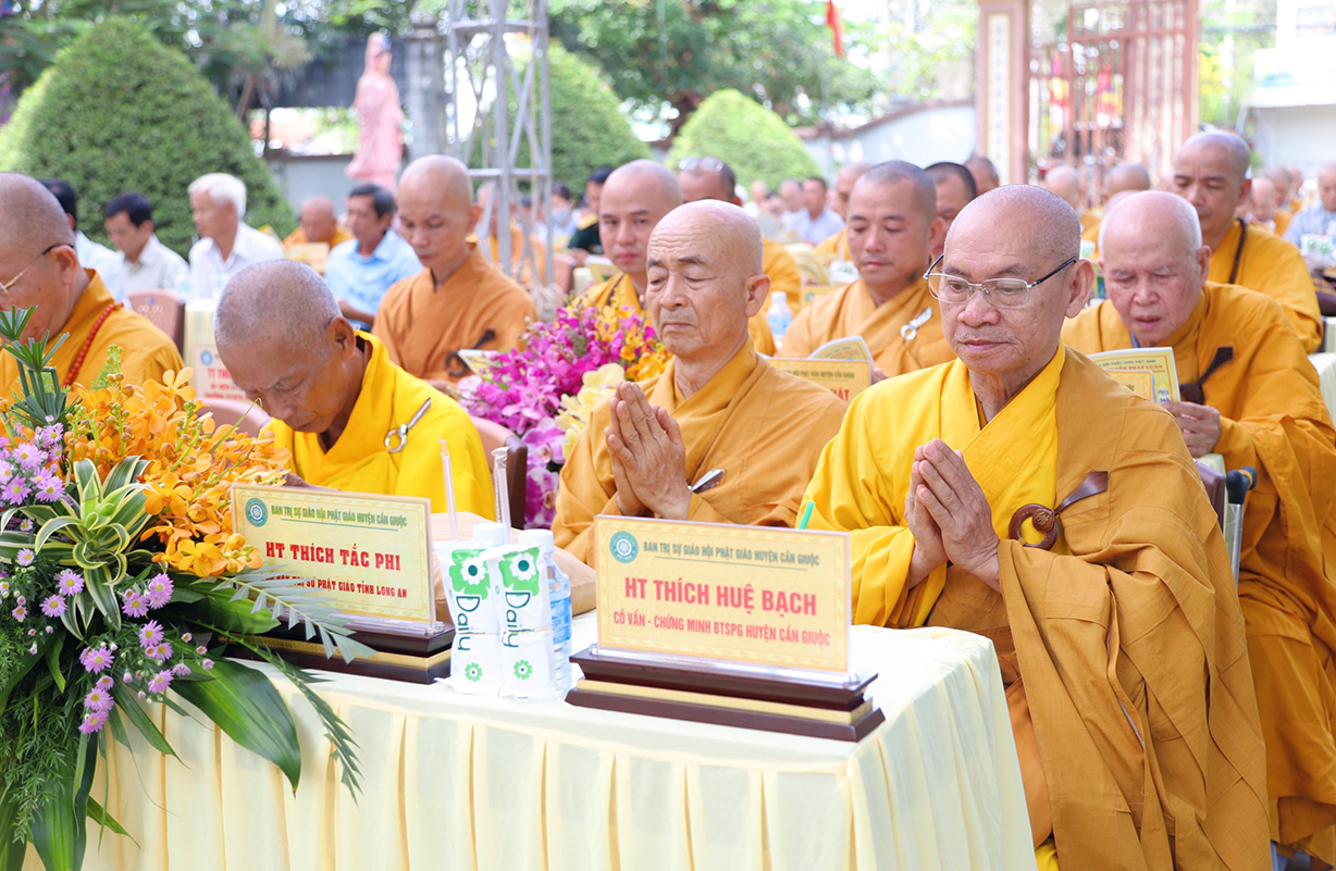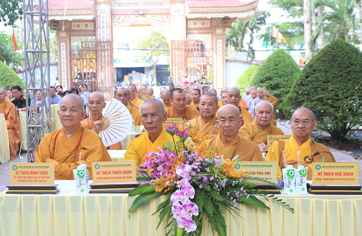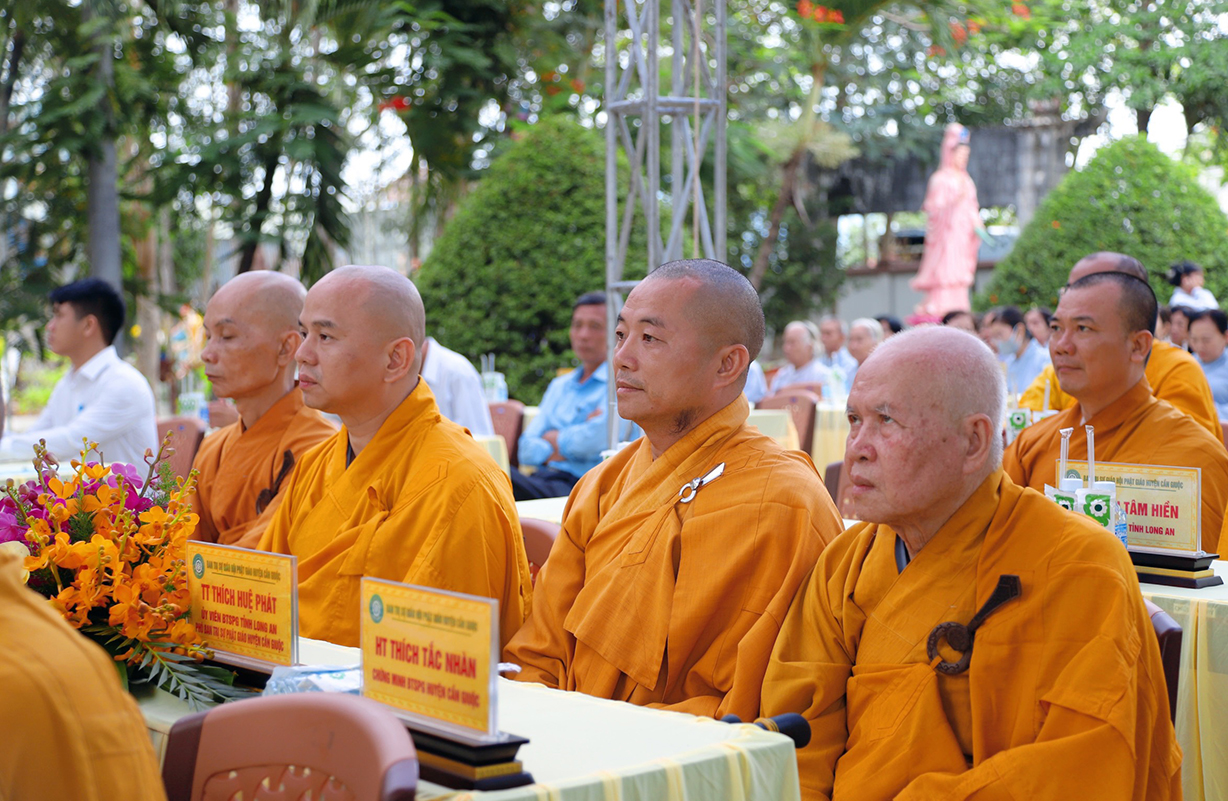 Quang lâm chứng minh và tham dự buổi lễ có: HT. Thích Minh Thiện – UV HĐTS, Phó ban Hoằng pháp TW, Trưởng BTS GHPGVN tỉnh Long An; HT. Thích Tắc Phi- Phó ban Trị sự GHPGVN tỉnh Long An; HT. Thích Huệ Bạch, HT. Thích Thiện Xuân – Đồng chứng minh BTS. GHPGVN huyện Cần Giuộc; ĐĐ. Thích Lệ Ngôn – Phó BTS kiêm Trưởng ban Hoằng pháp GHPGVN tỉnh Long An; TT. Thích Tắc Nguyên – Ủy viên Ban Trị sự tỉnh, Trưởng BTS GHPGVN huyện Cần Giuộc; Chư tôn đức Ban Thường trực BTS GHPGVN huyện Cần Giuộc, Chư tôn đức Tăng Ni các tự viện trong huyện đồng về tham dự.