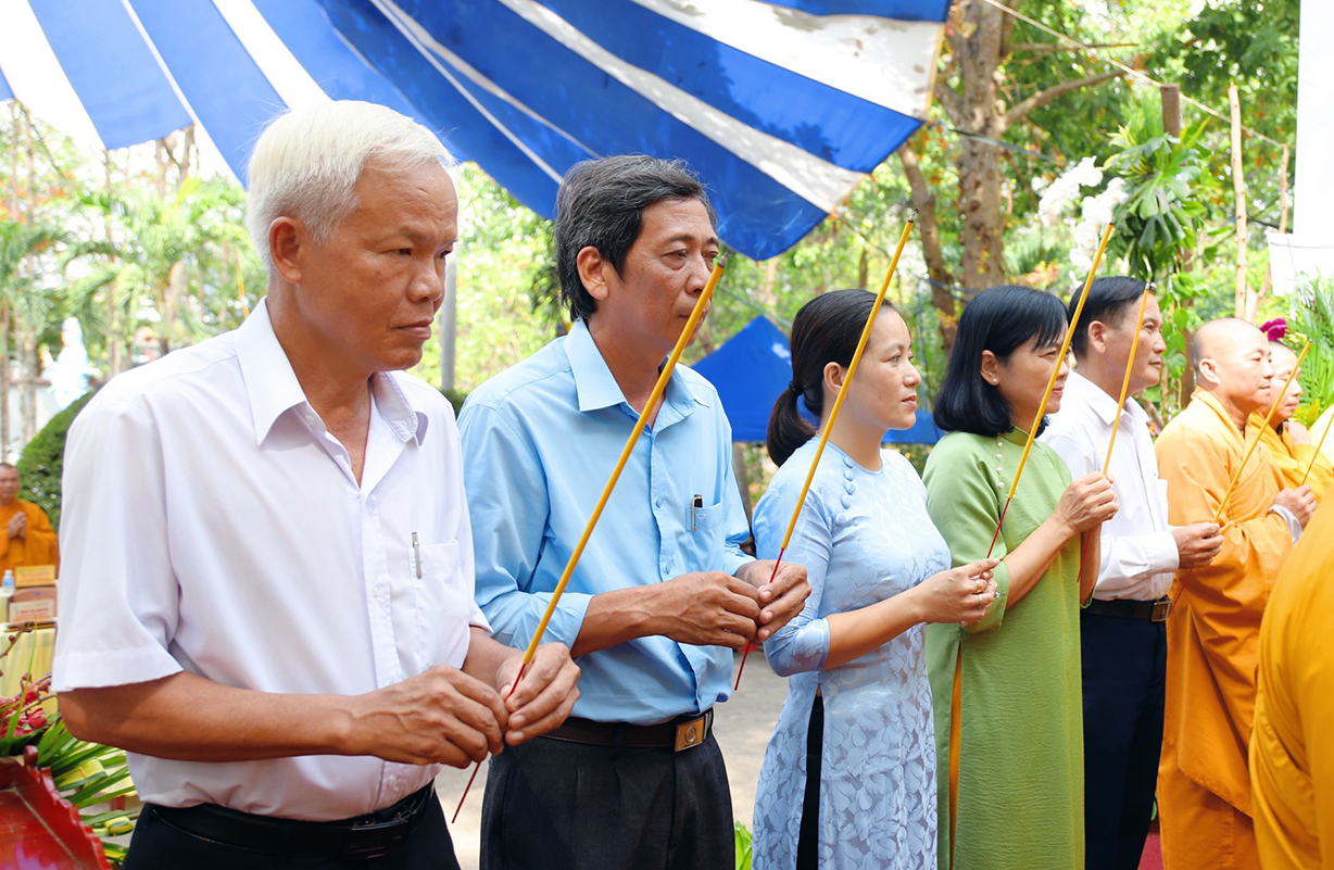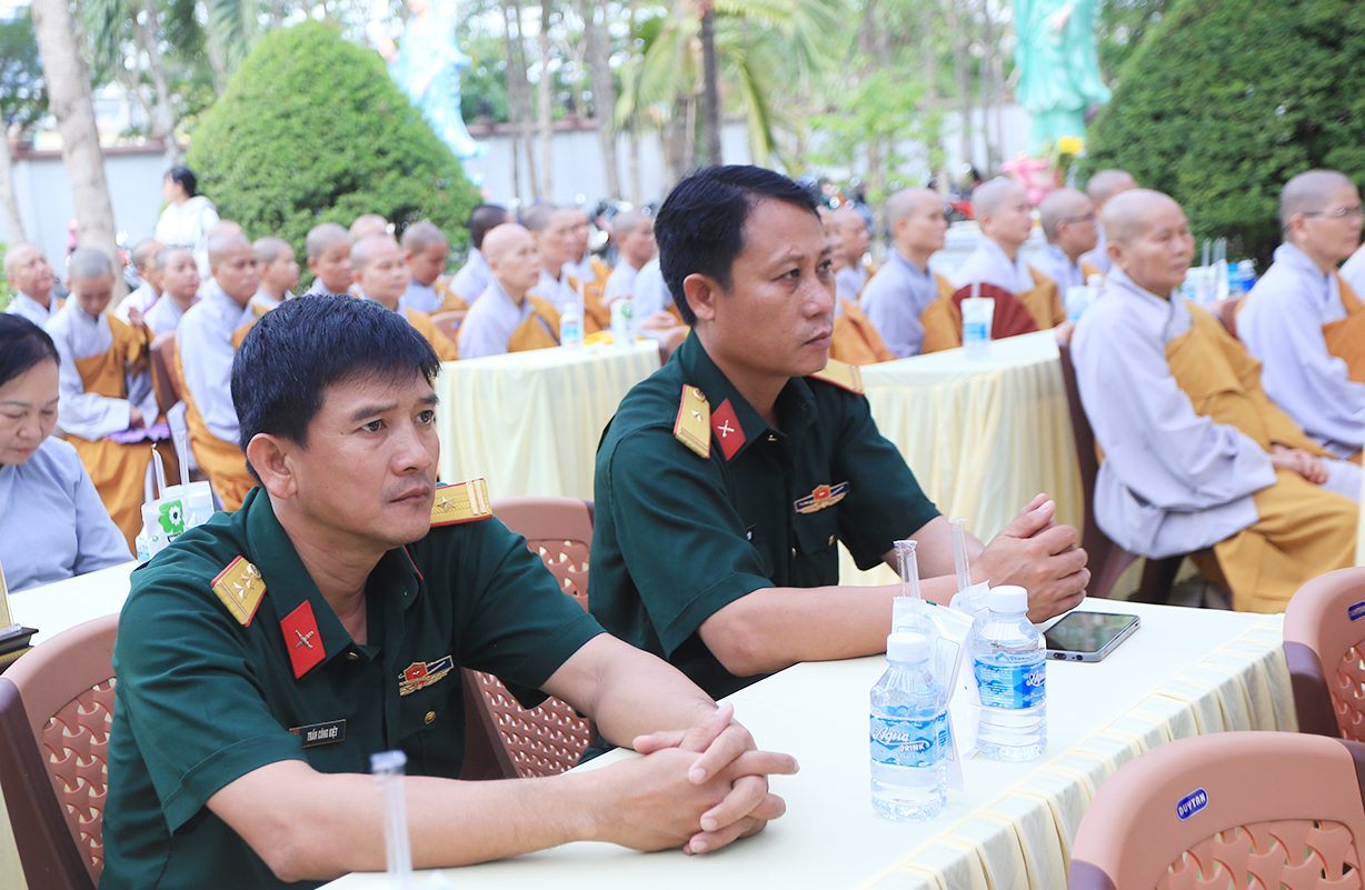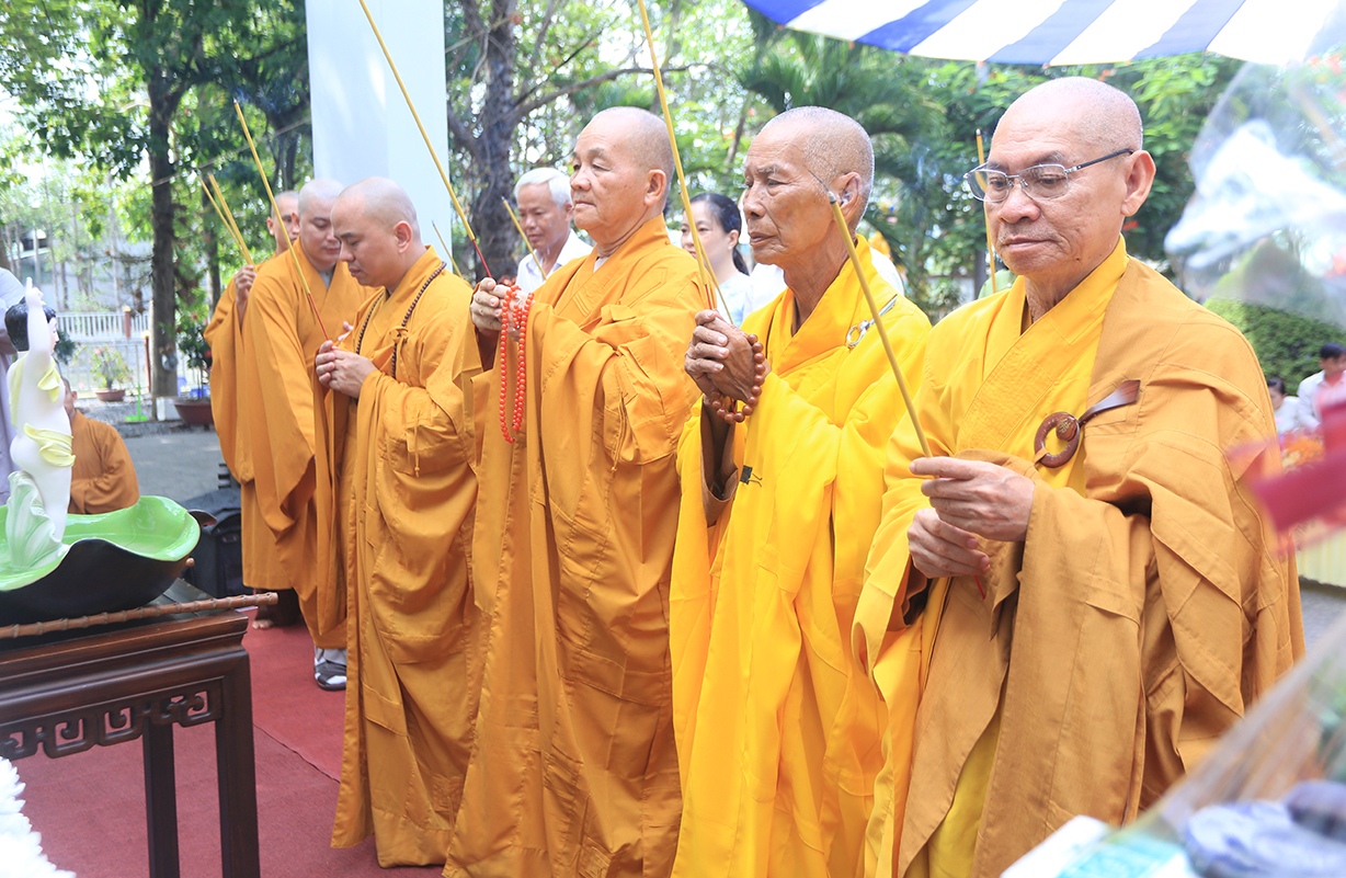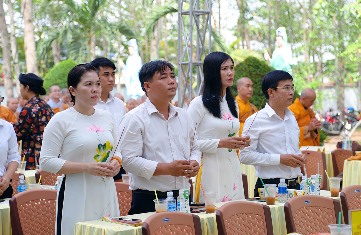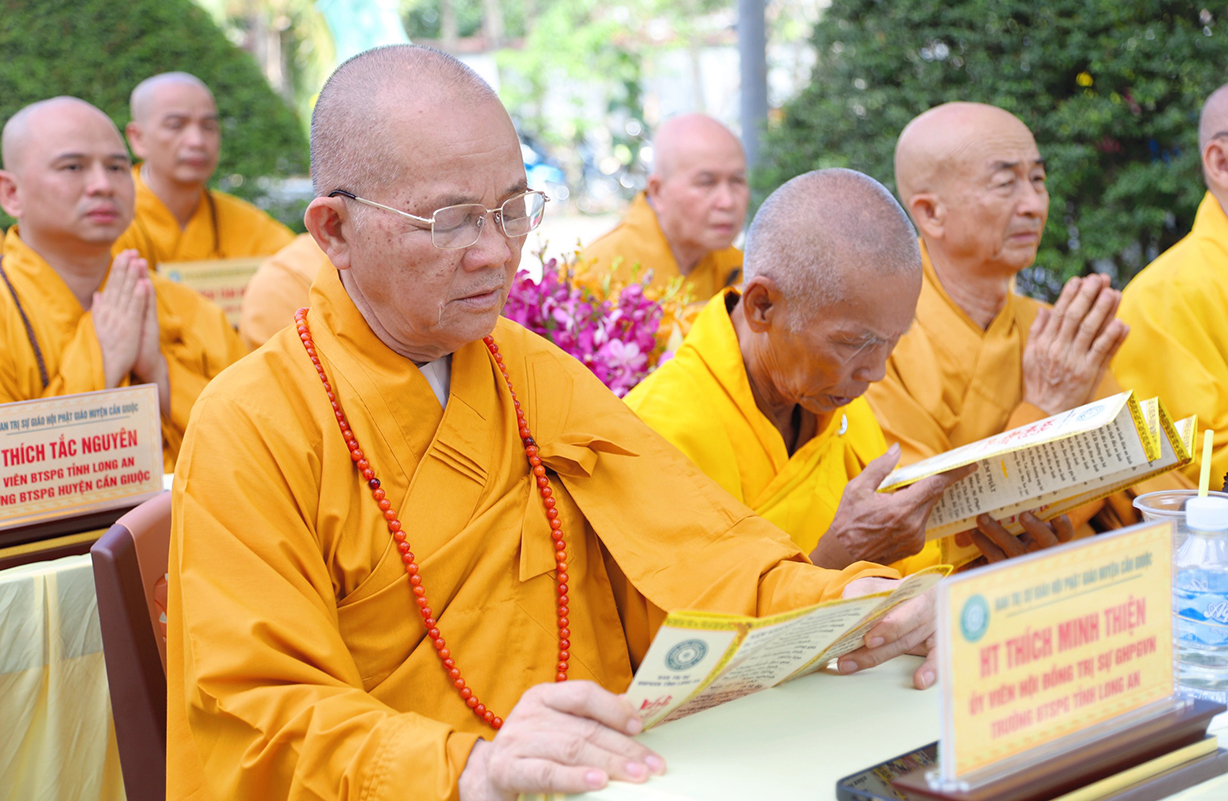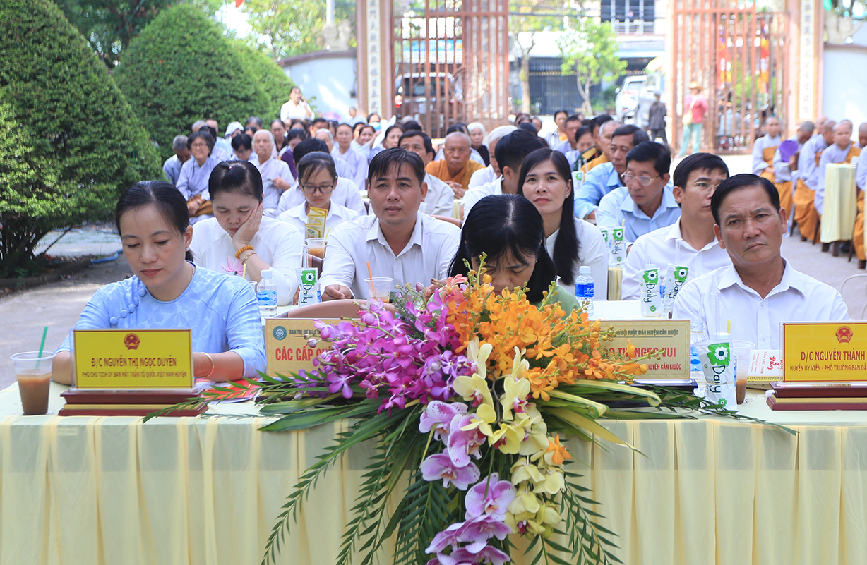 Quang lâm chứng minh và tham dự buổi lễ có: HT. Thích Minh Thiện – UV HĐTS, Phó ban Hoằng pháp TW, Trưởng BTS GHPGVN tỉnh Long An; HT. Thích Tắc Phi- Phó ban Trị sự GHPGVN tỉnh Long An; HT. Thích Huệ Bạch, HT. Thích Thiện Xuân – Đồng chứng minh BTS. GHPGVN huyện Cần Giuộc; ĐĐ. Thích Lệ Ngôn – Phó BTS kiêm Trưởng ban Hoằng pháp GHPGVN tỉnh Long An; TT. Thích Tắc Nguyên – Ủy viên Ban Trị sự tỉnh, Trưởng BTS GHPGVN huyện Cần Giuộc; Chư tôn đức Ban Thường trực BTS GHPGVN huyện Cần Giuộc, Chư tôn đức Tăng Ni các tự viện trong huyện đồng về tham dự.