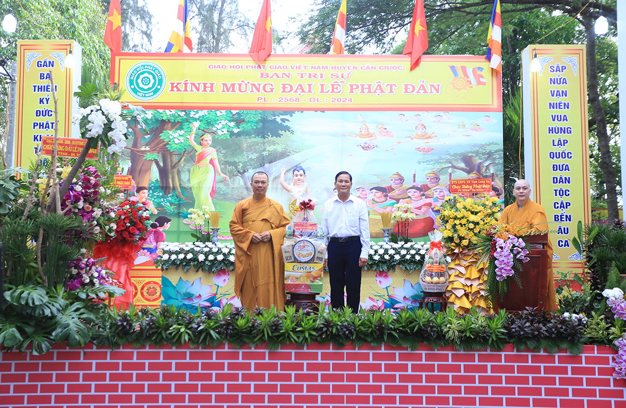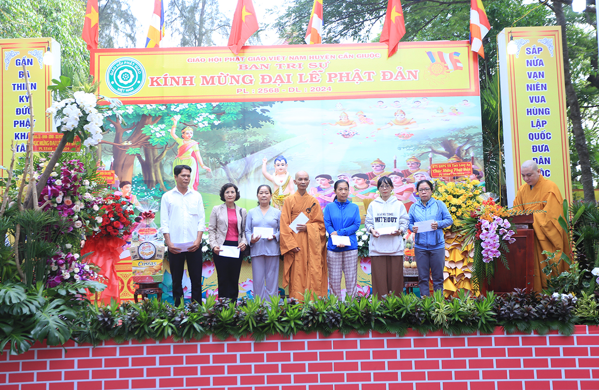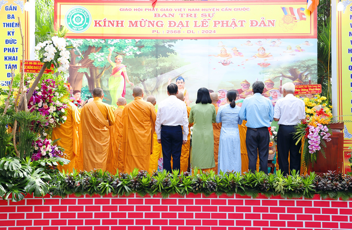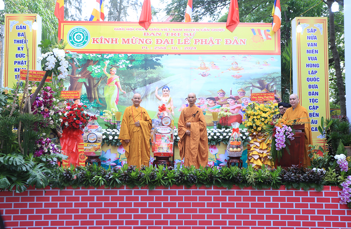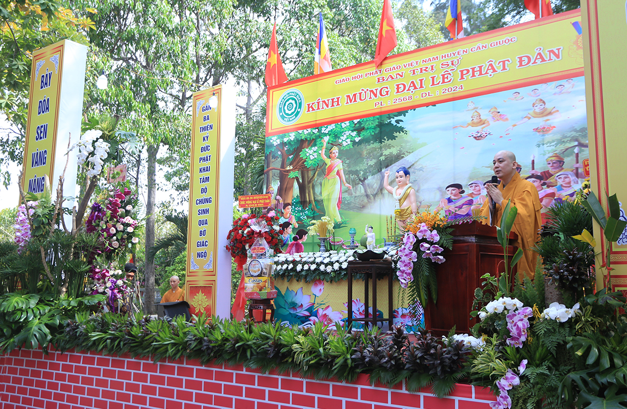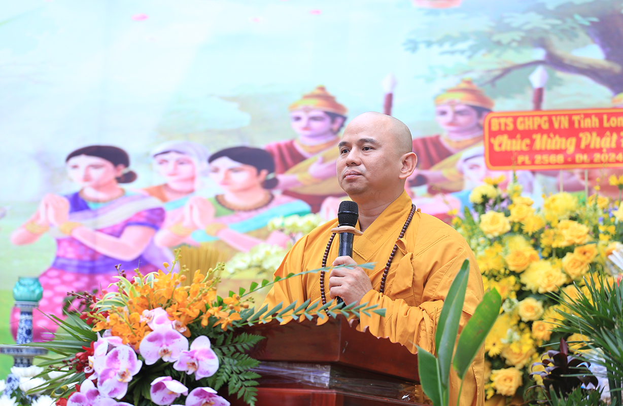 Tại buổi lễ, HT. Thích Minh Thiện – UV HĐTS, Phó ban Hoằng pháp TW, Trưởng BTS GHPGVN tỉnh Long An tuyên đọc Thông điệp Phật đản của Đại lão Hòa thượng Thích Trí Quảng – Đệ tứ Pháp chủ HĐCM TƯ GHPGVN. Theo thông điệp, Hòa thượng Pháp chủ kêu gọi chư Tăng Ni và quý Phật tử nhất tâm cầu nguyện cho chiến tranh chấm dứt, hận thù tiêu tan. Mỗi người càng tinh tấn tu tập, thể nhập Từ bi tam muội, lan tỏa tình yêu thương đến chúng sanh vạn loại, thắp sáng thế gian này bằng ánh sáng từ bi và trí tuệ. Với tất cả ý nghĩa thiêng liêng của ngày kỷ niệm Đức Phật đản sanh, tôi mong muốn tất cả người con Phật trên khắp thế giới đoàn kết, cùng cả nhân loại chung sống vị tha, kiến tạo thế giới hòa bình, an lạc.