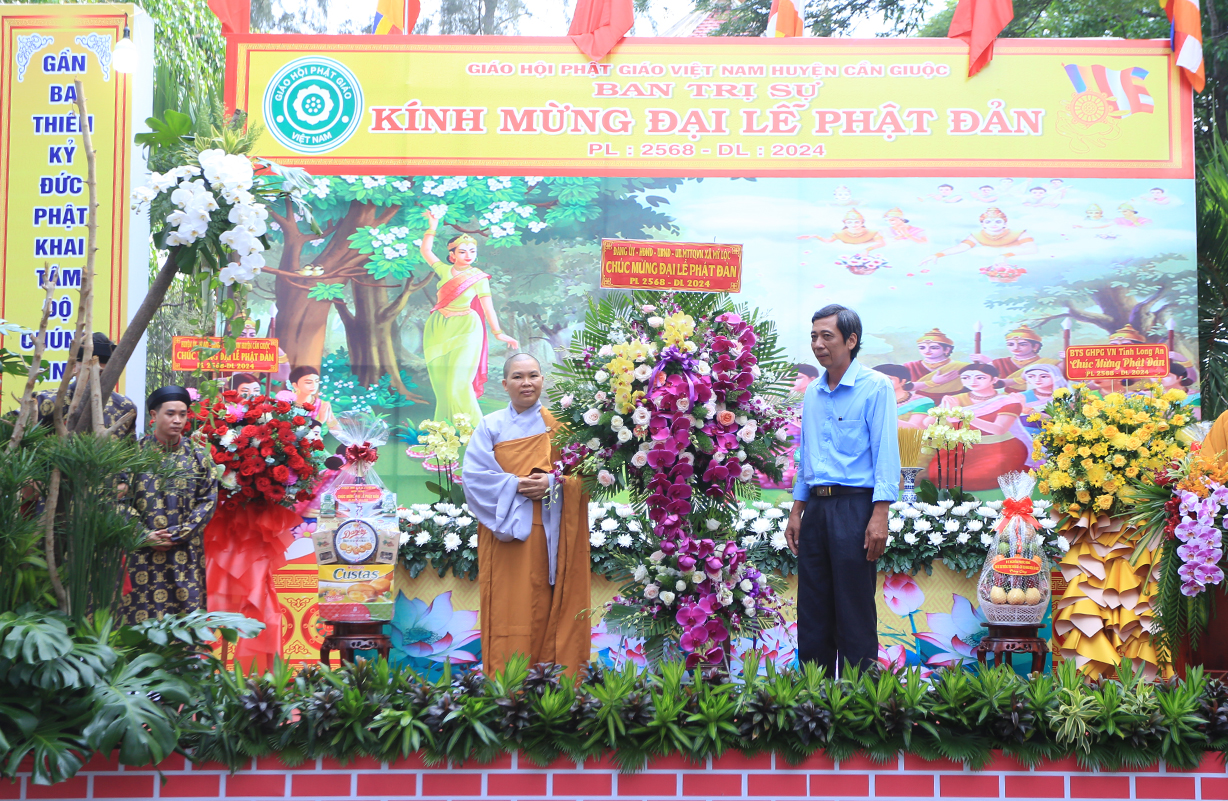 Buổi lễ đón nhận nhiều lẵng hoa và quà chúc mừng từ BTS GHPGVN tỉnh Long An; Ban Huyện ủy – HĐND – UBND – UBMTTVN huyện Cần Giuộc; Đảng ủy – HĐND – UBND – UBMTTVN xã Mỹ Lộc và các tổ chức, cá nhân chúc mừng.