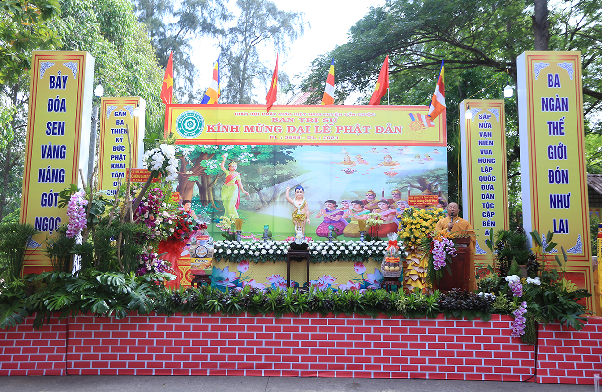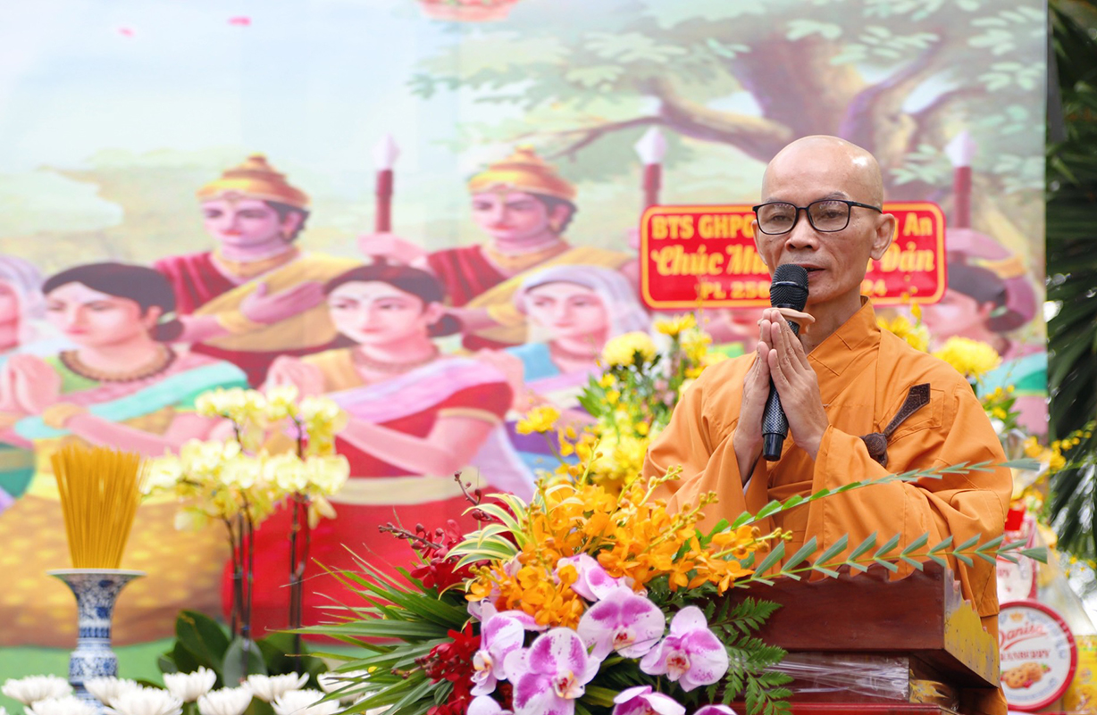 TT. Thích Tắc Nguyên – Trưởng BTS GHPGVN huyện tuyên đọc Diễn văn Phật đản PL.2568 – DL.2024 của Trưởng lão Hoà thượng Chủ tịch Hội đồng Trị sự GHPGVN. Hòa thượng Chủ tịch HĐTS nhắc lại truyền thống hào hùng của Dân tộc Việt Nam và Phật giáo Việt Nam. Trong diễn văn, Hòa thượng kêu gọi Tăng Ni phải đề cao trách nhiệm, giữ vững kỷ cương, và làm tròn bổn phận của mình góp phần xiển dương chánh pháp, bảo vệ niềm tin, tỏa sáng đạo màu đến khắp nhân gian. Thiện hữu nam nữ Phật tử làm người công dân tốt. Gắng sức tu tập, luôn tinh tấn trau dồi đức hạnh.
