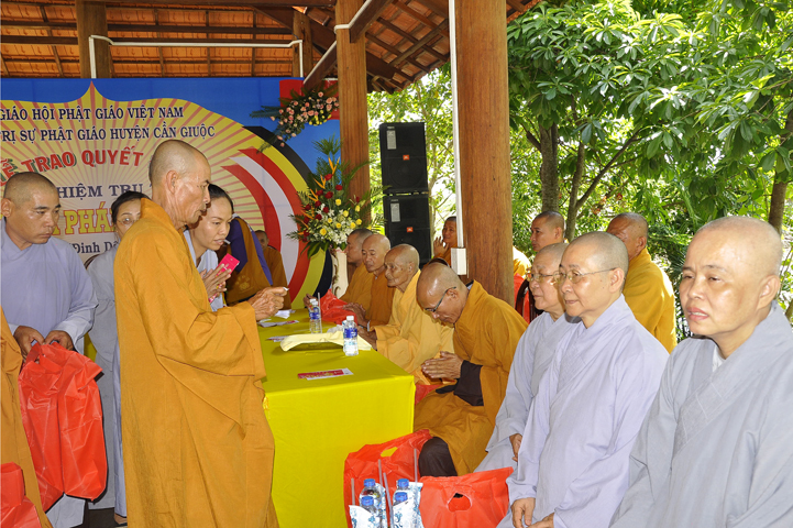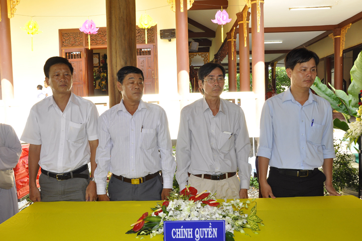 Quang lâm chứng minh tham dự Có HT. Thích Huệ Bạch- Trưởng Ban trị sự GHPGVN huyện Cần Giuộc; HT. Thích Tắc Nhàn- Phó Ban trị sự GHPGVN huyện Cần Giuộc; TT. Thích Thông Hạnh- Phó ban trị sự GHPGVN tỉnh Đồng Nai; ĐĐ. Thích Lệ Trí- Ủy viên HĐTSTƯ, Cha1nh thư ký Ban trị sự GHPGVN tỉnh Long An; ĐĐ. Thích Thiện Danh- Phó thư kiêm chánh văn phòng Ban trị sự GHPGVN tỉnh Long An; ĐĐ. Thích Huệ Phát- Phó thường trực BTS GHPGVN huyện Cần Giuộc cùng Chư tôn đức Tăng Ni trong huyện và hơn 100 Phật tử về tham dự.