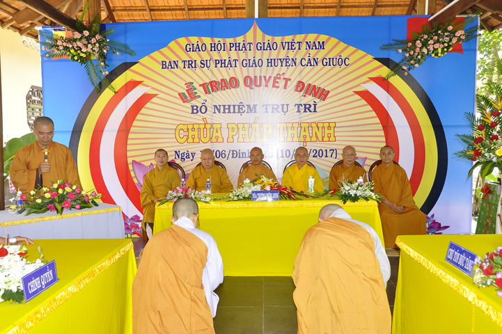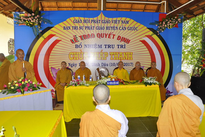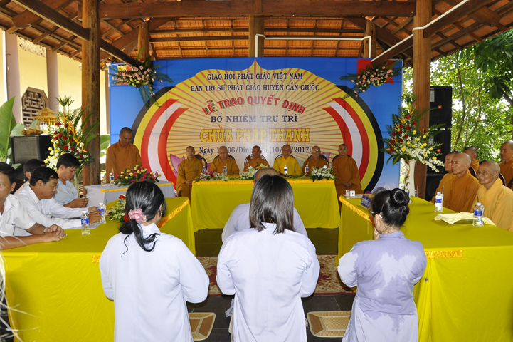 Sáng ngày 10 /08/ 2017(19/06 nhuận/ Đinh Dậu) đã diễn ra lễ Công bố quyết định bổ nhiệm trụ trì chùa Pháp Thạnh, xã Long Hậu, huyện cần Giuộc, tỉnh Long An cho Sư cô Thích Nữ Định Châu.