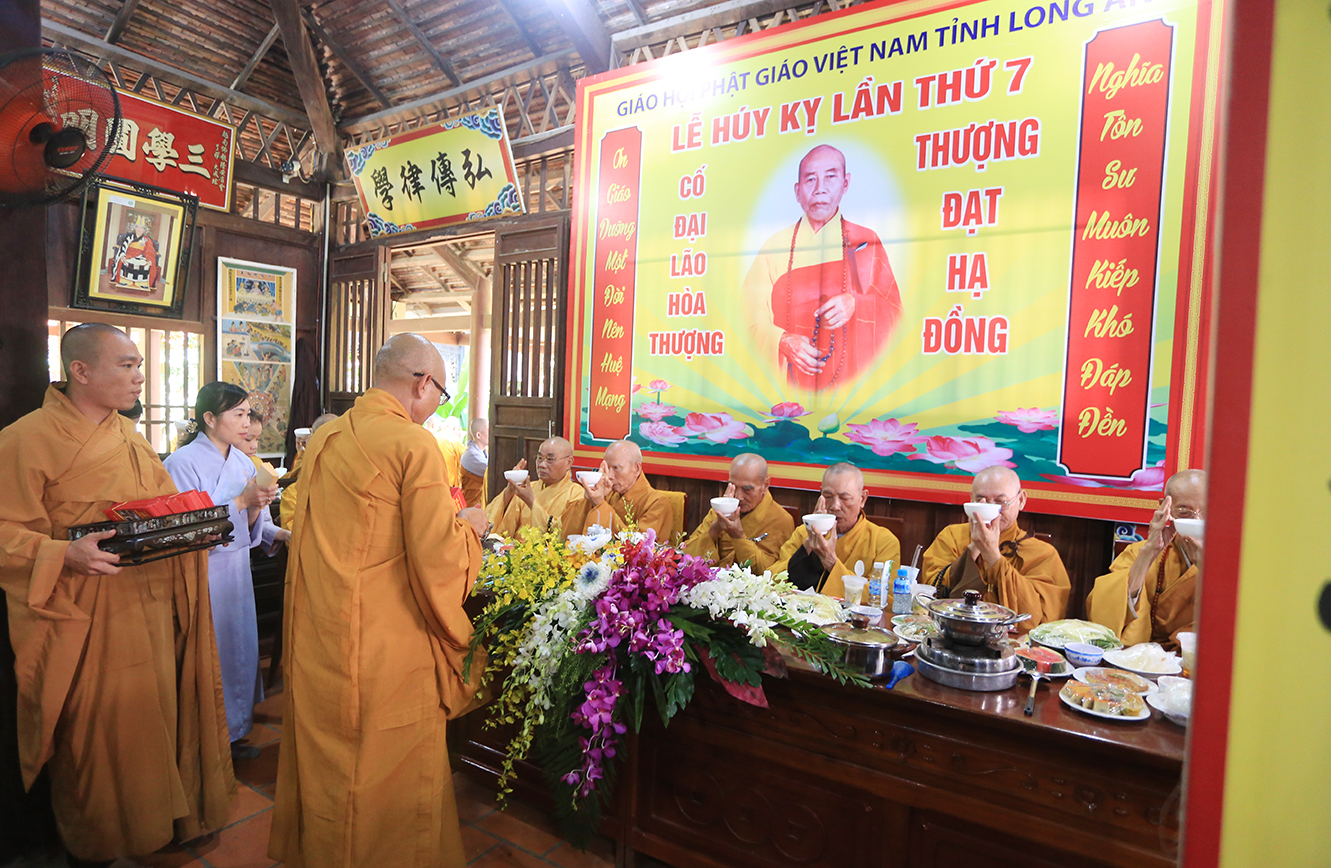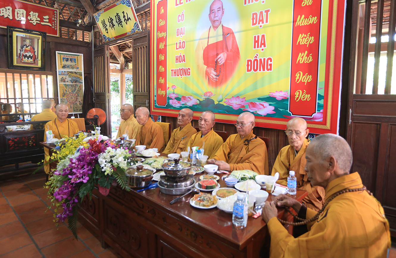 Sau các phần nghi lễ do TT Thích An Tịnh, Phó Ban nghi lễ GHPGVN tỉnh Long An, trụ trì chùa Pháp Tịnh đương vi sám chủ cùng chư Tôn đức Ban Lễ sư kết thúc, Môn nhân pháp quyến tại Tổ đình nhất tâm cung thỉnh chư Tôn đức Hòa thượng Giáo phẩm thân lâm Tổ đường dâng hương, tưởng niệm cố Trưởng lão Hòa thượng thượng Đạt hạ Đồng, và chứng dự trai đường.