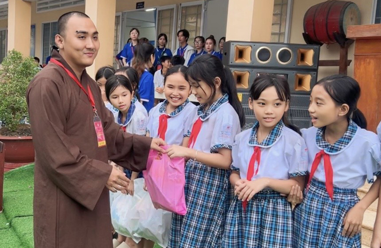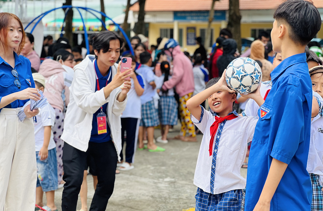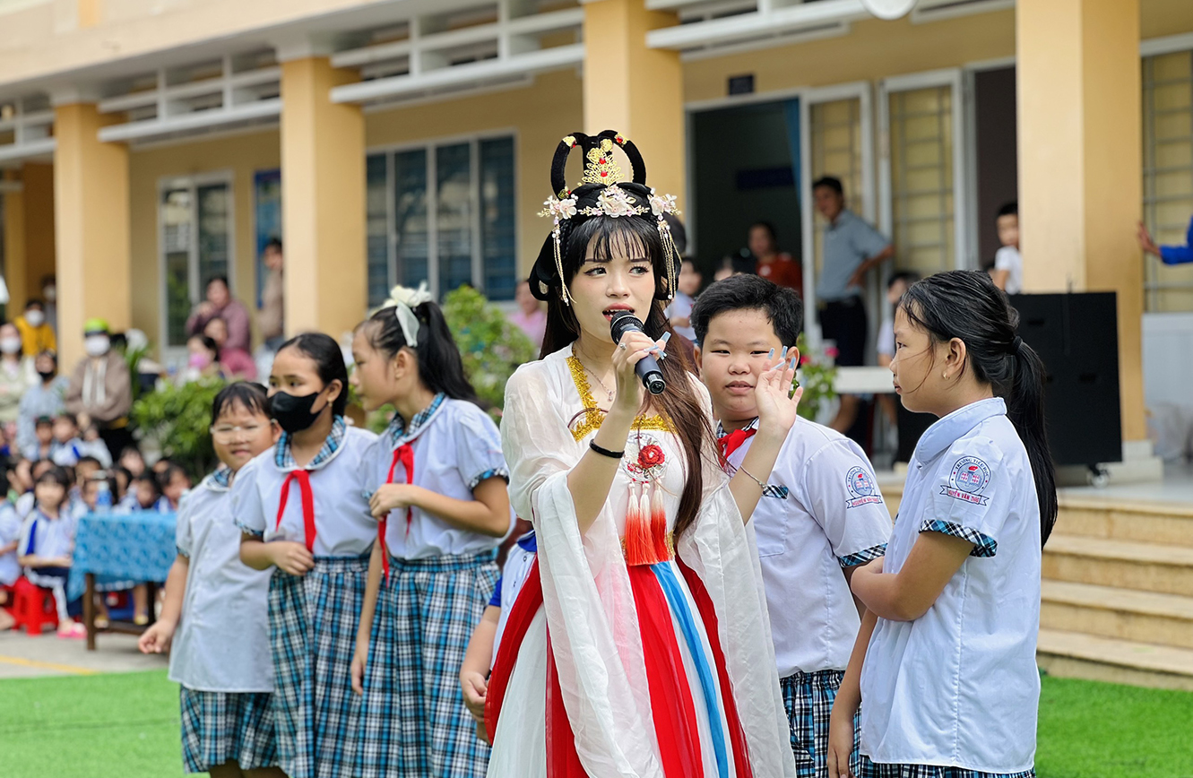 Trong không khí hân hoan, tràn đầy của chương trình trong khuôn viên Trường tiểu học Nguyễn Văn Thăng rực rỡ với đèn lồng và hàng trăm phần quà ý nghĩa được chuẩn bị cho các em thiếu nhi nhân dịp tết Trung thu.