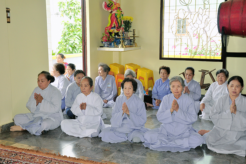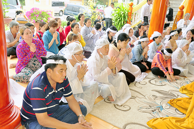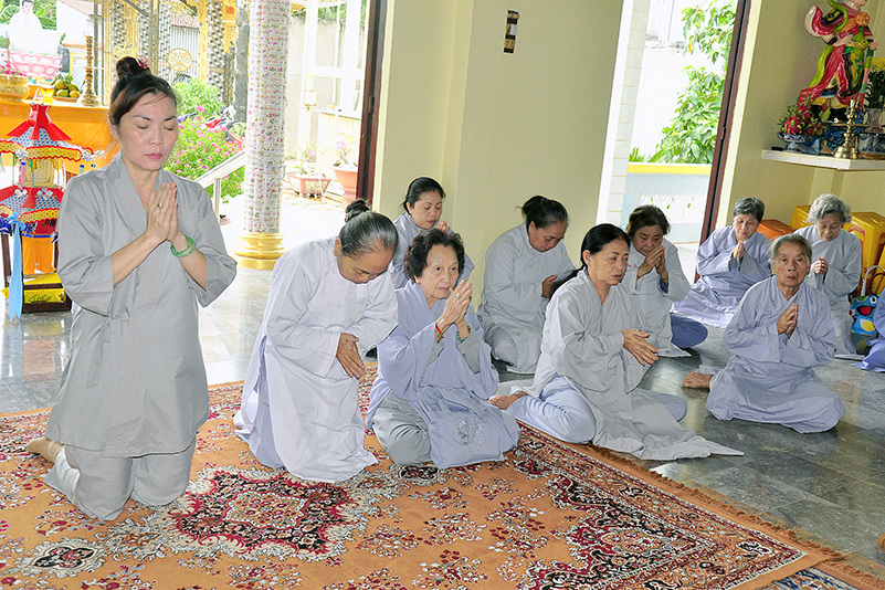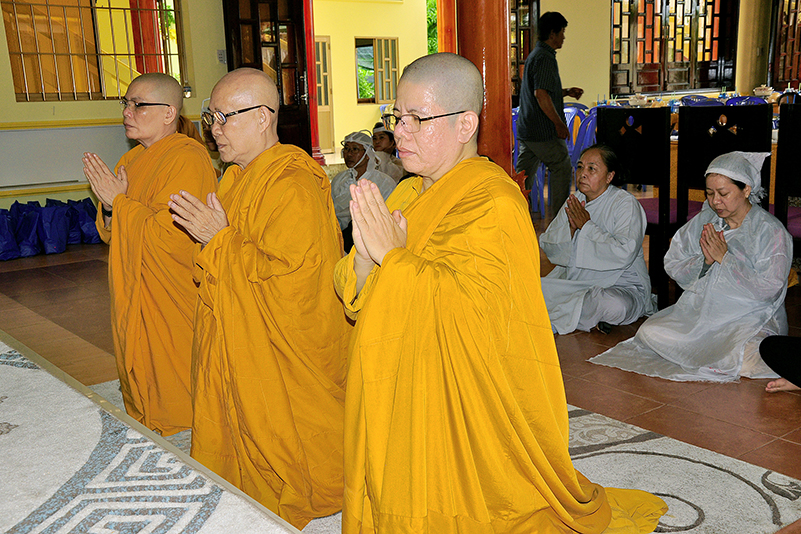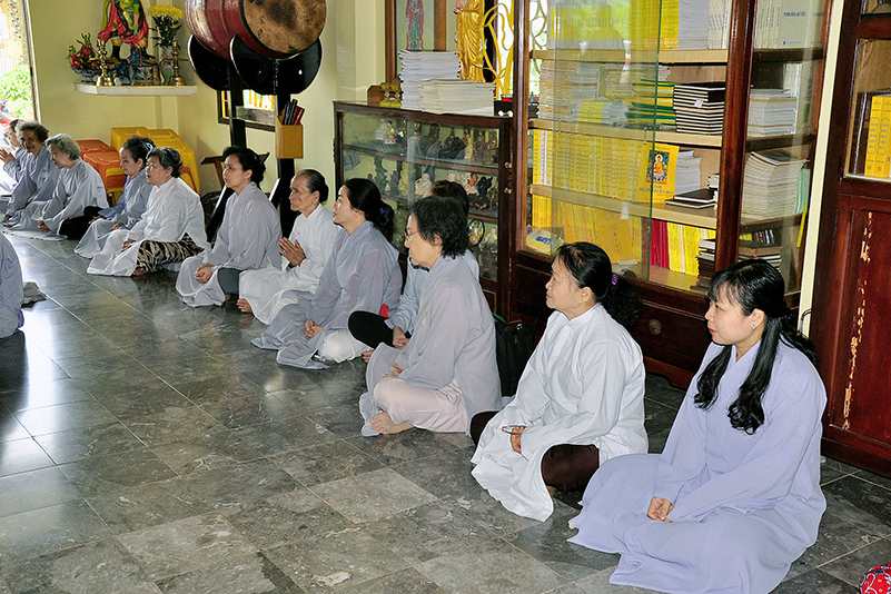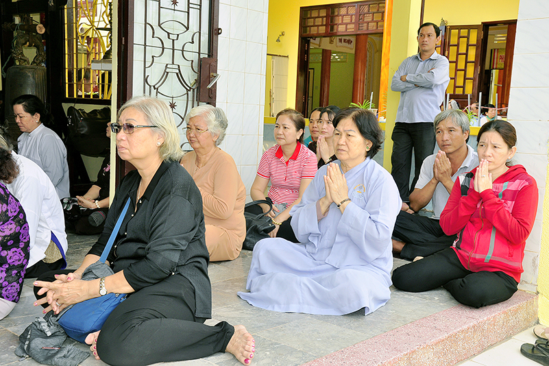 Từ sáng sớm, Chư Phật tử từ các nơi đã tập trung về chùa tham dự các thời khóa tụng kinh cầu nguyện.