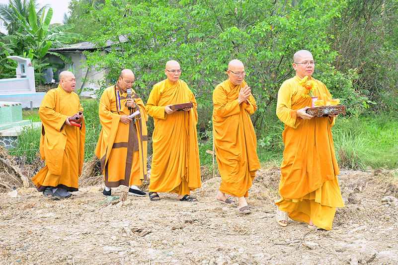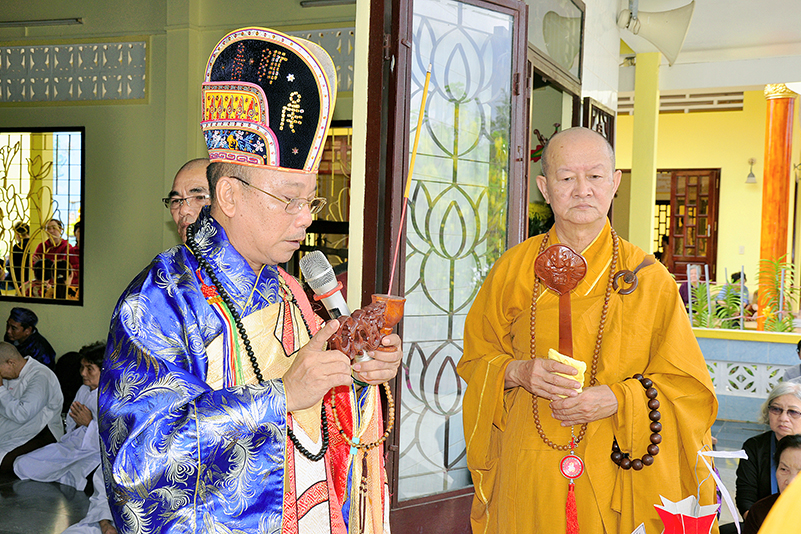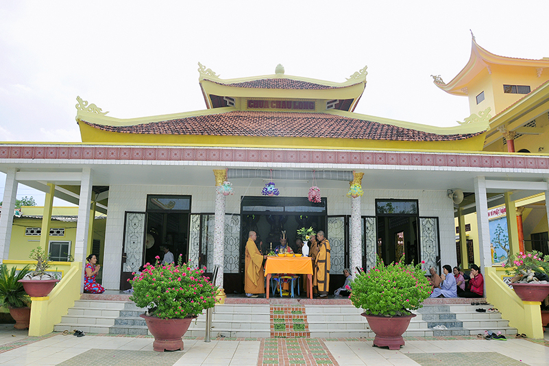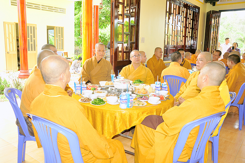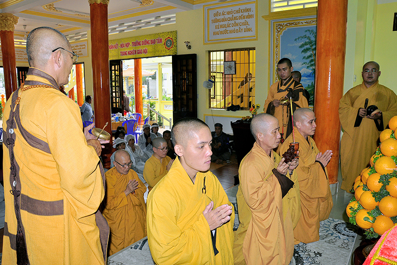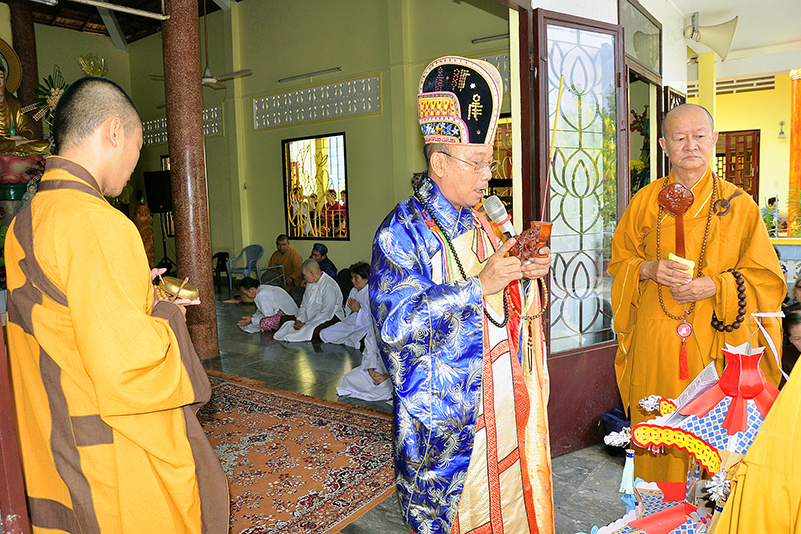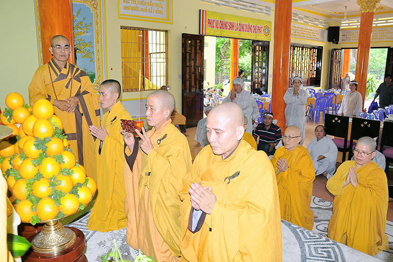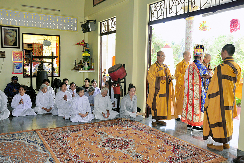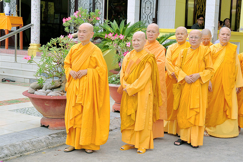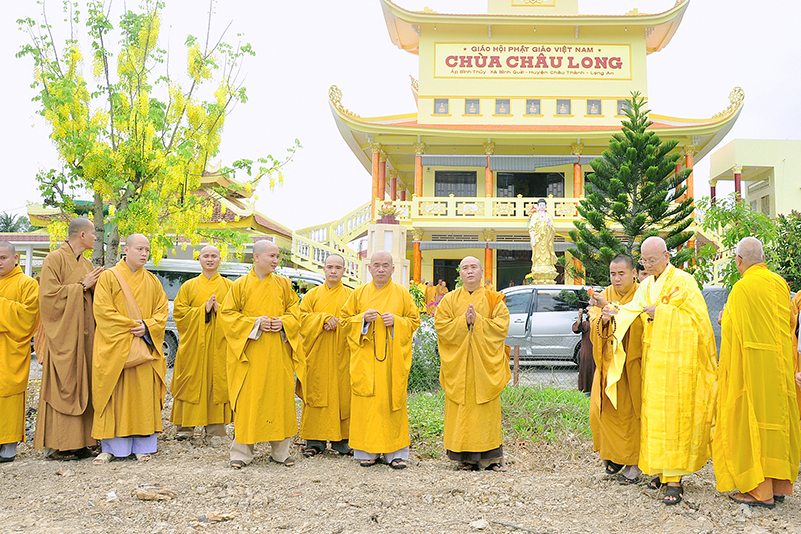 Đúng 8g 00, Môn đồ pháp quyến cung đón Chư tôn đức giáo phẩm thường trực Ban Trị sự Phật giáo tỉnh Long An; Chư Tôn đức Tăng Ni Thường trực Ban Trị sự GHPGVN huyện Châu Thành; Chư Tôn đức Thiền Đức trụ trì các cơ sở tự viện huyện Châu Thành trong và ngoài tỉnh Long An đồng quang lâm tham dự.