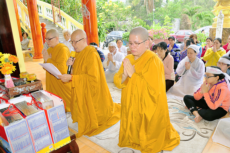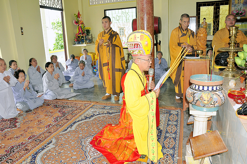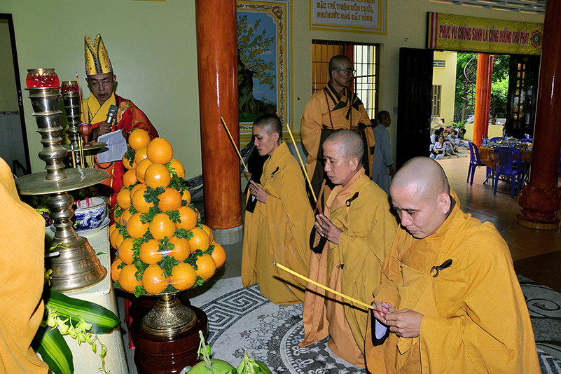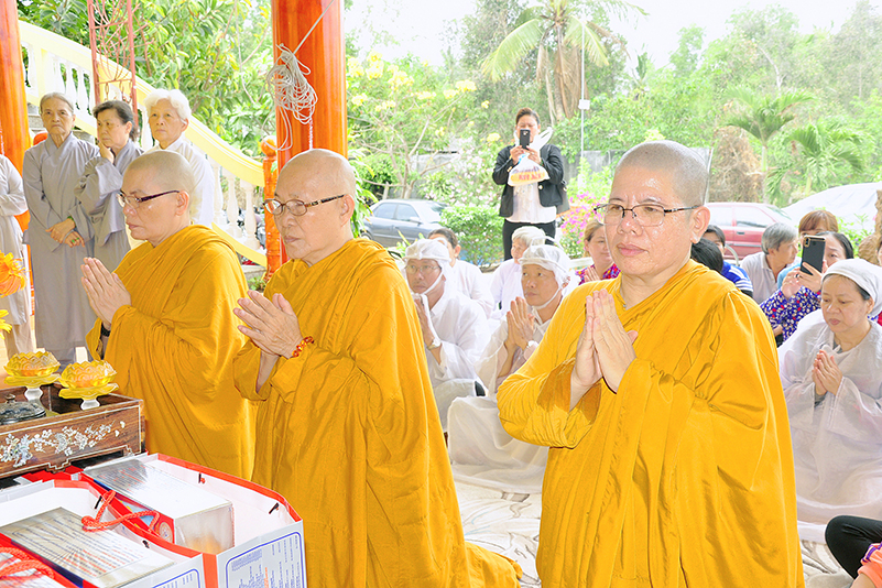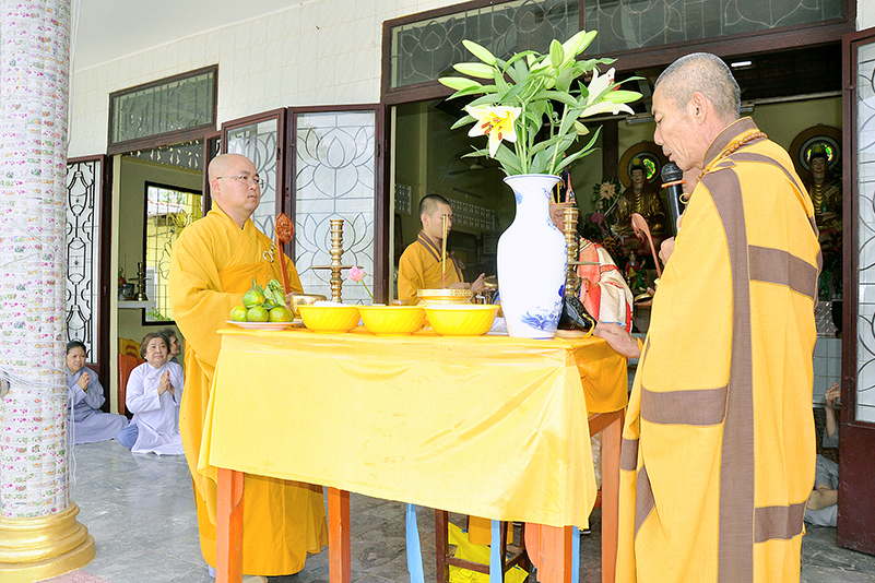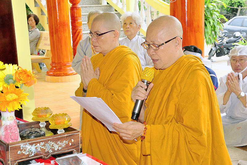 Tại buổi lễ, Ni Sư trụ trì thành kính cung đối trước chư Tôn Hòa Thượng, Thượng Tọa, Đại Đức Tăng và Chư Tôn Đức Ni thành kính dâng lời tác bạch cúng dường.