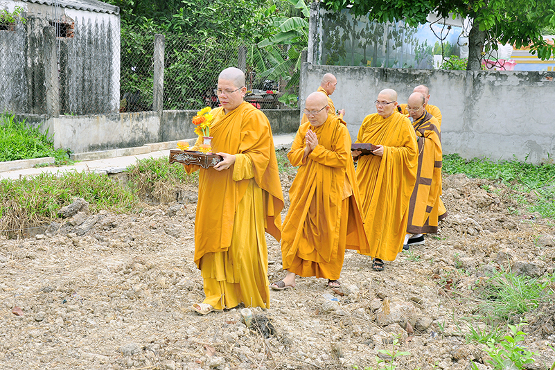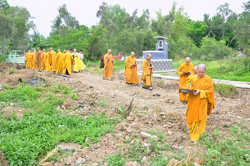 Đến 8g30, Chư tôn đức trong ban Kinh sư thực hiện Khóa lễ Cúng Ngọ, Tiến Giác linh do Thượng tọa Thích Thiện An – Trưởng Ban Nghi lễ PG huyện Châu Thành đảm nhiệm.