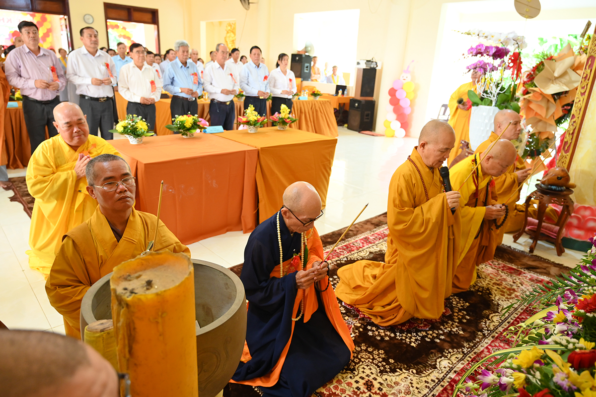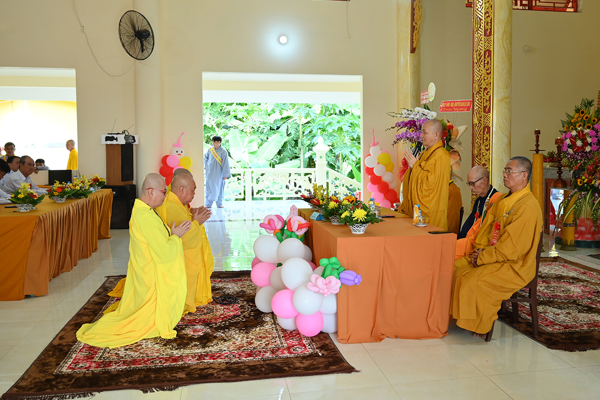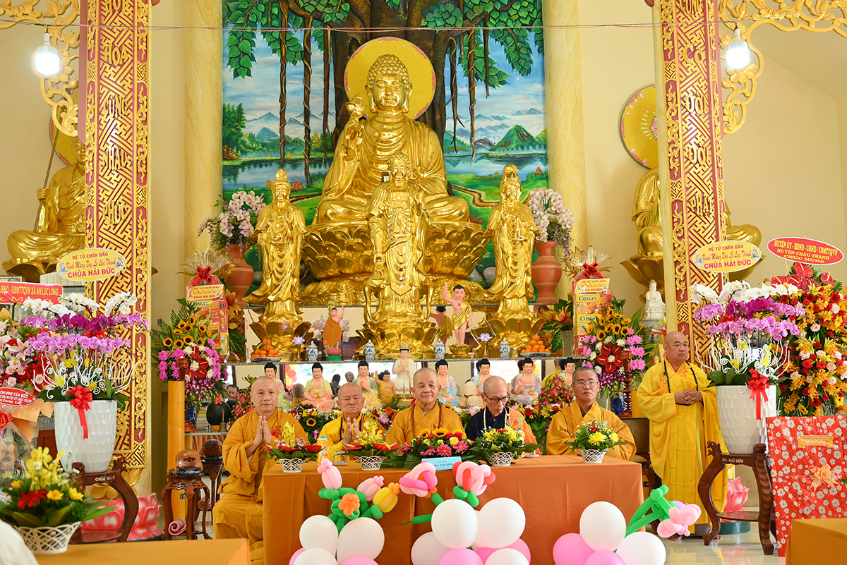 Buổi lễ hân hoan được cung nghinh sự quang lâm chứng minh của HT. Thích Minh Thiện- Uỷ viên HĐTS TW GHPGVN, Phó trưởng Ban Hoằng pháp TW, Trưởng Ban Trị Sự GHPGVN tỉnh Long An; HT. Thích Đức Thông- Chứng minh Ban trị sự GHPGVN thị xã Cai Lậy tỉnh Tiền Giang; TT. Thích Minh Thọ- Uỷ viên HĐTSTW GHPGVN, Phó Ban Trị sự kiêm Trưởng Ban Pháp Chế GHPGVN tỉnh Long An; TT. Thích Đức Hoàng- Phó Ban Trị sự GHPGVN tỉnh Long An; ĐĐ. Thích Lệ Ngôn- Phó Ban Trị sự kiêm Trưởng ban Hoằng pháp GHPGVN tỉnh Long An. ĐĐ. Thích Huệ Quang- Uỷ viên Ban Trị sự GHPGVN tỉnh Long An, Trưởng Ban Trị sự GHPGVN huyện Châu Thành, cùng Chư tôn đức trong Ban Trị sự GHPGVN huyện Châu Thành và các huyện lân cận, quý chư tôn đức trụ trì các tòng lâm tự viện trong huyện Châu Thành trở về tham dự.
