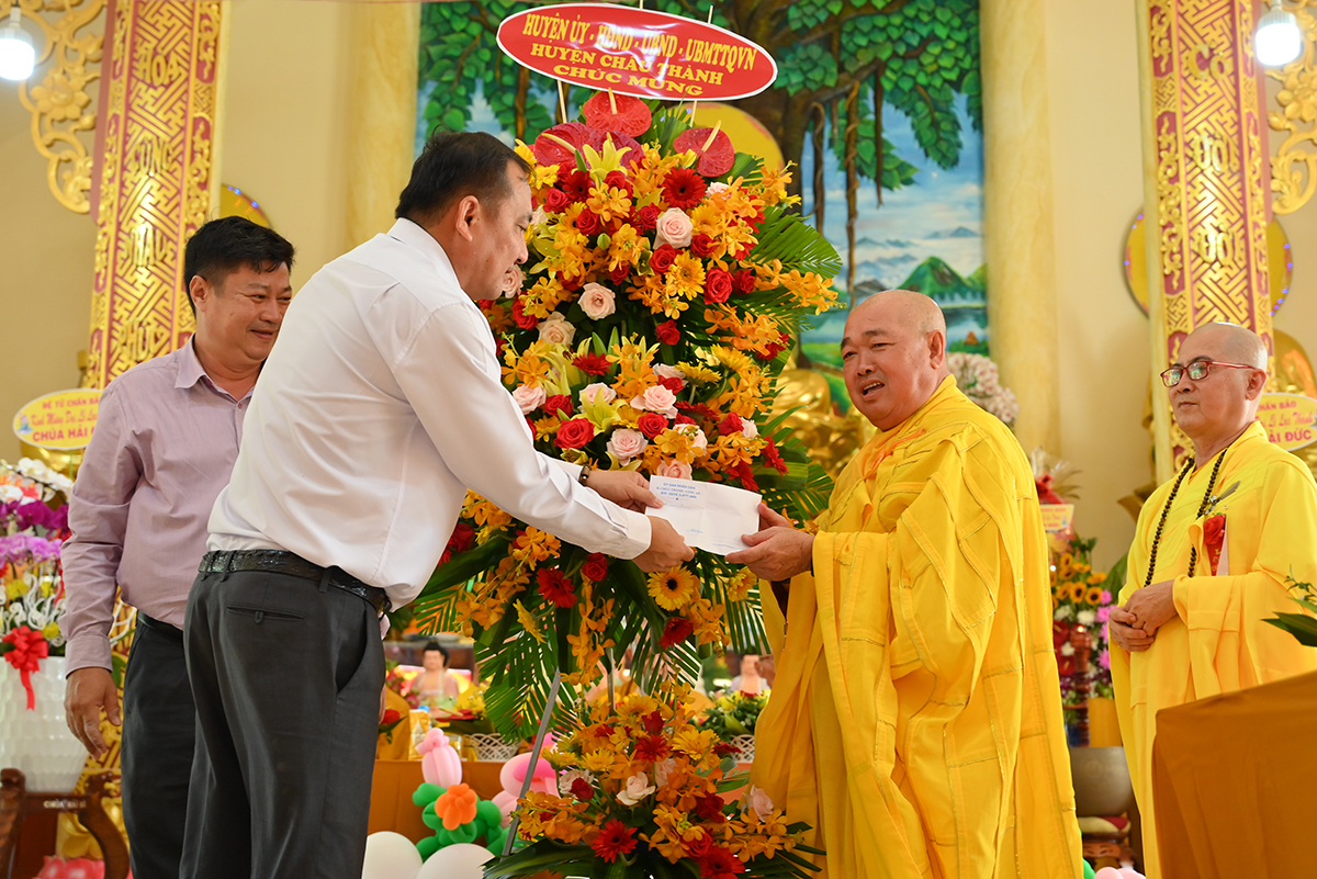 Sau lời đạo từ cao quý của Hoà Thượng chứng minh, Thượng Toạ trụ trì đã đón nhận nhiều lẳng hoa, phần quà chức mừng của Chư tôn đức và quý lãnh đạo chánh quyền.
