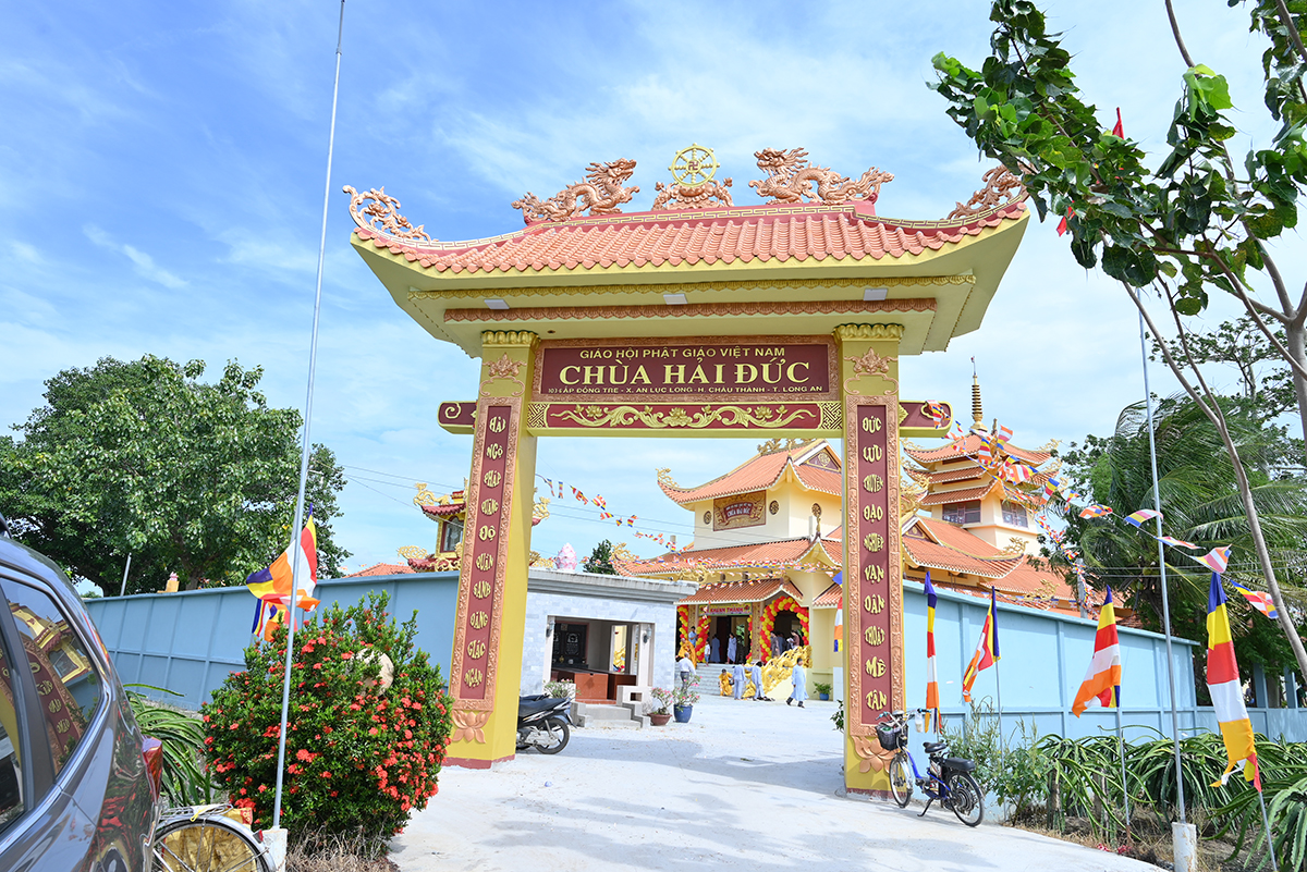 Trong buổi lễ ĐĐ. Thích Thiện Hùng thay mặt TT. Thích Minh Hạnh- Chứng Minh Ban Trị sự GHPGVN huyện Châu Thành, Trụ trì Chùa đã báo cáo khái quát quá trình trùng tu tái thiết ngôi già lam Hải Đức. Sau hơn 10 năm trùng tu và tái thiết ngôi Tam Bảo đã hoàn thành.