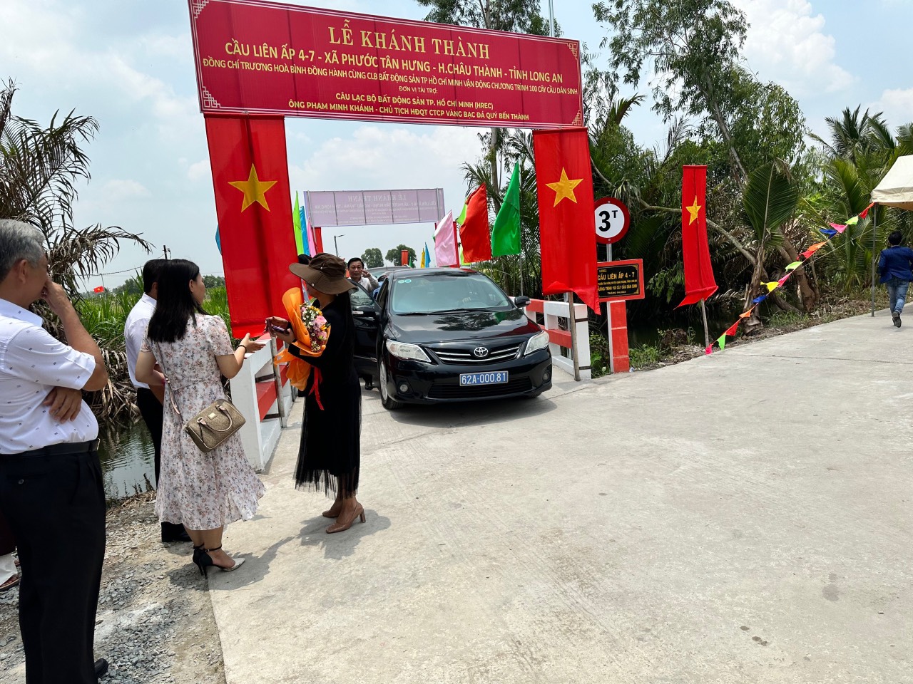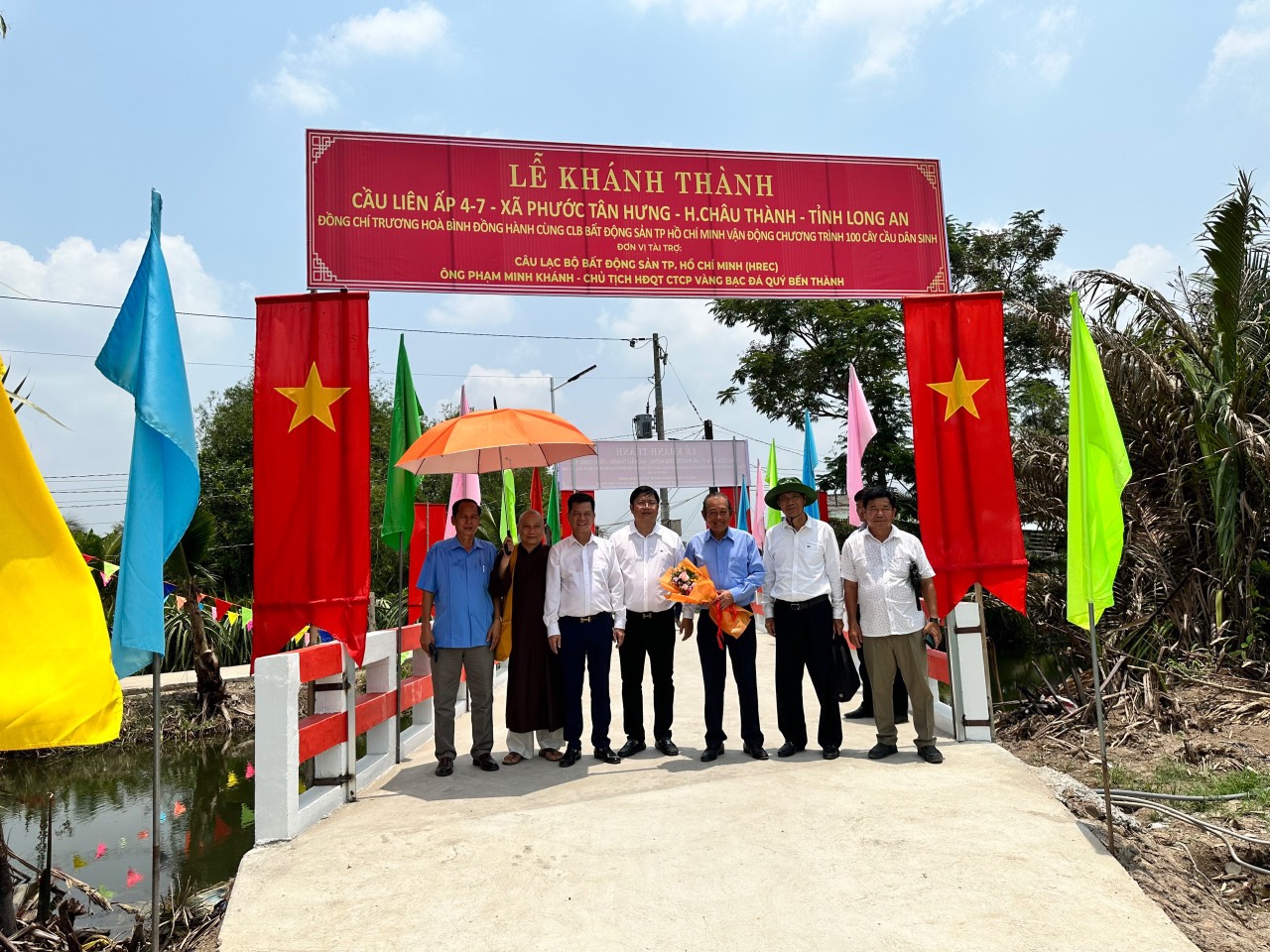 Ngày 20/4/2023, huyện Châu Thành tổ chức Lễ khánh thành 02 cầu giao thông nông thôn liên xã, liên ấp. Dự có đồng chí Trương Hòa Bình – Nguyên Ủy viên Bộ Chính trị, nguyên Phó Thủ tướng Thường trực Chính phủ; đồng chí Đỗ Hữu Lâm – Nguyên Phó Bí thư Thường trực Tỉnh ủy; đồng chí Nguyễn Minh Lâm – Ủy viên Thường vụ Tỉnh ủy, Phó Chủ tịch UBND tỉnh; đồng chí Trần Văn Dũng – Ủy viên Thường vụ Tỉnh ủy, Chủ nhiệm Ủy ban kiểm tra Tỉnh ủy; đồng chí Trương Thanh Liêm – Tỉnh ủy viên, Bí thư Huyện ủy Cần Giuộc. Về phía huyện có đồng chí Lê Quốc Dũng – Tỉnh ủy viên, Bí thư Huyện ủy; đồng chí Nguyễn Dương Phong Linh – Phó Bí thư Thường trực Huyện ủy, Chủ tịch HĐND huyện; đồng chí Nguyễn Văn Khải – Phó Bí thư Huyện ủy, Chủ tịch UBND huyện; đồng chí Phạm Văn Thật, đồng chí Hà Minh Tuấn – Phó Chủ tịch UBND huyện; đại diện Đoàn Câu lạc bộ Bất động sản TP Hồ Chí Minh và các đơn vị tài trợ cho quỹ xây dựng cầu.