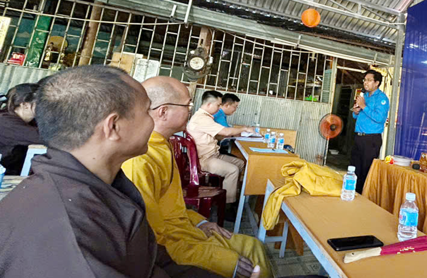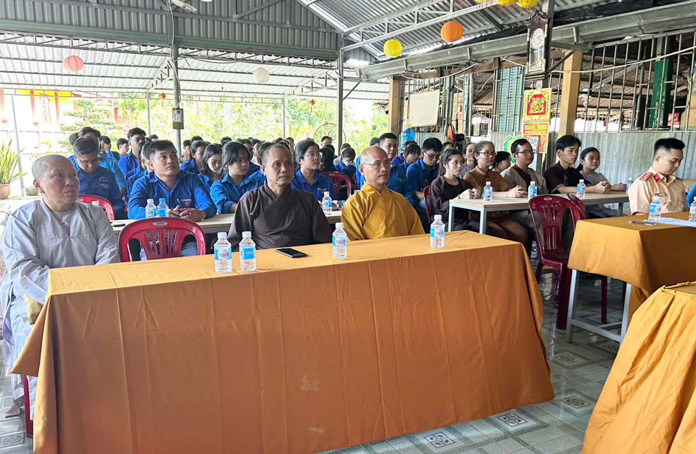 Trong phần chia sẽ của Đại úy Huỳnh Thiện Tâm, Công An CSGT huyện Châu Thành, Đại úy đã nhắc tất cả mọi người tuân thủ luật giao thông, không giao xe cho các em khi chưa đủ điều kiện tham gia giao thông, đảm bảo an toàn cho người và cho mình. Các bạn thanh niên sôi nổi cùng giao lưu và trả lời những kiến thức về luật an toàn giao thông. Với lứa tuổi còn trẻ, việc xây dựng kiến thức an toàn cho mình và cộng đồng là góp phần xây dựng một tương lai tốt đẹp. Các bạn được Đại úy công an trao tặng những chiếc mũ bảo hiểm khi trả lời đúng các câu hỏi và không khí nhiệt huyết, tình yêu quê hương đất nước, trân trọng những thành quả của Cha Anh đã được Ô Nguyễn Trung Rỡ, bí thư huyện Đoàn gửi đến các bạn Đoàn viên, thanh niên Tôn giáo với tinh thần rèn luyện nhân cách đạo đức của thế hệ Thanh niên con cháu Bác Hồ trên tinh thần 3 rèn luyện: Tâm trong, Trí Sáng và Rèn Chí Lớn. Với vai trò lãnh đạo trong Công tác Đoàn, Ông đã luôn kêu gọi thanh niên tôn giáo tăng cường, đẩy mạnh công tác đoàn kết, tập hợp thanh niên tôn giáo trên địa bàn xã, thị trấn; tạo môi trường giao lưu, học hỏi và gắn kết các thanh niên giữa các đơn vị với nhau, phát huy sức mạnh, sự đồng lòng của thanh niên toàn huyện đối với sự lãnh đạo, chỉ đạo các chủ trương đường lối của Đảng, pháp luật của Nhà nước.