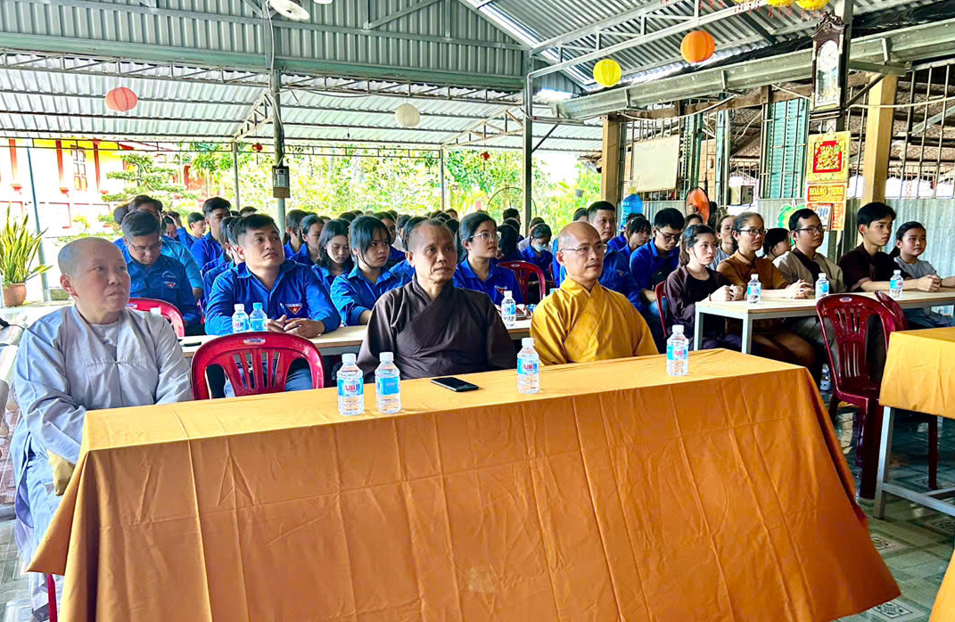 Ông Nguyễn Trung Rỡ đã thay mặt Ban tổ chức trân trọng mời TT Thích Lệ Trí có chia sẽ với toàn thể đông đảo hội chúng, Thượng tọa đã bày tỏ niềm hoan hỉ trước các hoạt động của Hội Liên Hiệp Thanh niên trong tỉnh Long An và của huyện Châu thành và niềm vui sinh hoạt Đoàn Đội từ thế hệ 7X, tiếp nối chiến dịch Mùa Hè Xanh của bao lớp thanh niên với những hoạt động tích cực và có ý nghĩa. Thượng tọa cũng thông tin đến mọi người những Khóa Tu Mùa Hè của Phật Giáo trong Tỉnh Long An và tại Chùa Long Phước, nơi Thầy trụ trì cũng đã góp phần tạo một sân chơi lành mạnh, nơi rèn luyện tri thức, đạo đức và nếp sống lành mạnh cho thanh thiếu niên tôn giáo khi trở về Chùa. Thượng Tọa Lệ Trí cùng tất cả mọi người ôn lại 5 Điều Bác Hồ dạy