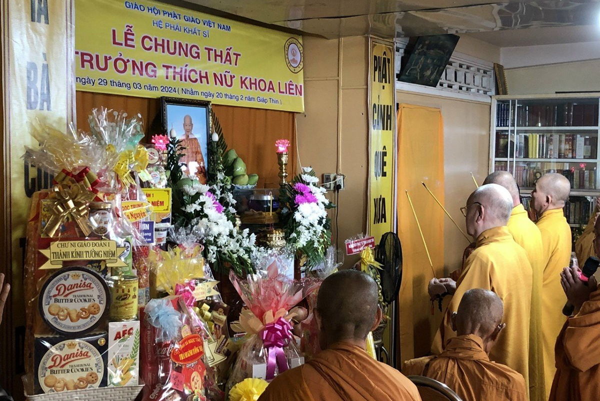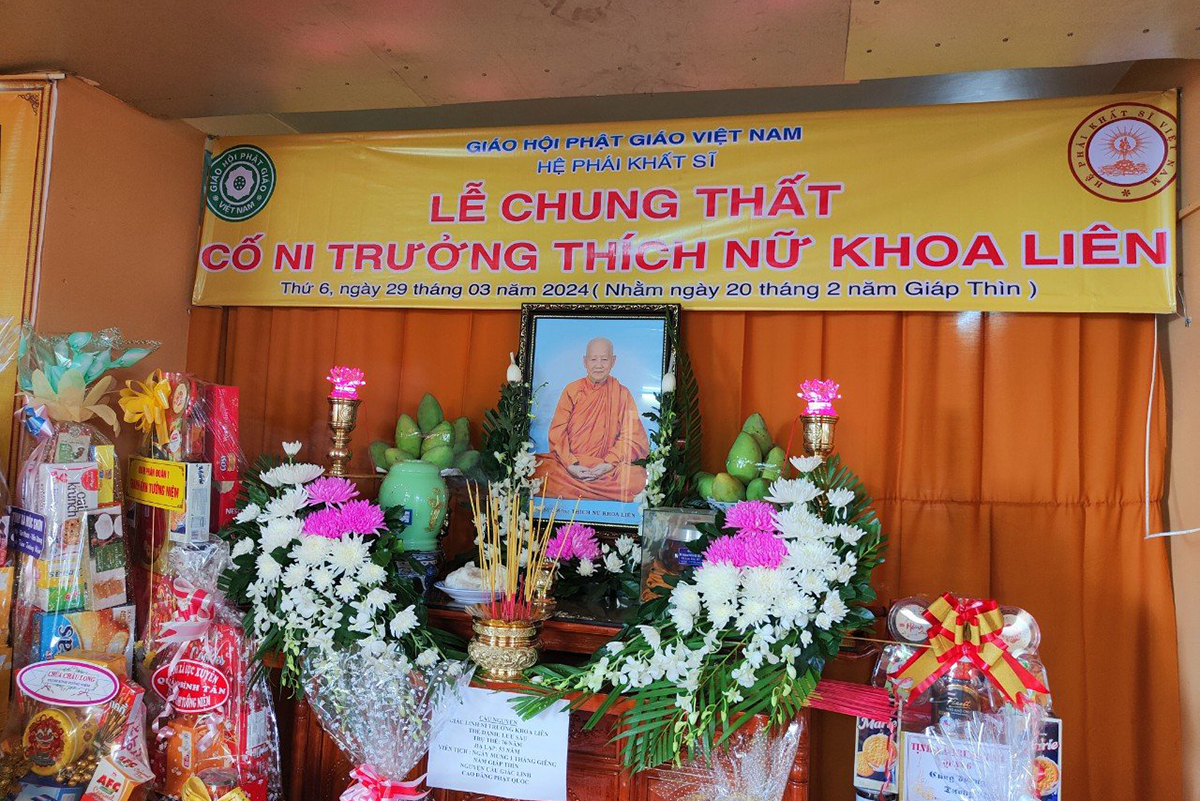 Tại buổi lễ, Ni trưởng Tuyết Liên, Trưởng Ban Quản chúng thuộc phân đoàn 2, Giáo đoàn 4 Ni giới Khất sĩ đọc lời tưởng niệm, xúc động nhắc lại những dấu ấn cuộc đời của Cố Ni trưởng Khoa Liên, trụ trì Tịnh Xá Ngọc Ẩn.