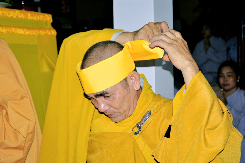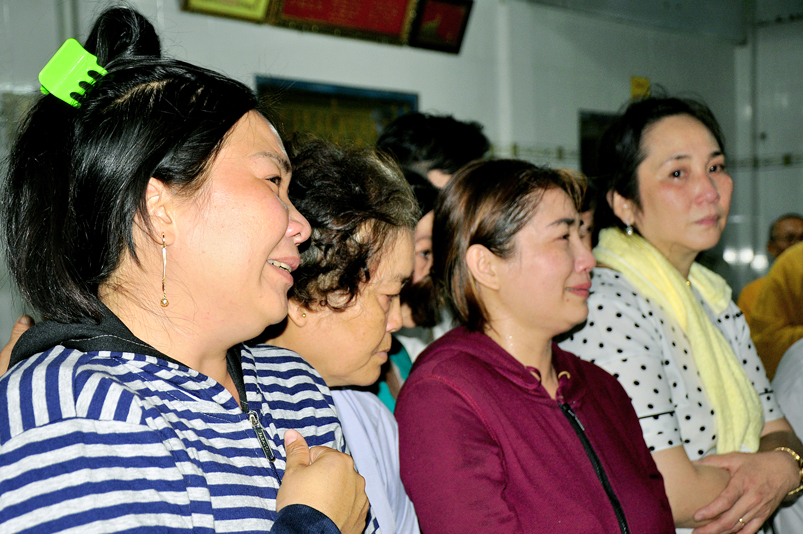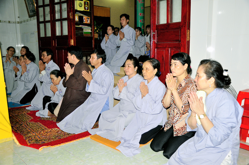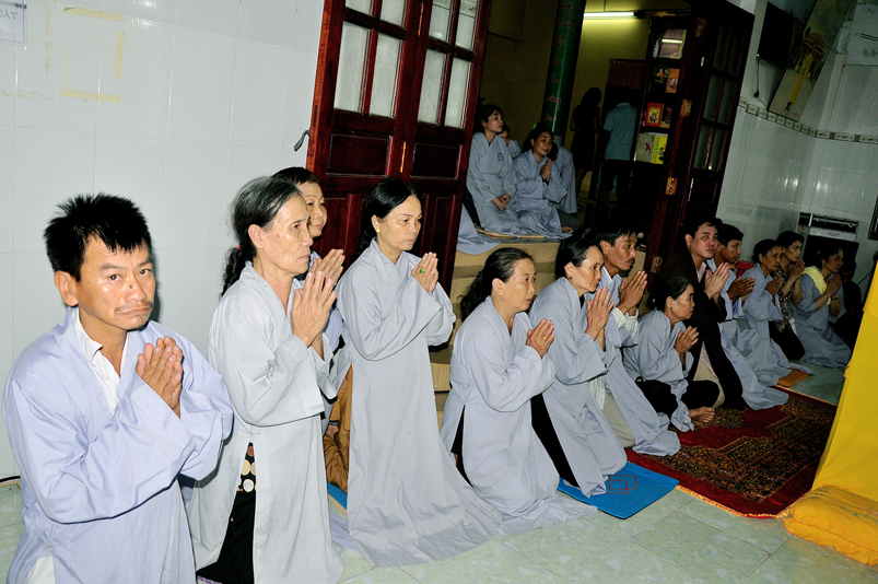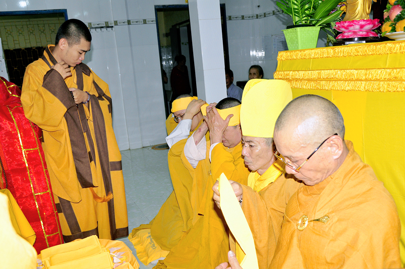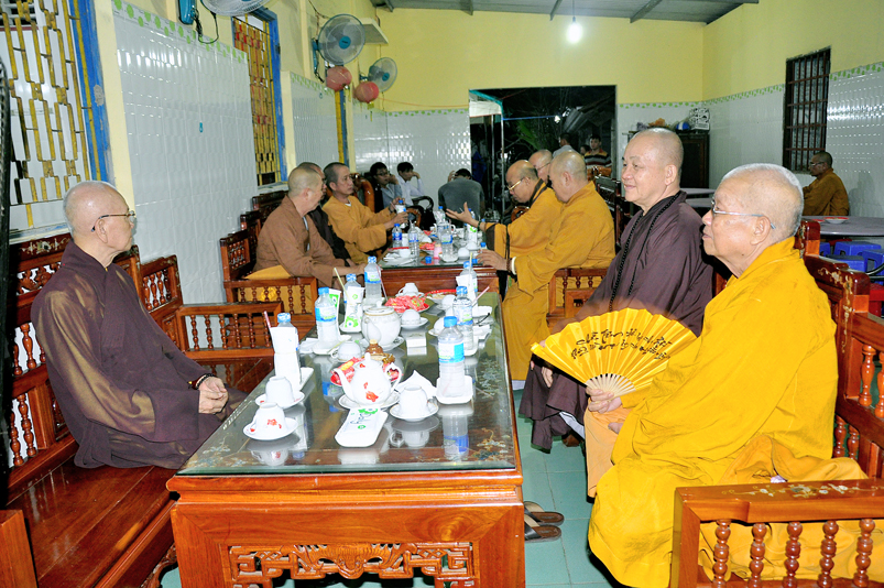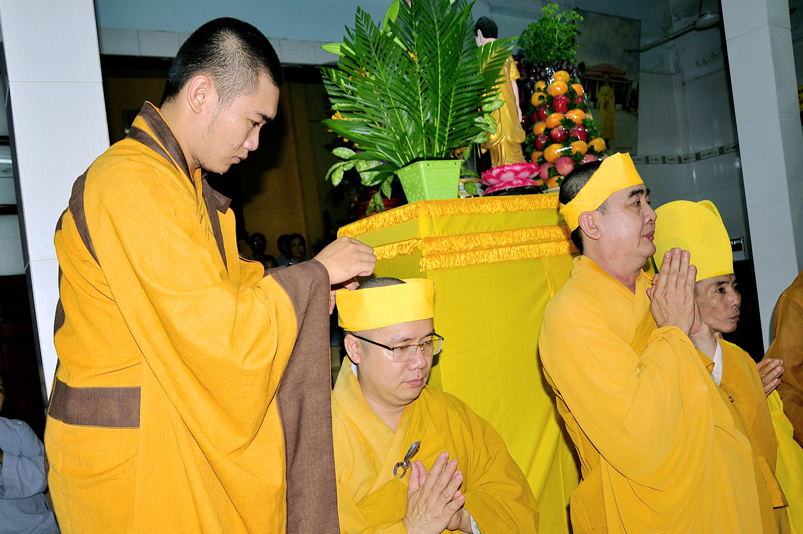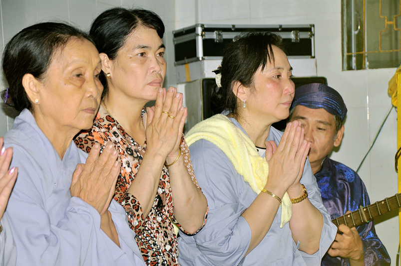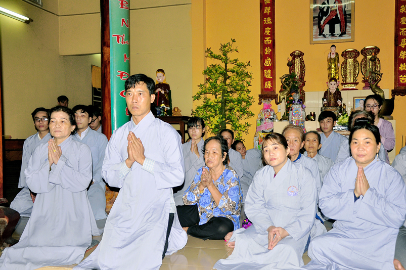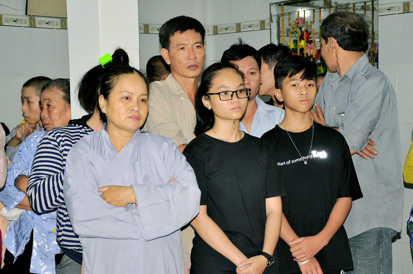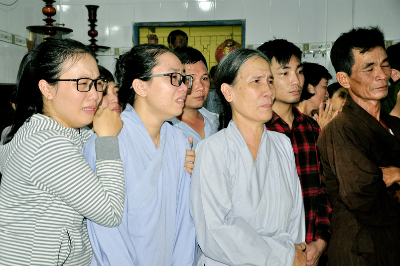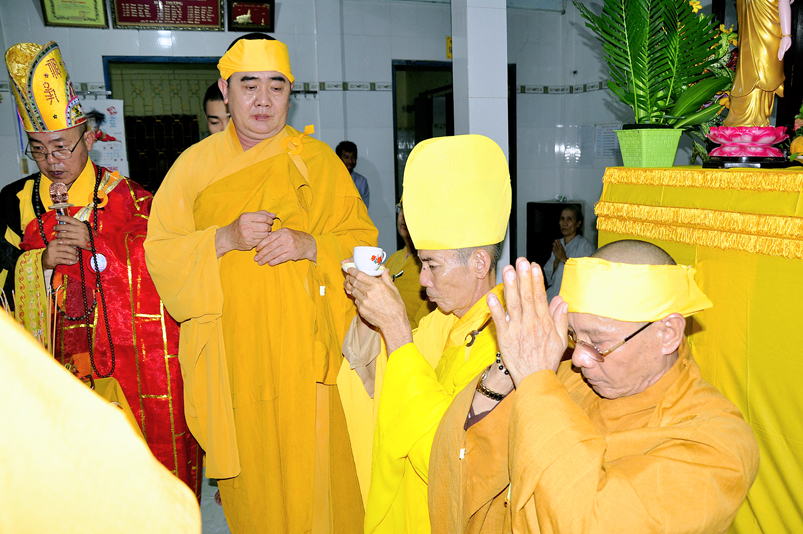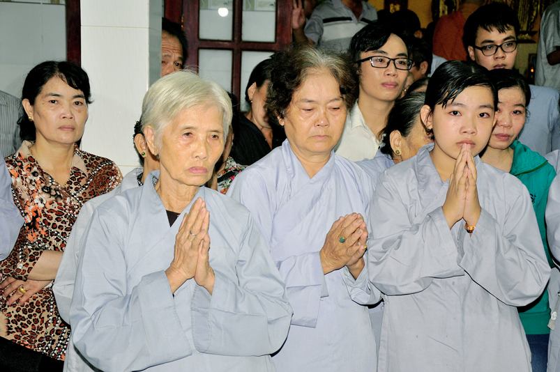 Toàn thể Chư tôn đức Giáo phẩm, Tăng Ni và Phật tử đã đồng thanh niệm Phật hòa cùng tiếng chuông trống Bát-nhã trầm hùng khi nhục thân của cố Hòa thượng được Chư tăng cung thỉnh nhập kim quan tại tổ đường.