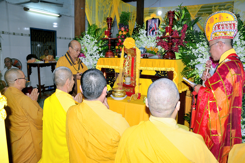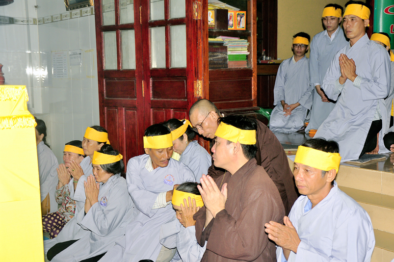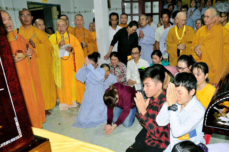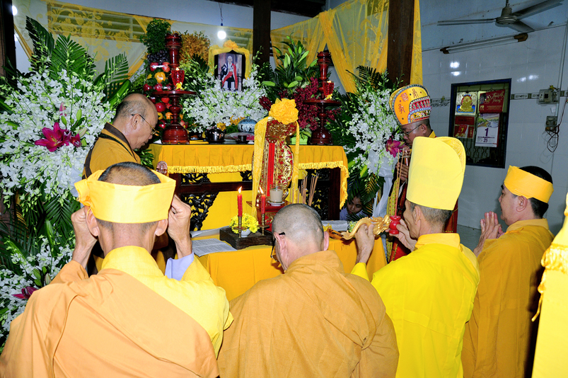 Theo chương trình lễ tang, nghi thức bạch Phật khai kinh và thọ tang được cử hành vào lúc 21 giờ cùng ngày.
