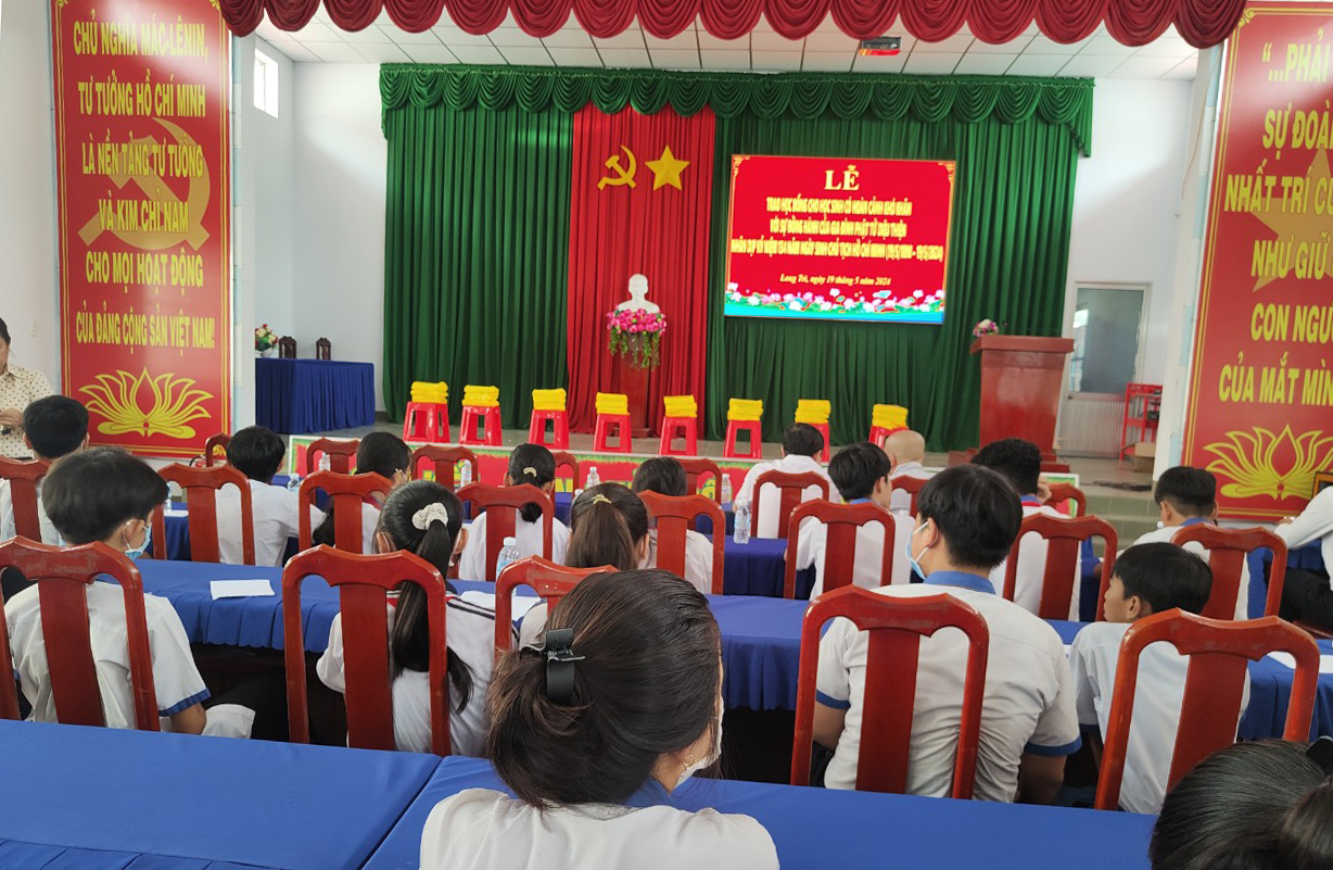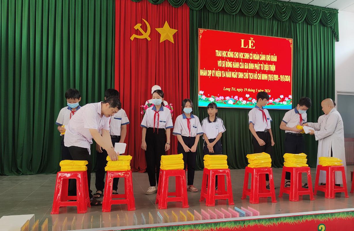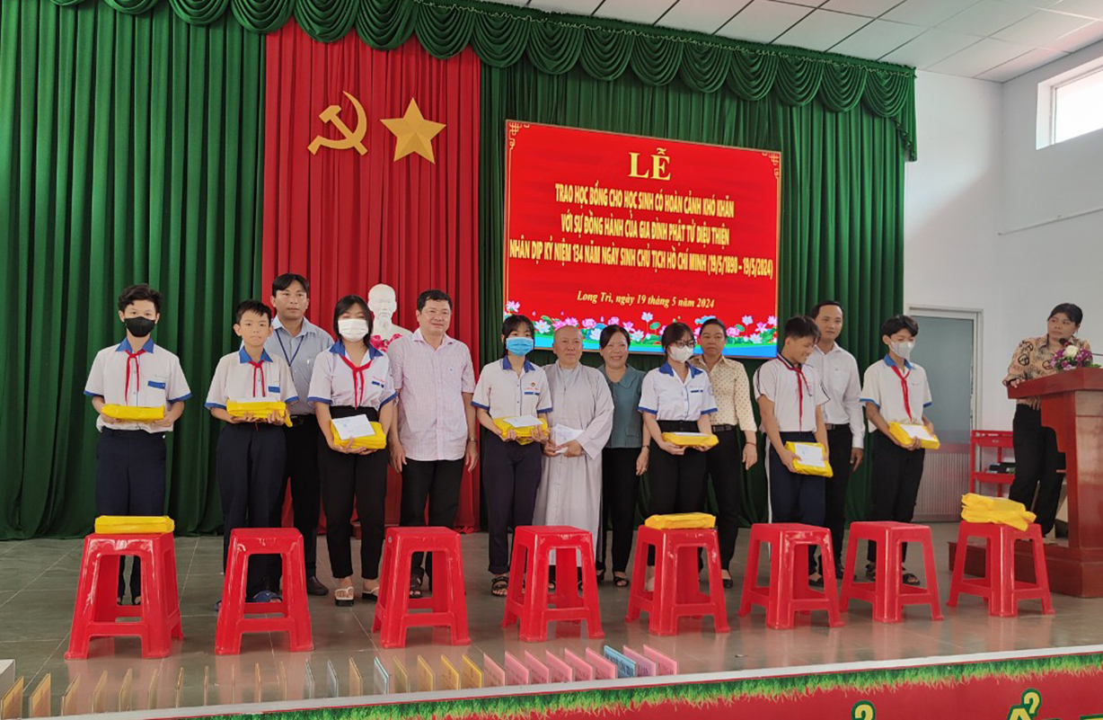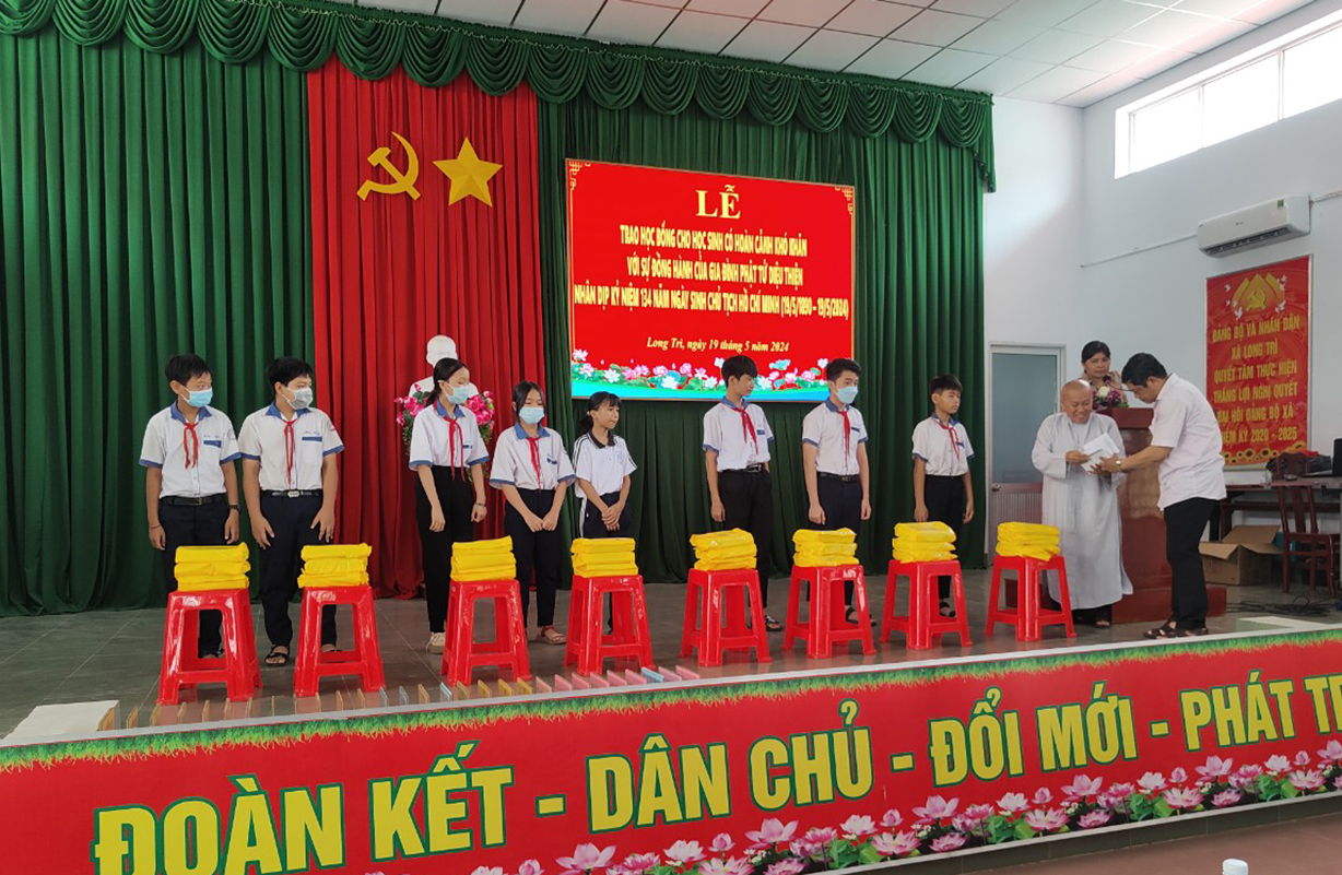 Kính mừng ngày Phật Đản Sanh, Phật lịch 2568 và nhân kỷ niệm 134 năm ngày sinh Chủ Tịch Hồ Chí Minh – Vị Cha già kính yêu của Dân tộc, ngày 12/4 Âl nhằm 19/5/2024, tại Hội trường UBND xã Long Trì, huyện Châu Thành, tỉnh Long An đã diễn ra buổi Lễ Trao tặng học bổng cho các em sinh viên học sinh có hoàn cảnh khó khăn, hiếu học.
