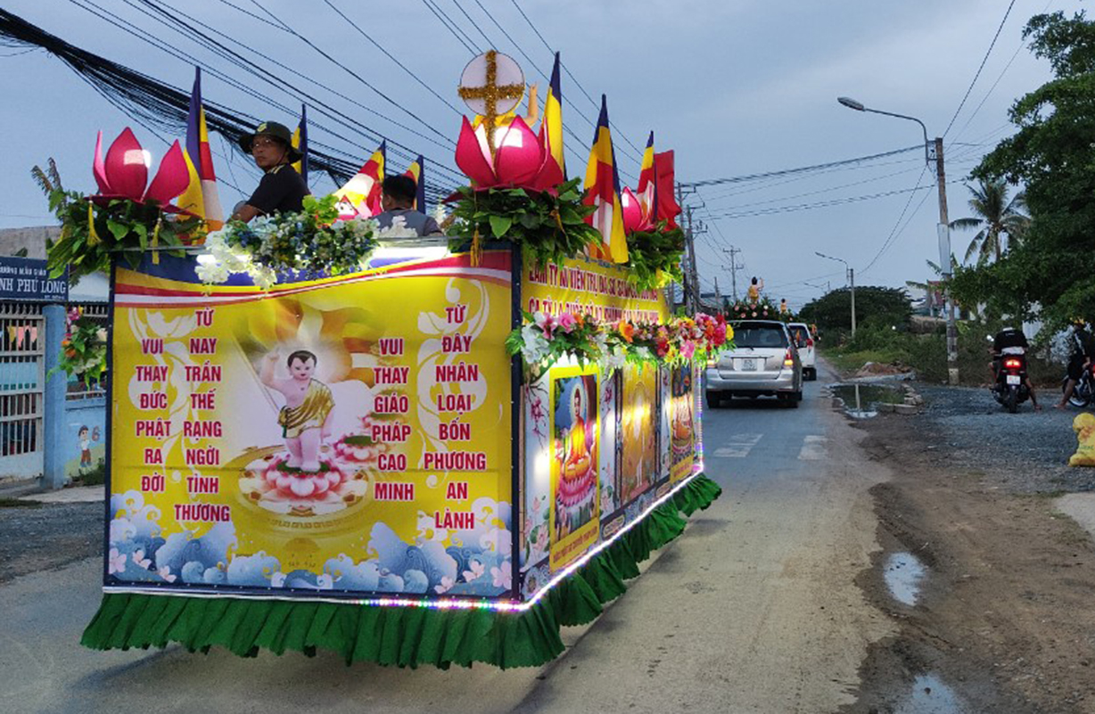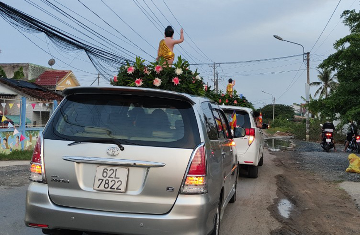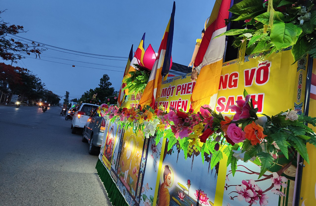 Đoàn xe Hoa Phật Đản 7 chiếc tiếp tục diễu hành trên những tuyến đường đã xin phép như gửi Thông điệp của Hòa Bình, thông điệp của Đấng Đại Giác Thế Tôn đến khắp mọi người.