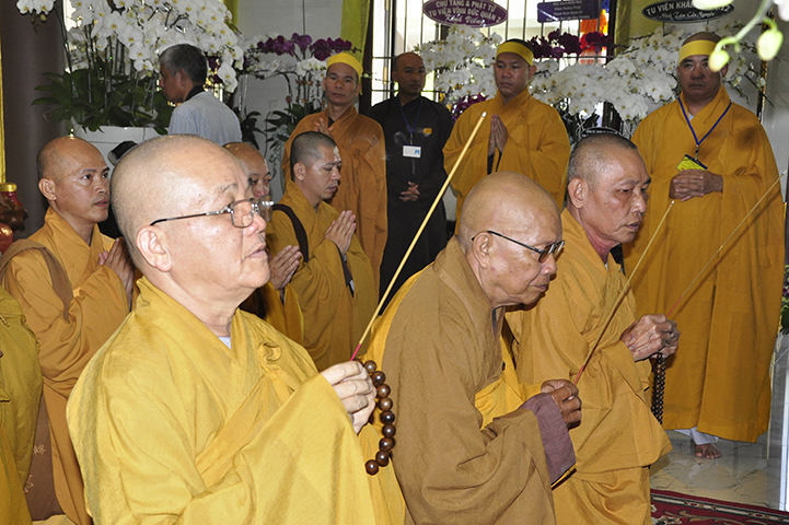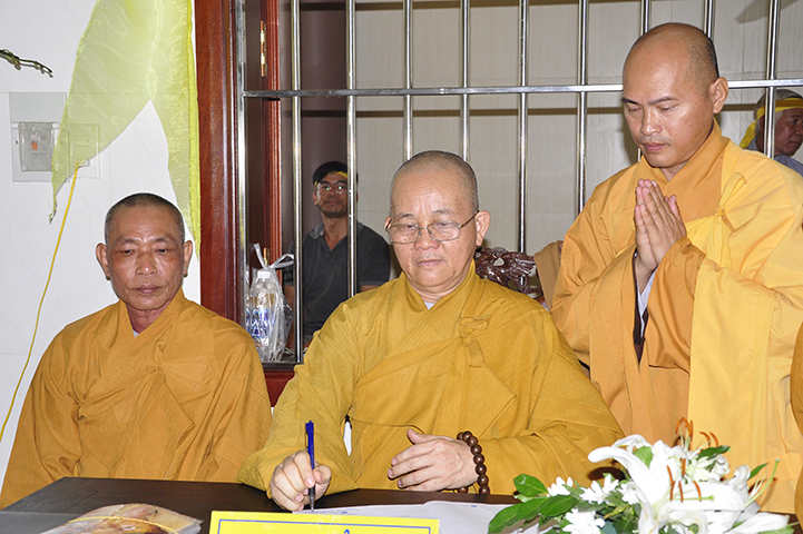 Phái đoàn gồm có HT. Thích Minh Thiện- UVHĐTSTƯ, Phó Ban Hoằng Pháp trung ương, Trưởng Ban trị sự GHPGVN tỉnh Long An( làm trưởng đoàn); HT. Thích Thiện Huệ- Chứng minh Ban trị sự GHPGVN tỉnh Long An; HT. Thích Thiện Tâm- Phó BTS kiêm Trưởng Ban kiểm Soát GHPGVN tỉnh Long An; ĐĐ. Thích Quảng Tâm- Phó thường trực BTS GHPGVN tỉnh Long An; ĐĐ. Thích Lệ trí- Phó Ban trị sự kiêm trưởng Giáo dục Tăng Ni BTS. GHPGVN tỉnh Long An; ĐĐ. Thích Lệ Ngôn – Trưởng Ban Hoằng Pháp GHPGVN tỉnh Long An; ĐĐ. Thích Thiện Danh- Phó thư ký kiêm Chánh văn phòng BTS GHPGVN tỉnh Long An cùng Chư tôn đức Tăng Ni trong thường trực BTS tỉnh.
