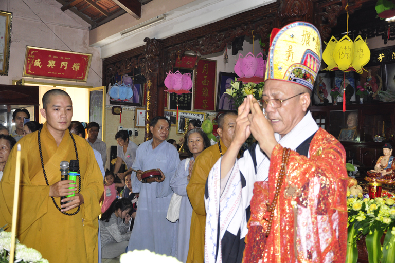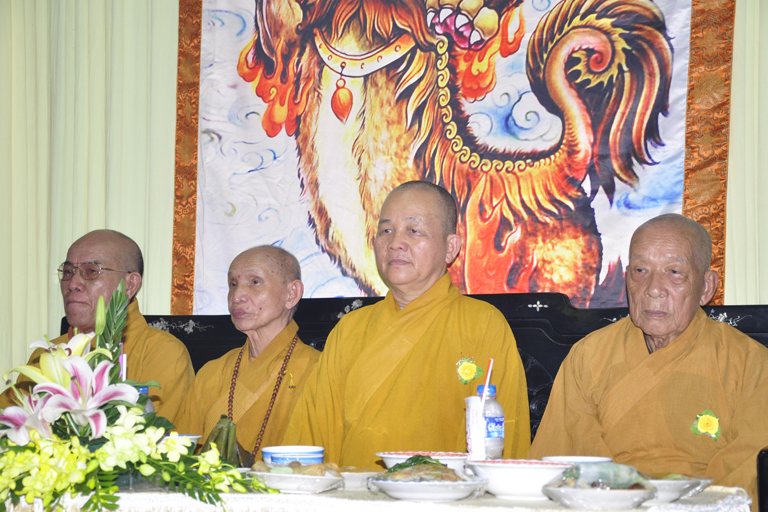 Chứng minh buổi lễ, chùa Long Nghĩa hoan hỷ, thành kính cung tiếp: HT. Thích Minh Thiện – Ủy viên HĐTS -Trưởng phó Ban hoằng pháp TW, Trưởng Ban Trị sự GHPGVN tỉnh Long An, Trụ trì chùa Thiên Châu; Hoà thượng Thích Giác Hạnh – phó Ban hoằng pháp TW, Hoà thượng Thích Thiện Ngọc – Chứng minh Ban Trị sự GHPGVN huyện Cần Đước; Hoà thượng Thích Bửu Tâm – GHPGVN huyện Cần Đước; Đại đức Thích Trí Minh – Phó trưởng ban Thường trực Ban trị sự GHPGVN huyện Cần Đước; Ni trưởng Thích nữ Như Vân – Trưởng ban Kinh tế tài chánh Ban trị sự GHPGVN huyện Cần Đướ; cùng chư tôn thiền đức Tăng Ni và hơn 700 Phật tử đồng về tham dự.