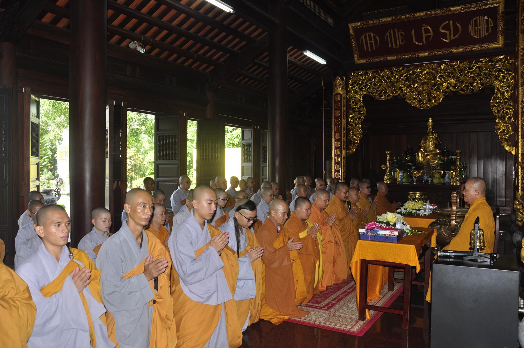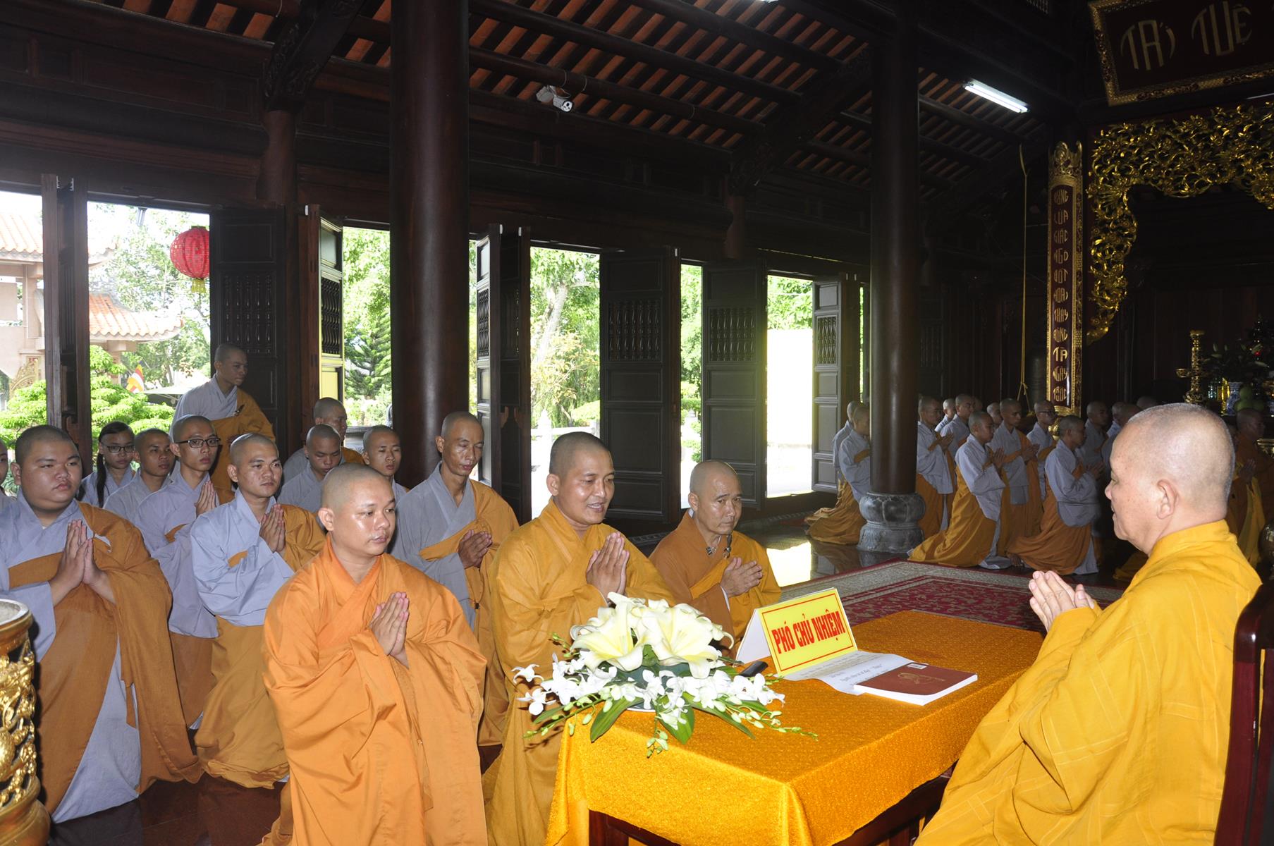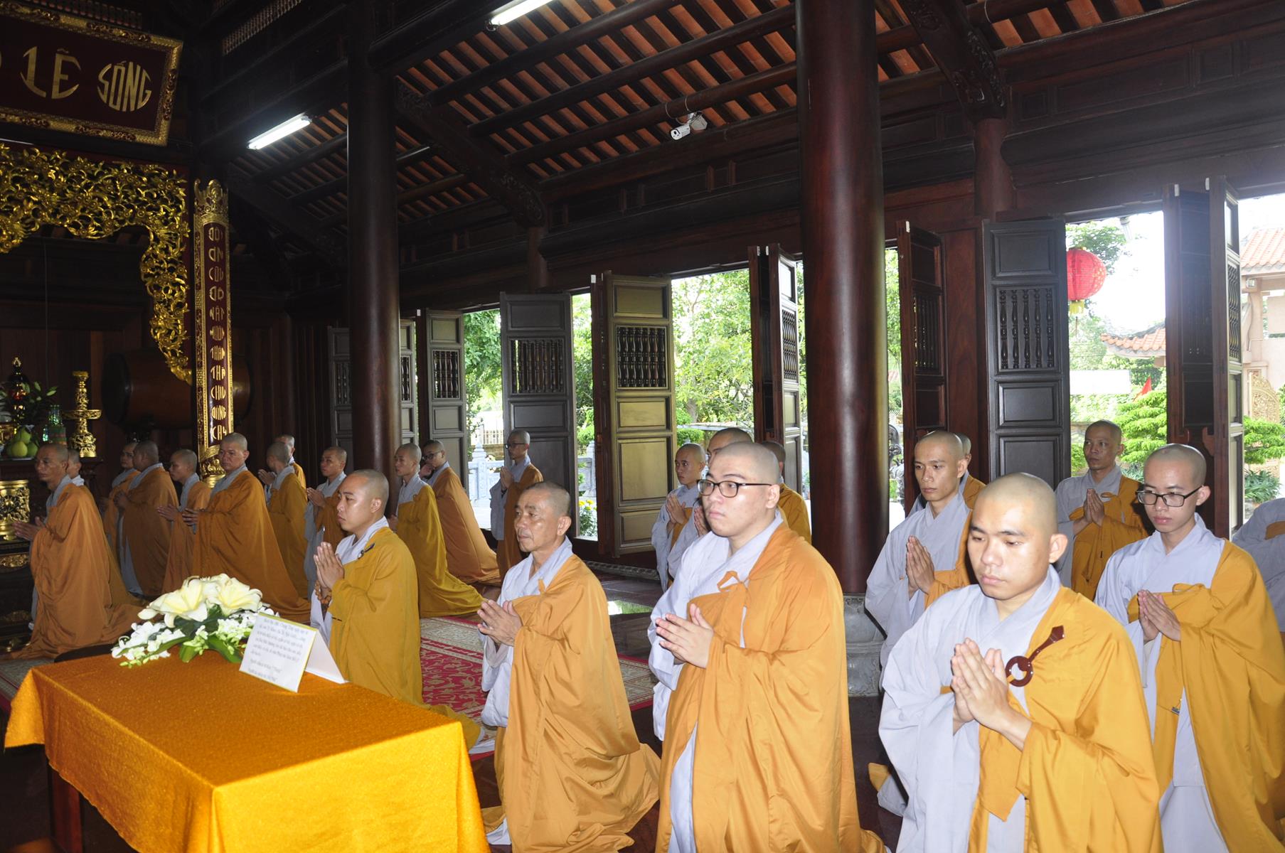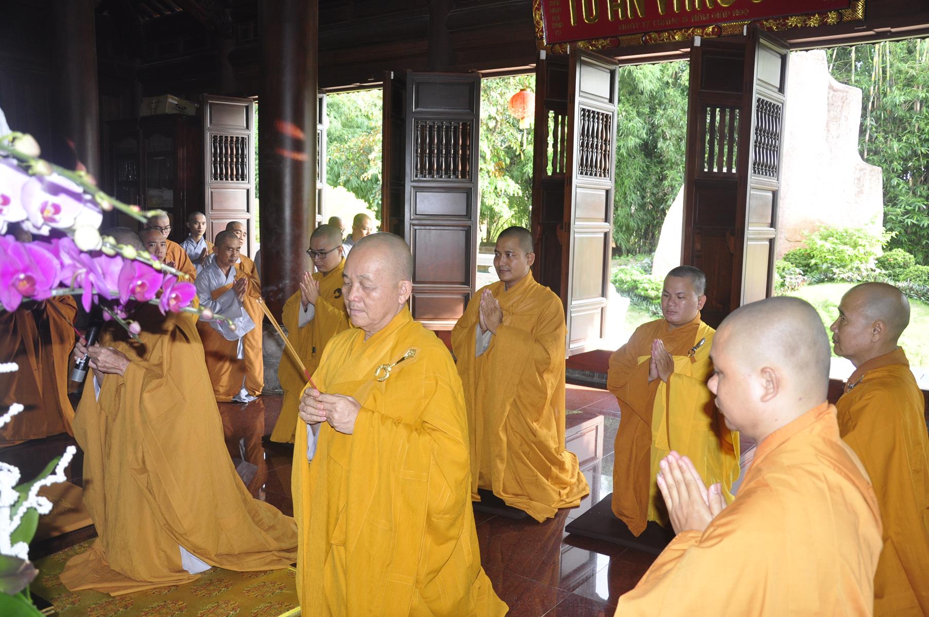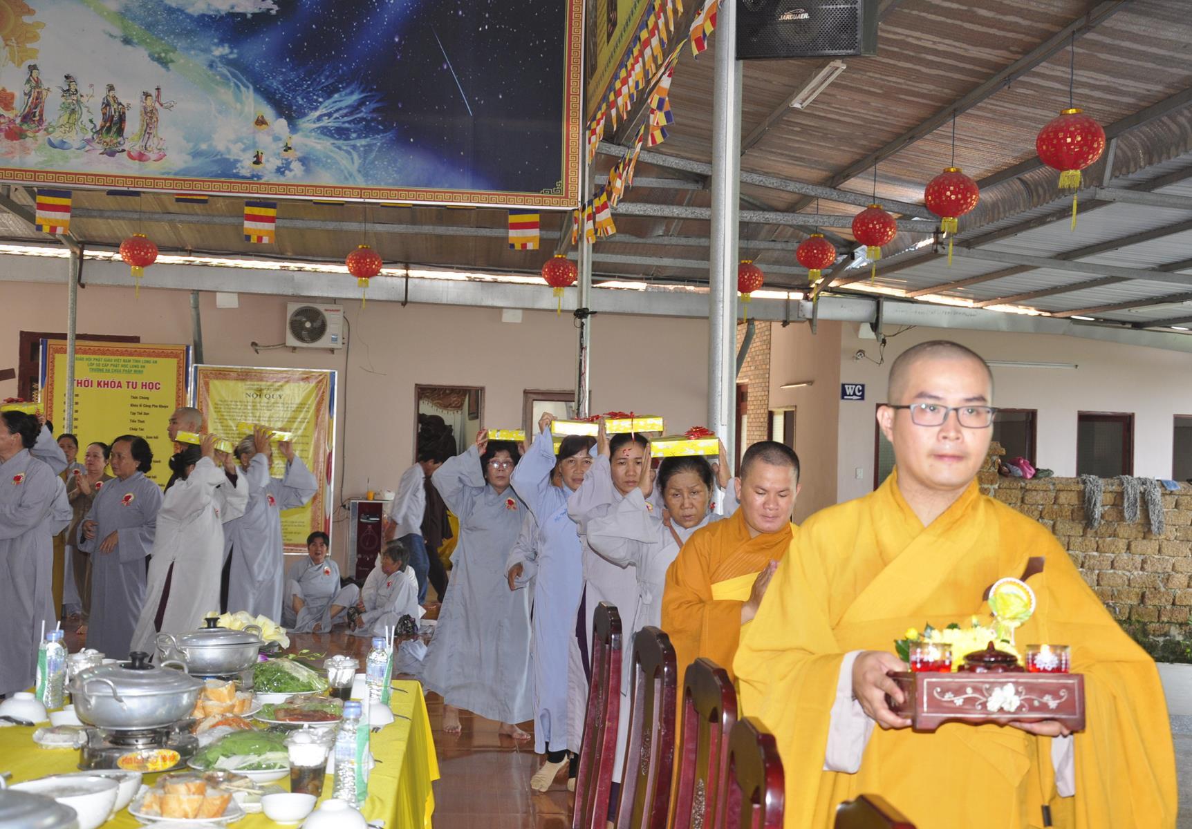 Vào lúc 07 giờ, Ban Chức sự và Ban Chủ nhiệm Lớp Sơ cấp Phật học Long An cung thỉnh HT Thích Thiện Huệ: Chứng minh Ban Trị sự GHPGVN tỉnh Long An; HT Minh Thiện: Ủy viên HĐTS, Phó Trưởng ban Hoằng pháp TƯ, Trưởng ban Trị sự GHPGVN tỉnh Long An, Hiệu trưởng Trường Sơ Trung cấp Phật học Long An, Thiền chủ Trường hạ chùa Pháp Minh tác pháp tự tứ cho trú xứ trường hạ chùa Pháp Minh.