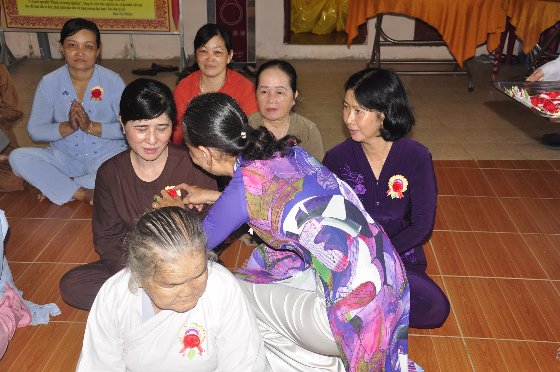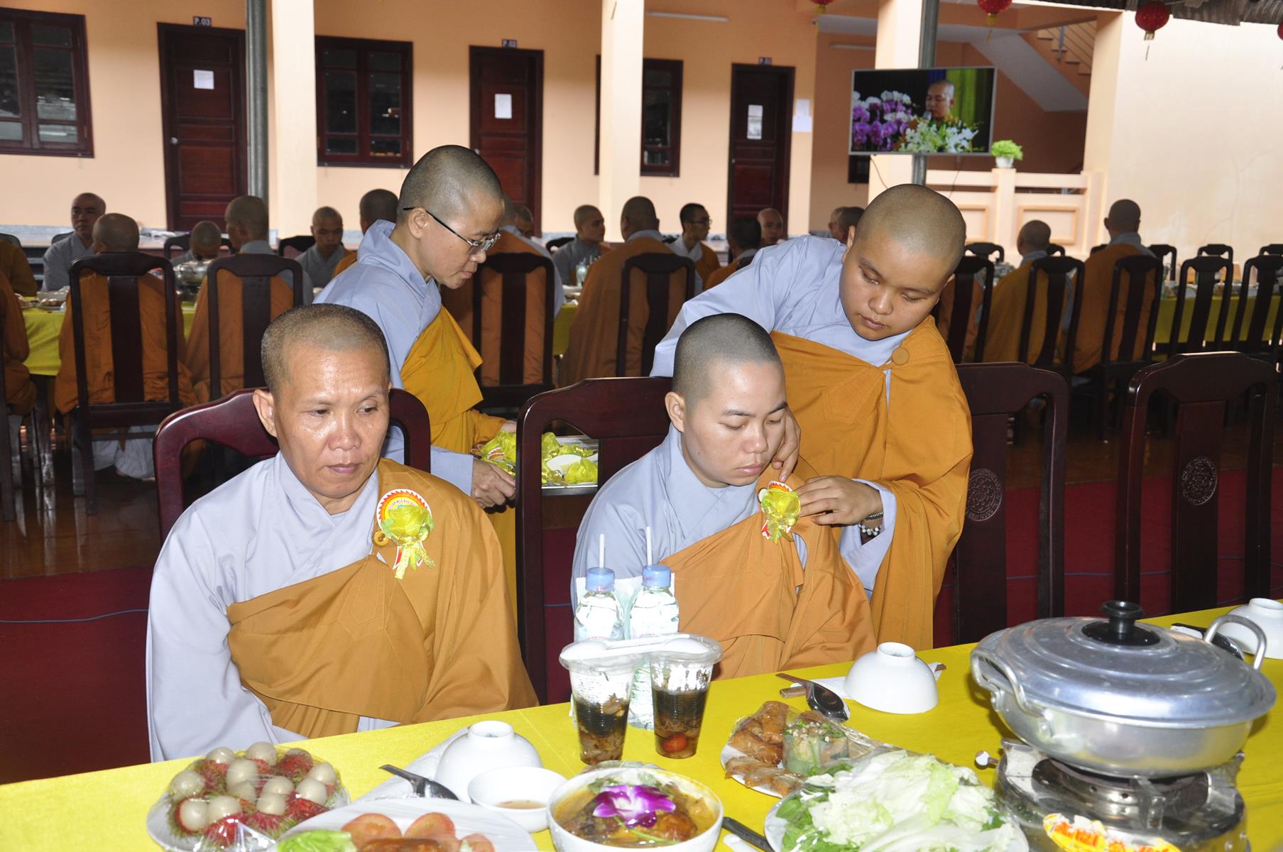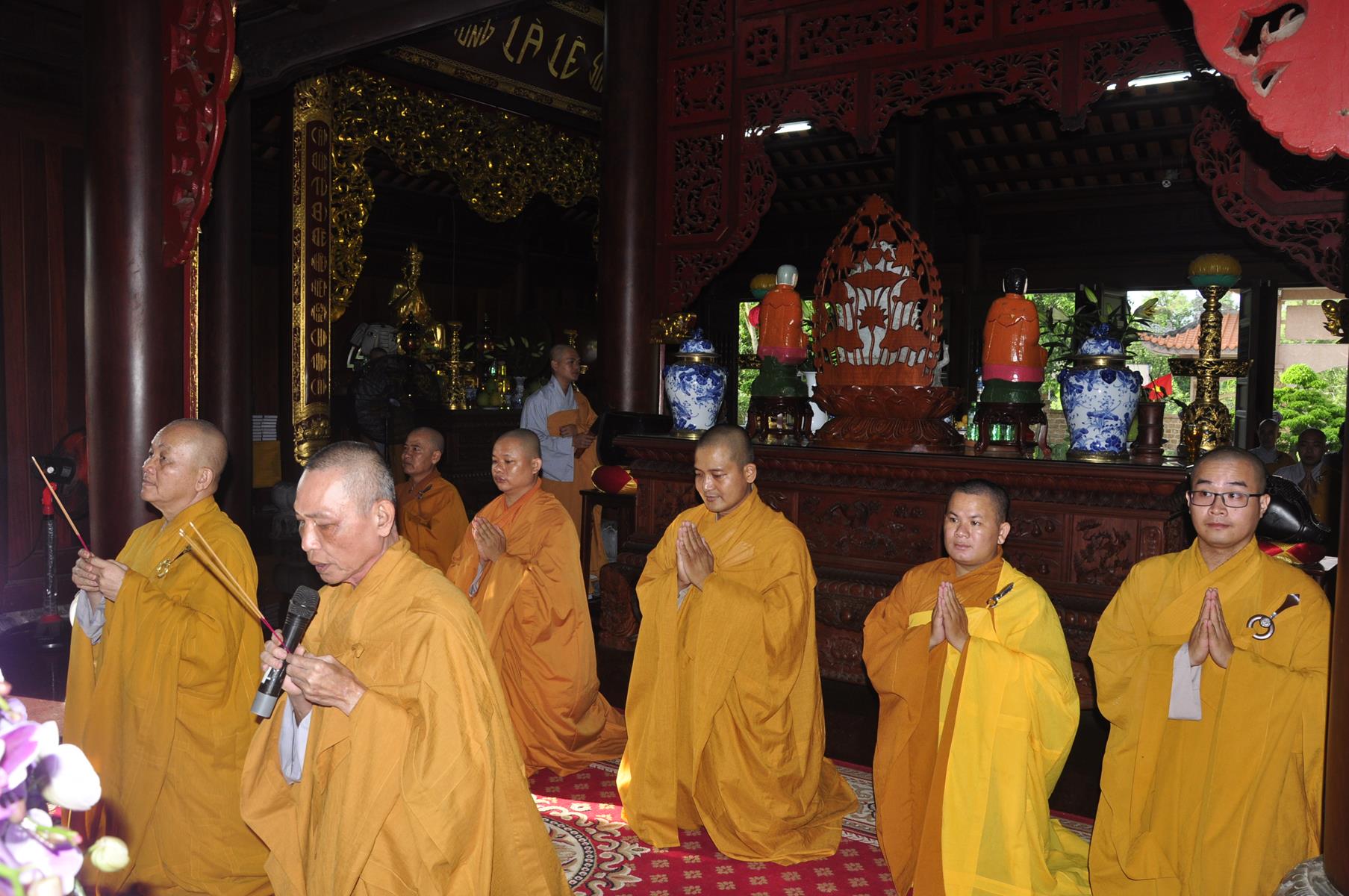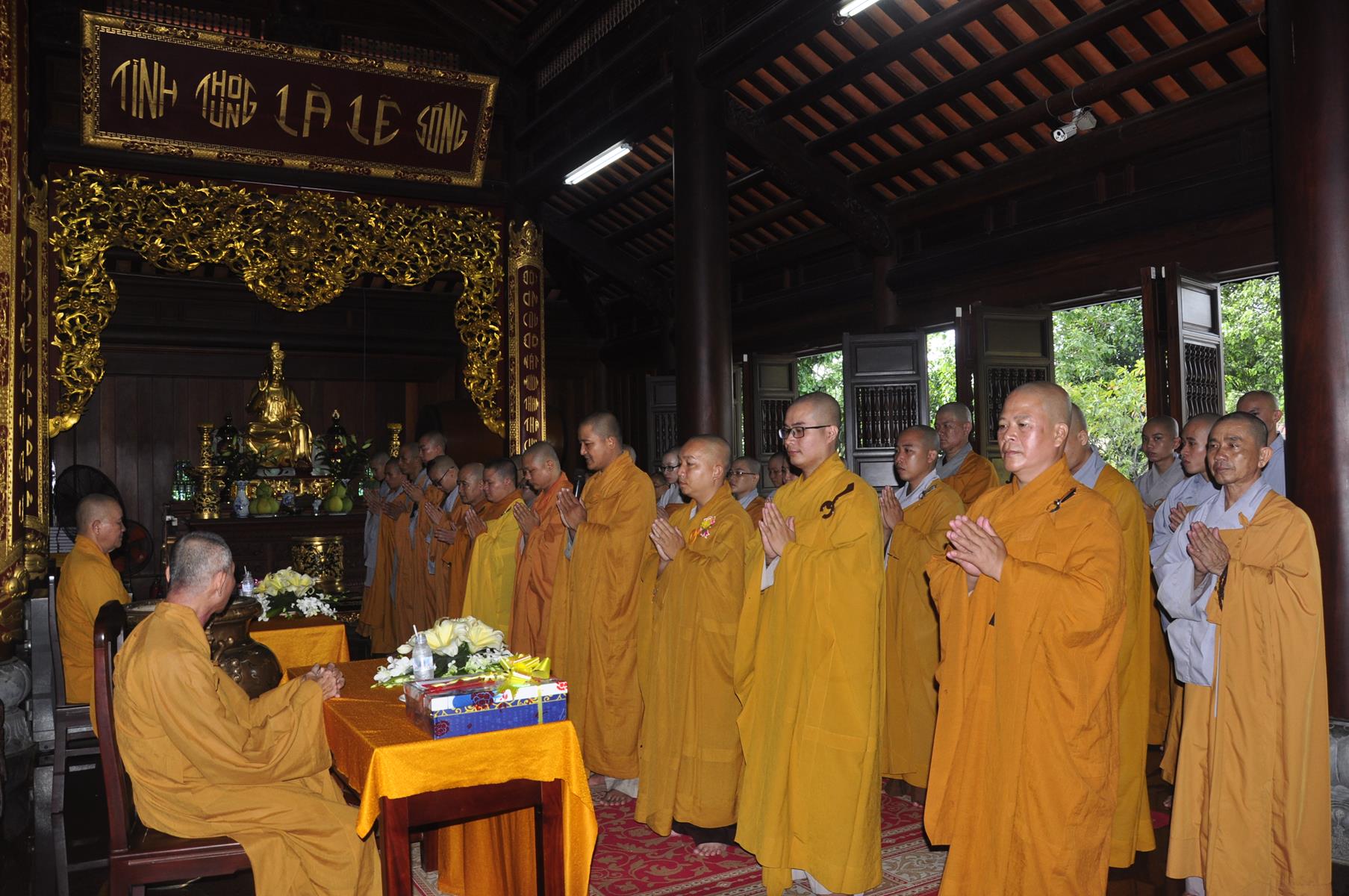Vào lúc 09 giờ, Ban Tổ chức cung thỉnh Chư Tôn đức quang lâm chứng minh Đại lễ Vu lan-Báo hiếu, cài hoa hồng tưởng nhớ tứ trọng ân và dâng pháp y ca sa.