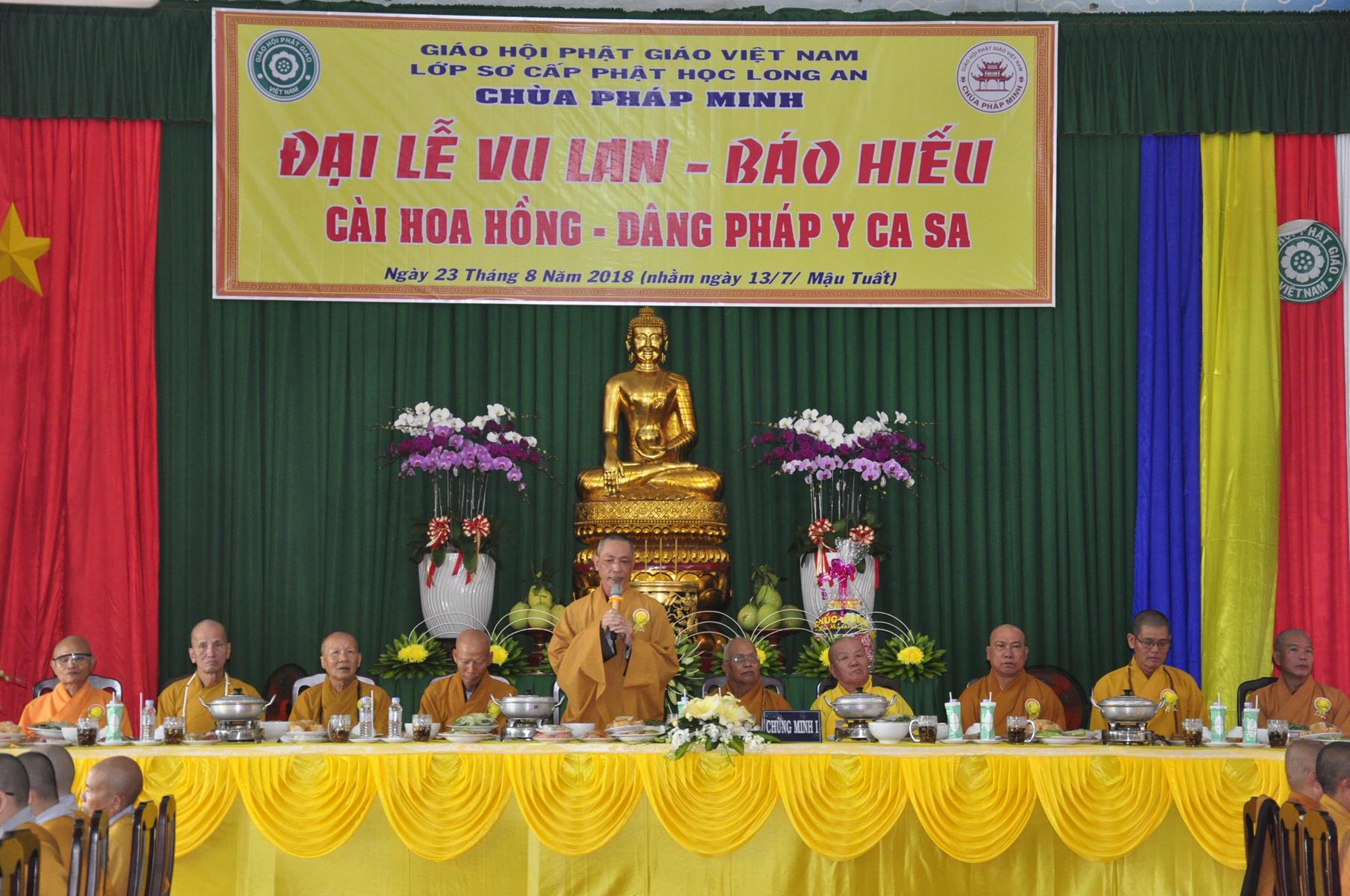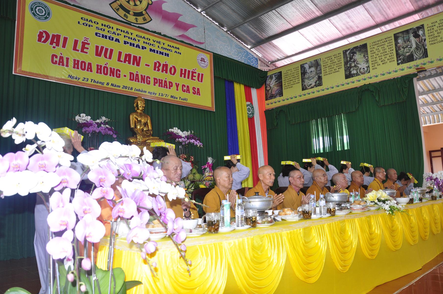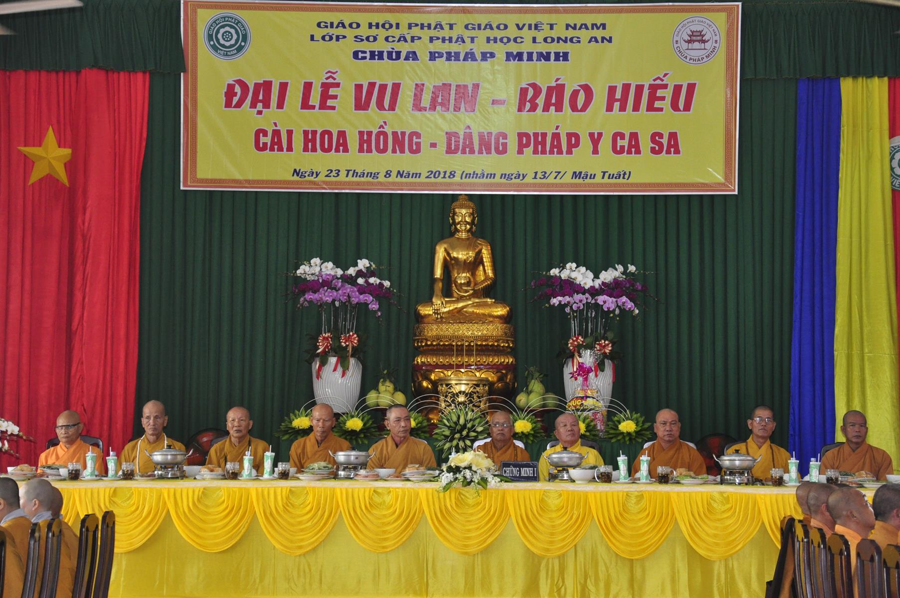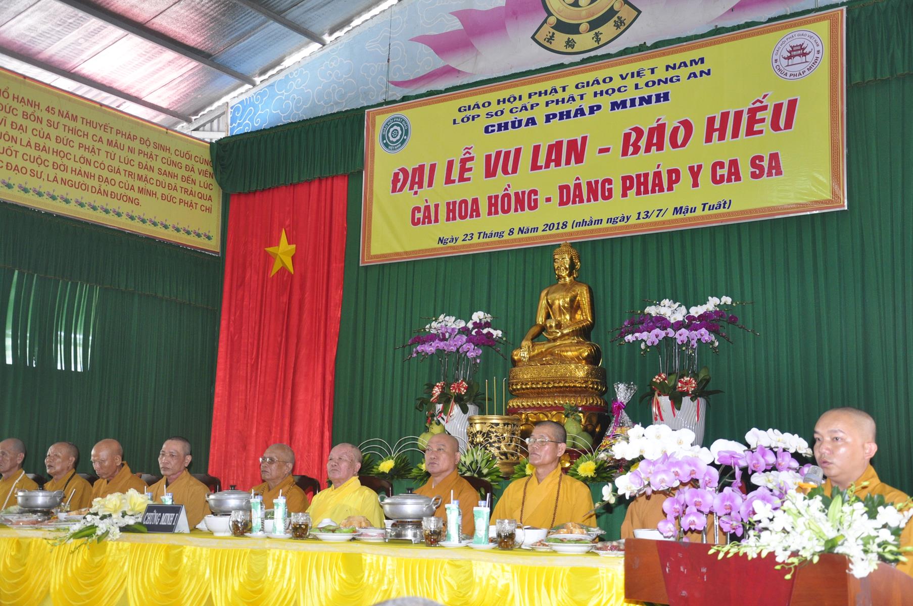 Sáng ngày, 23 tháng 8 năm 2018 (nhằm ngày 13/7/2018) tại chùa Pháp Minh (văn phòng Lớp Sơ cấp Phật học Long An), ấp Giồng Lớn, xã Mỹ Hạnh Nam, huyện Đức Hòa, tỉnh Long An diễn ra lễ Tự tứ và Đại lễ Vu Lan Báo hiếu PL 2562 – DL 2018.
