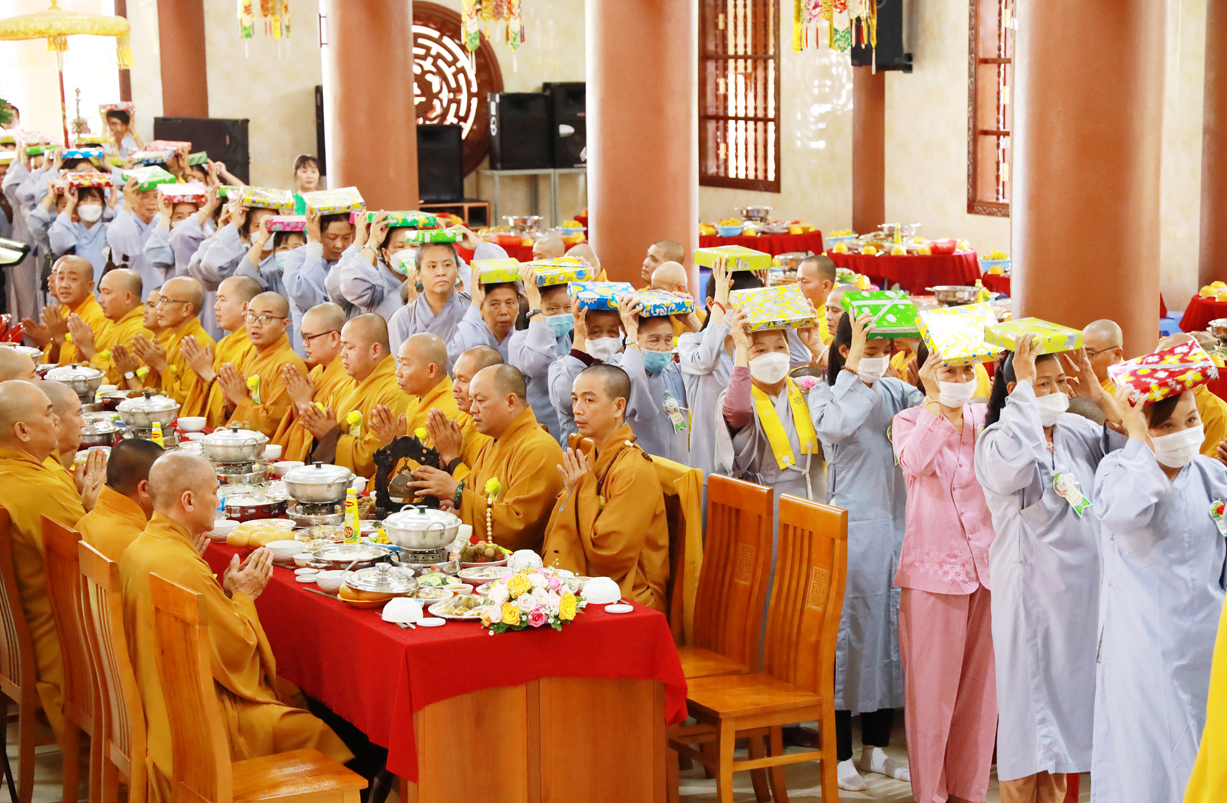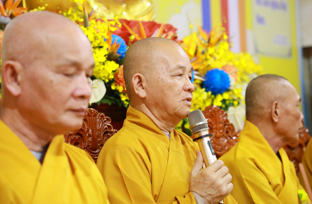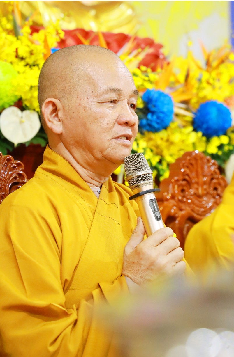 Đại lao chư tôn đức chứng minh, Hòa thượng Thích Minh Thiện có lời đạo từ tại buổi lễ. Đầu tiên, Hòa thượng nói về duyên khởi ngày chư Tăng thọ tuế theo Kinh Tự Tứ, thuộc Tăng Nhất A-hàm. Vào thời đức Phật, vào ngày trăng tròn đức Thế Tôn đã báo ngày A Nan kích kiền chùy để báo chư Tăng hôm nay Đức Thế Tôn muốn thọ tuế, tự tứ. Sau khi đại chúng tập trung, Đức Thế Tôn đã hỏi Ngài Xá Lợi Phất và chư Tăng trong suốt ba tháng An cư Kiết hạ, qua sự diễn giải chánh pháp, qua những hành xử nơi thân khẩu ý của Ngài, đại Tăng có điều chi cảm thấy hiềm trách thì nói lên để những sai phạm được đầy đủ kiến văn nghi. Xá Lợi Phất thay chư Tăng trình bạch: Thân khẩu ý của Ngài là bất thất, Ngài là Đại giác ngộ. Ngài Xá Lợi Phất lại trình bạch Thế Tôn: Nếu bản thân con qua thấy, nghe, nghi mà có tội thì con sẽ sám hối. Ngài tiếp tục thay chư Tăng bạch như thế. Đức Phật khen ngợi Ngài Xá Lợi Phất và Đại Tăng không có tội, đại chúng thanh tịnh. Với sự thanh tịnh ấy tạo thành một uy đức lớn lao, giúp tăng trưởng đạo nghiệp. Hòa thượng nói về duyên khởi Ngài Đại Hiếu Mục Kiền Liên cứu mẹ nương nơi uy đức Phật và Đại Tăng. Nhờ công đức cúng dường và sức chú nguyện của chư Tăng mà mẹ Ngài phát lòng kính tin Tam bảo, phát khởi lòng hỷ xả, hoan hỷ, do vậy mà được siêu sanh về cảnh giới chư Thiên. Hòa thượng nhắc nhờ hàng Phật tử hãy sống theo lời Phật dạy, tin sâu nhân quả, chánh tín Phật giáo và sống trong sự từ bi và trí tuệ của đạo Phật.