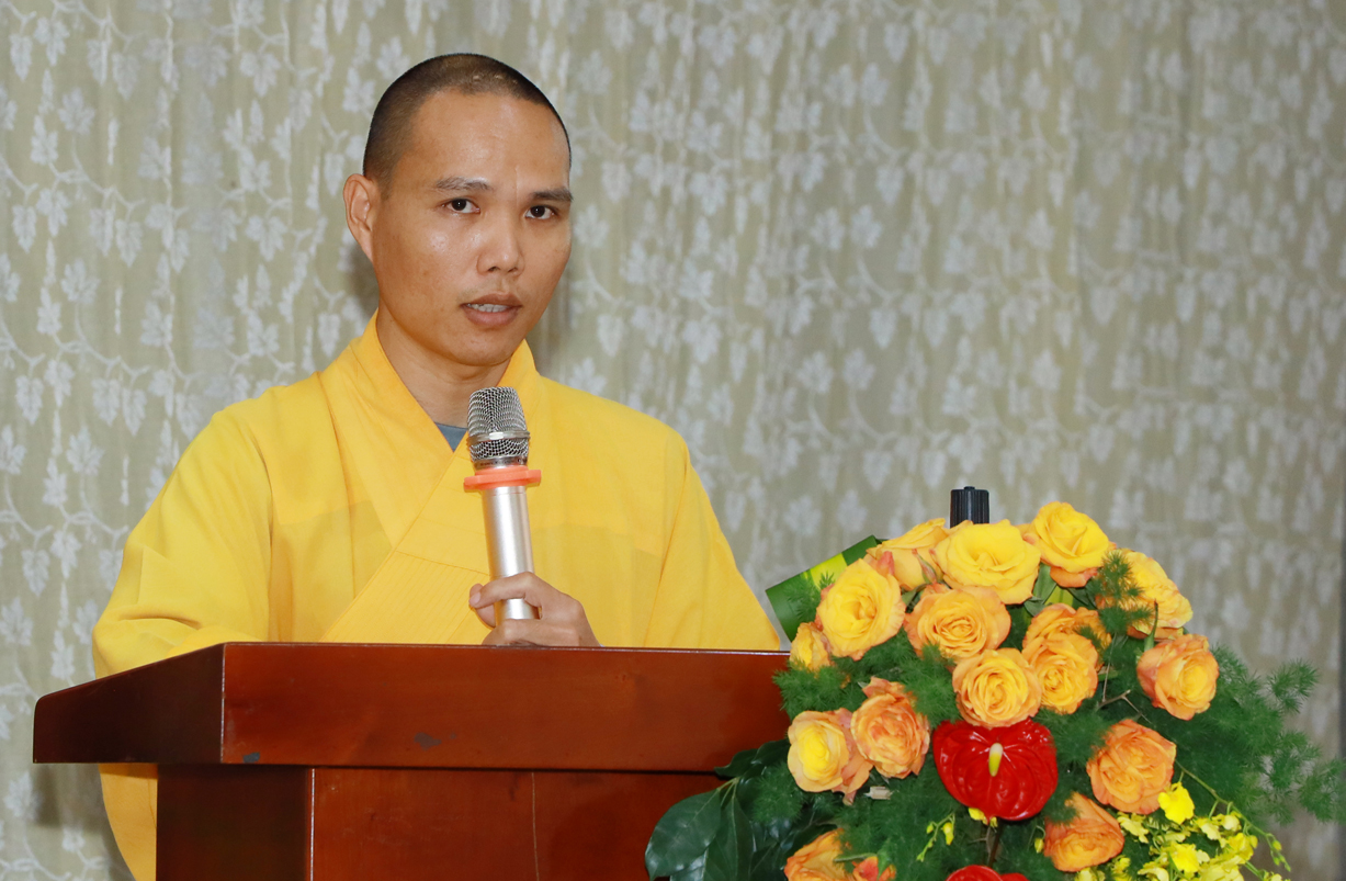 Sau khi tuyên bố lý do, giới thiệu thành phần tham dự, Đại đức Thích Minh Tâm đã tuyên đọc ý nghĩa cài hoa hồng và hướng dẫn quý Phật tử trong đội cài hoa kính dâng lên Chư tôn đức, các cấp lãnh đạo chính quyền và toàn thể đạo tràng Phật tử.