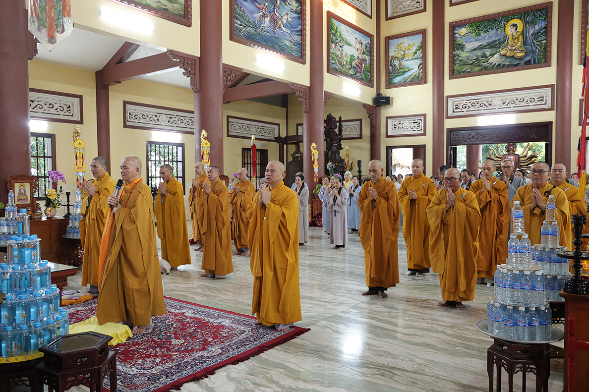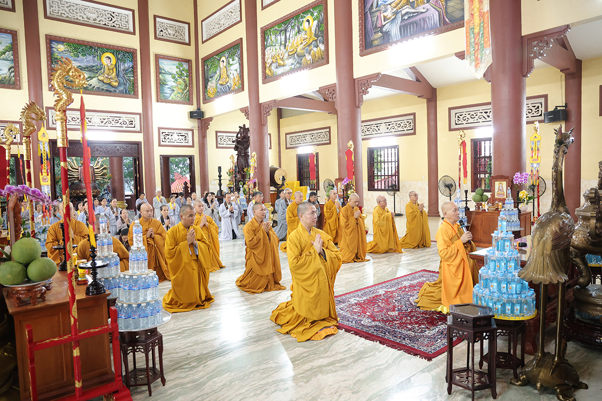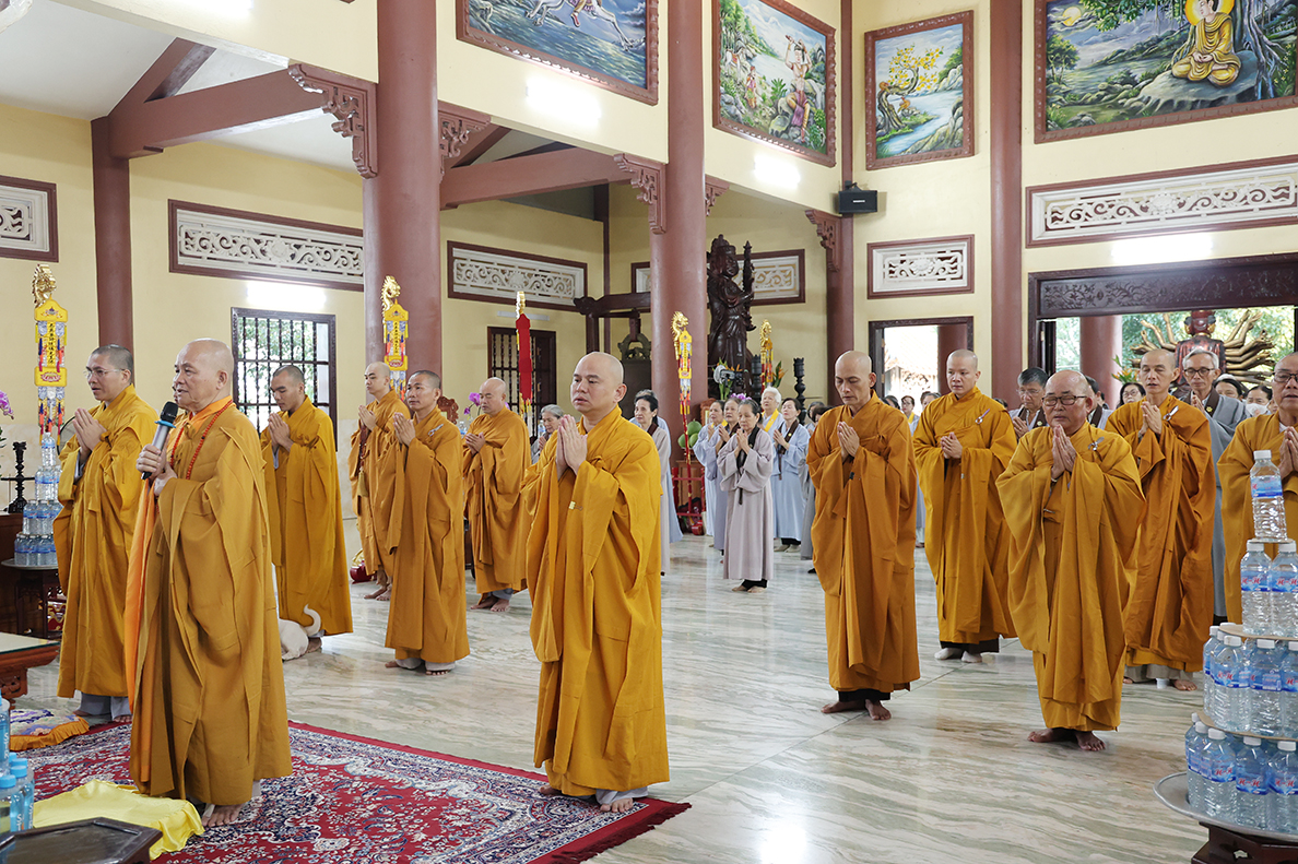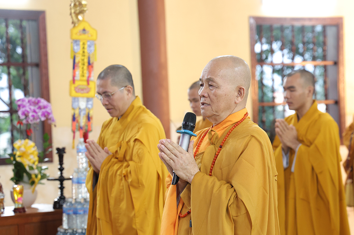 Tại buổi lễ, Hòa thượng Thích Minh Thiện đã trang nghiêm thực hiện nghi thức niêm hương, bạch Phật, hướng dẫn đại chúng tụng kinh và thực hiện các nghi lễ tâm linh cầu nguyện Quốc thái dân an, thiên hạ thái bình, đất nước thịnh trị, khơi dậy sức mạnh đoàn kết dân tộc, hồn thiêng sông núi đất nước Việt Nam.