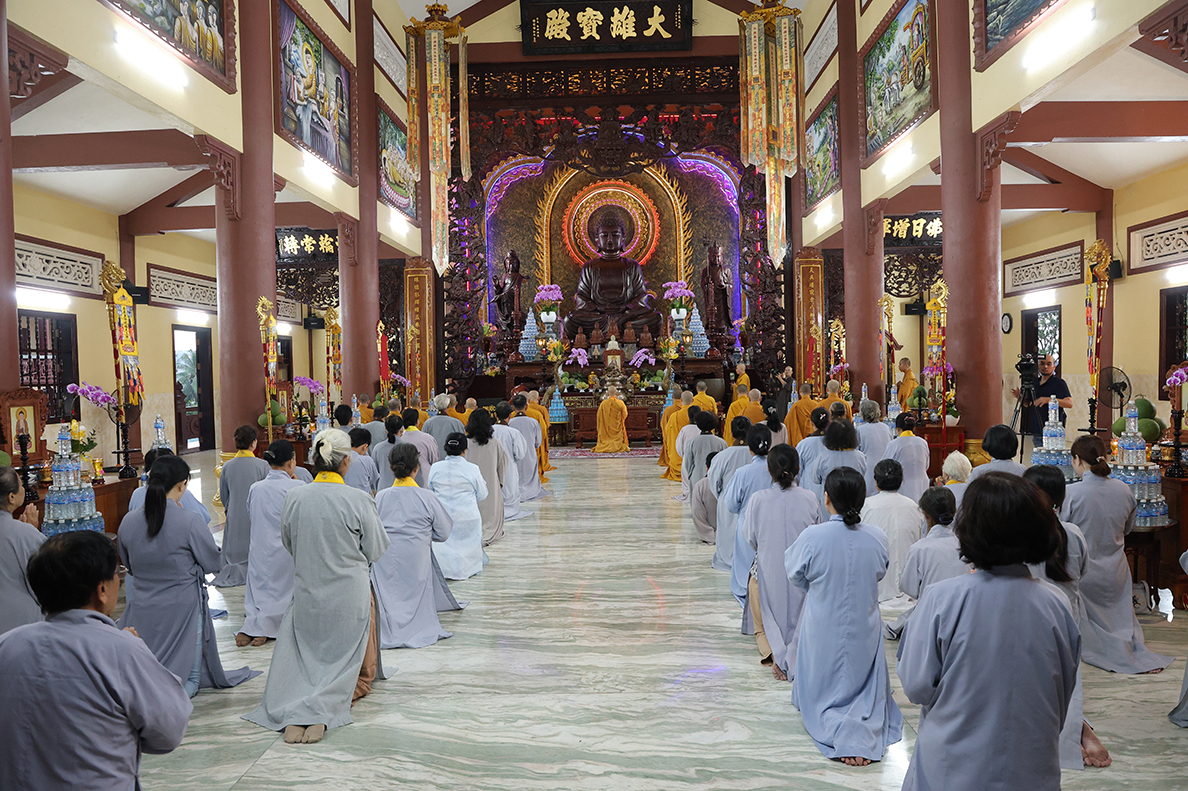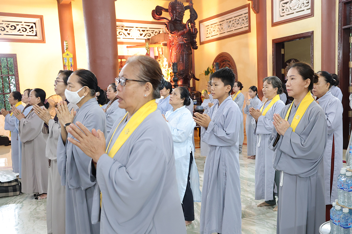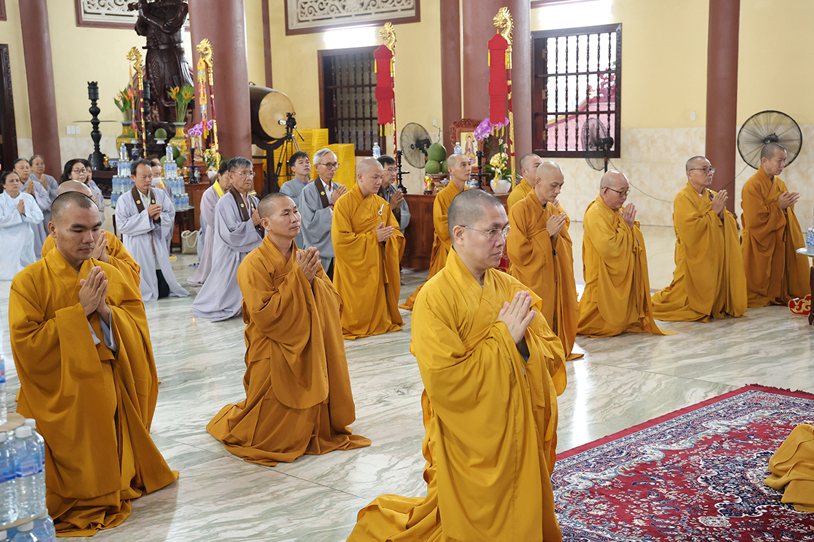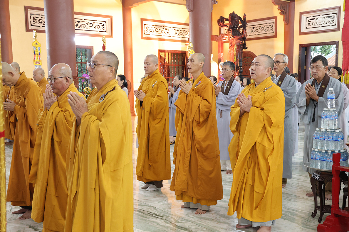 Tại buổi lễ, Hòa thượng Thích Minh Thiện đã trang nghiêm thực hiện nghi thức niêm hương, bạch Phật, hướng dẫn đại chúng tụng kinh và thực hiện các nghi lễ tâm linh cầu nguyện Quốc thái dân an, thiên hạ thái bình, đất nước thịnh trị, khơi dậy sức mạnh đoàn kết dân tộc, hồn thiêng sông núi đất nước Việt Nam.