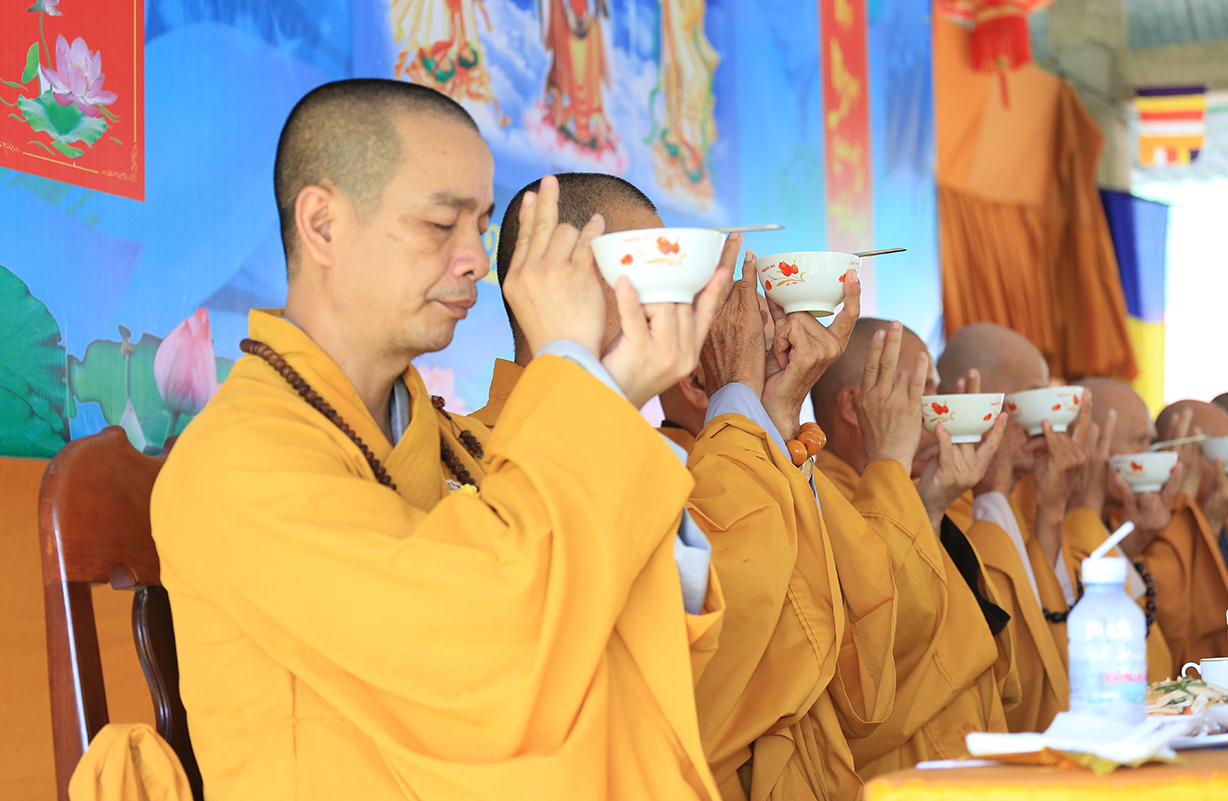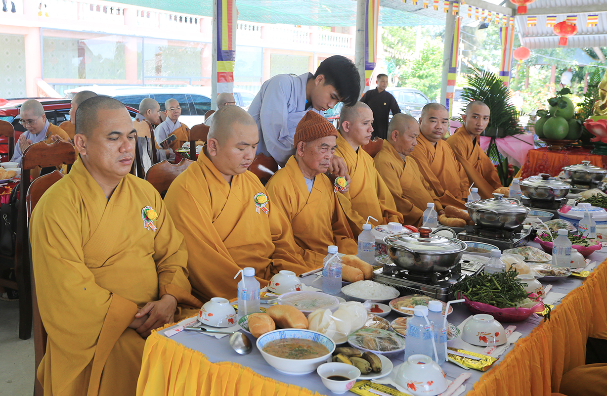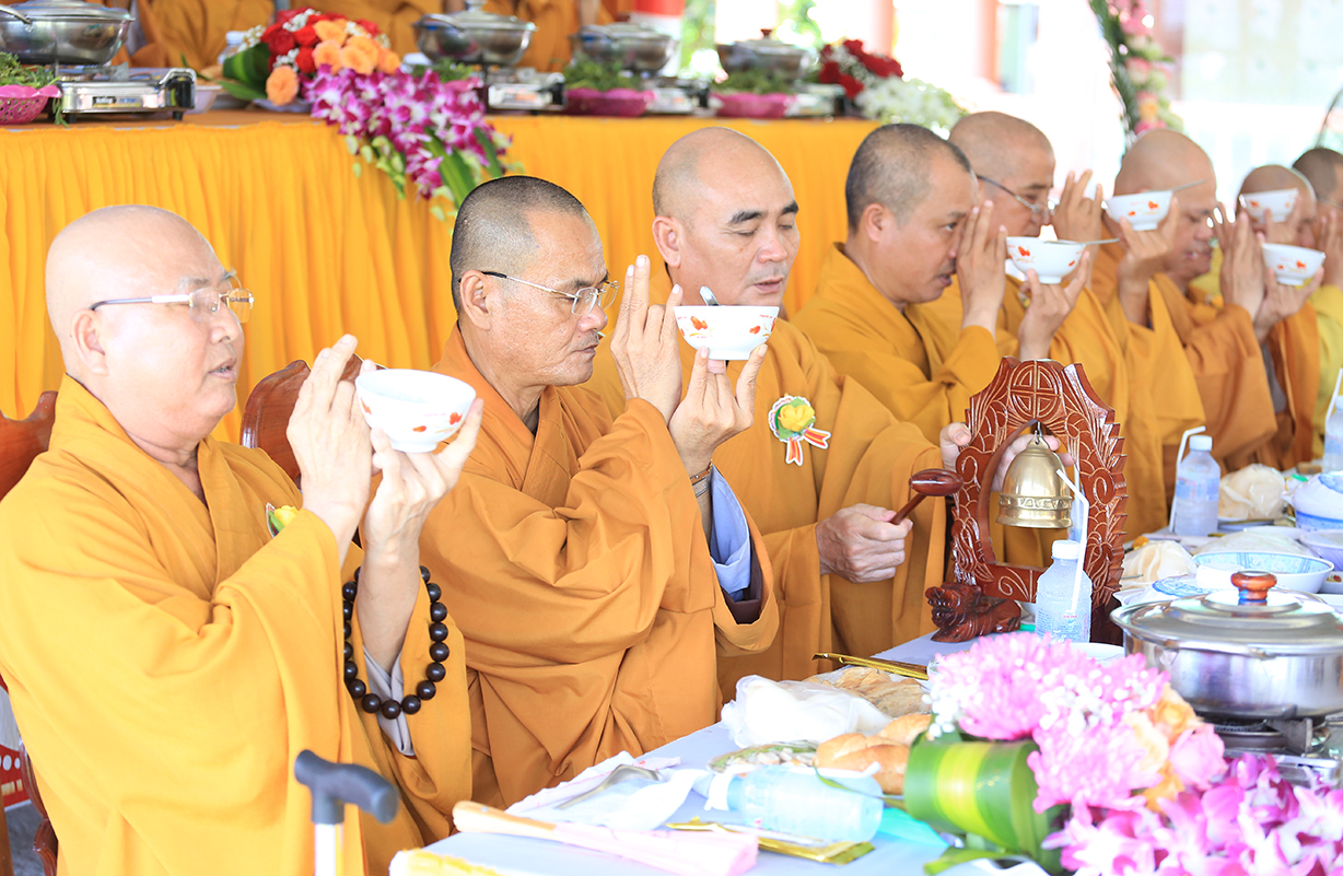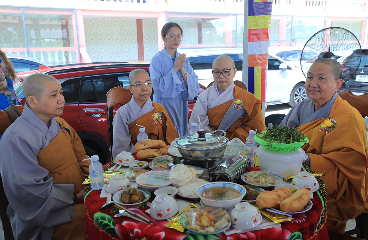 Nối tiếp buổi lễ là Khoá lễ Thọ trai của Phật tử chùa Thiền Tông dâng vật phẩm cúng dường Chư Tôn đức theo nghi lễ truyền thống của Phật giáo.