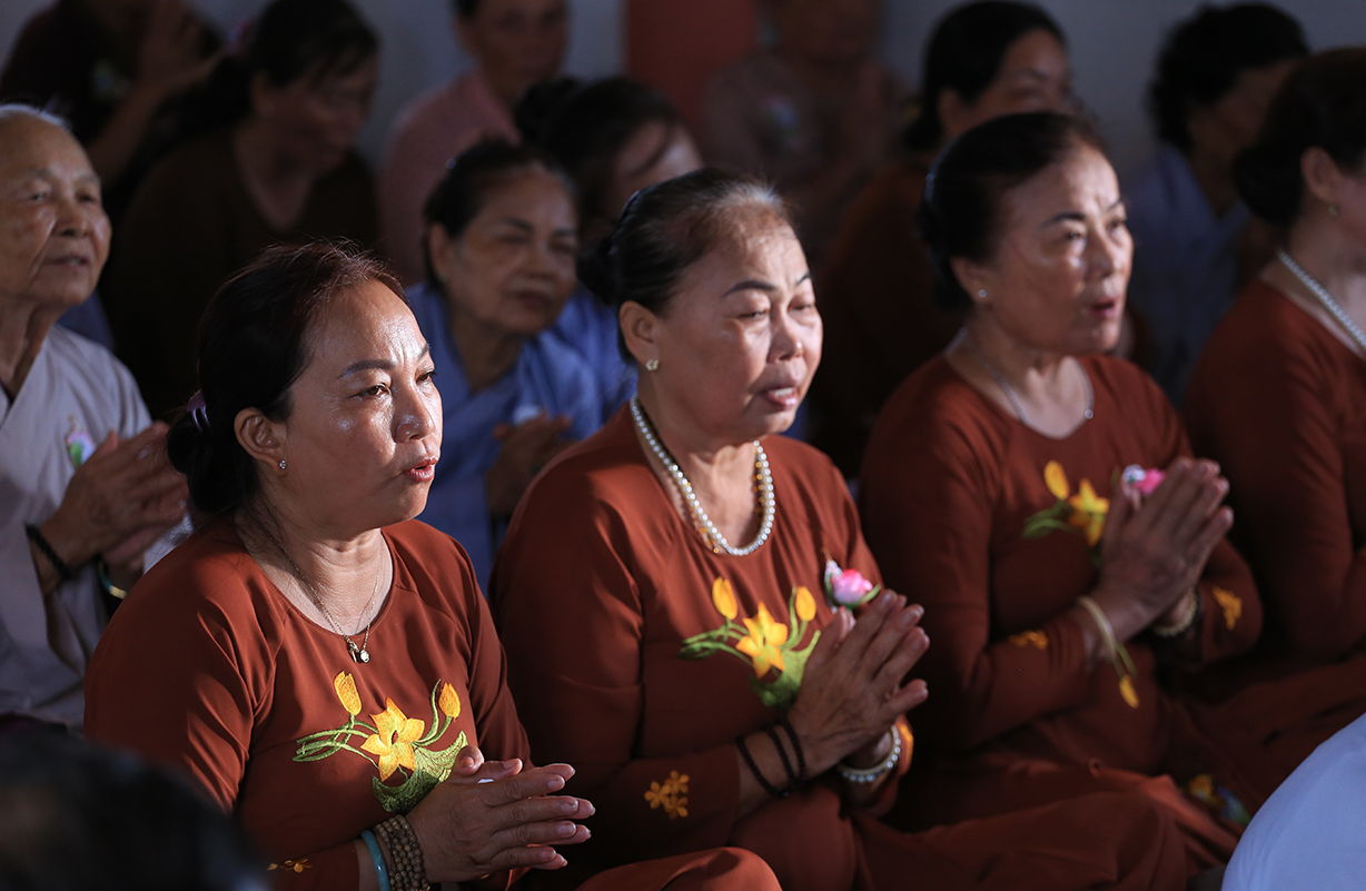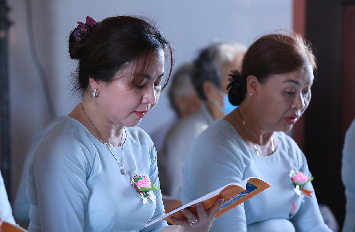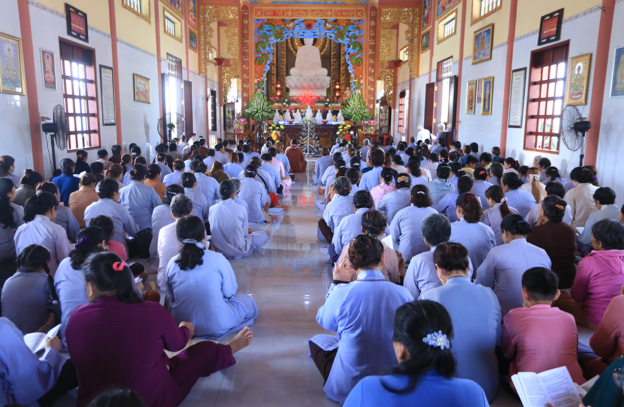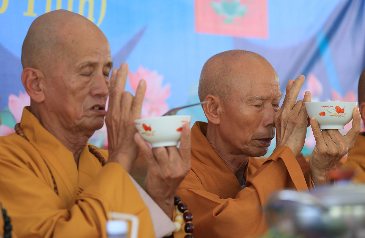 Nối tiếp buổi lễ là Khoá lễ Thọ trai của Phật tử chùa Thiền Tông dâng vật phẩm cúng dường Chư Tôn đức theo nghi lễ truyền thống của Phật giáo.