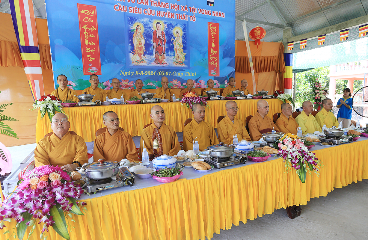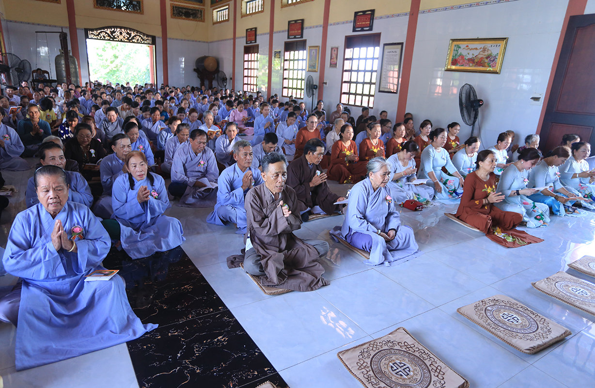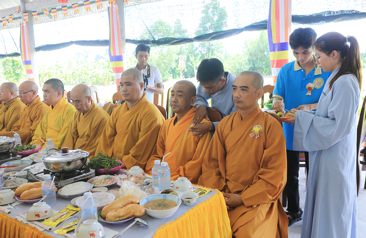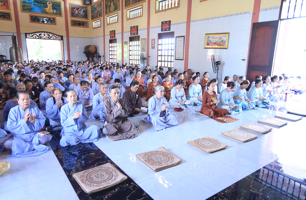 Đãi lao Chư Tôn đức chứng minh, HT. Thích Nhật Liên – Nguyên Trưởng BTS GHPGVN huyện Cai Lậy ban lời đạo từ đến toàn thể đạo tràng chùa Thiền Tông. Hoà thượng tôn vinh tinh thần báo ân của chư Tăng và Phật tử chùa Thiền Tông trong mùa hiếu hạnh. Mùa Vu Lan báo hiếu là mùa của tình yêu thương, là dịp để mỗi người thắp sáng tinh thần tri ân đối với tứ trọng ân. Nhân dịp này, Hoà thượng khuyến khích các Phật tử cần siêng năng làm việc thiện, nuôi dưỡng đạo tâm và tình yêu thương để xứng đáng là những người con Phật chân chính. Hoà thượng cũng nhấn mạnh rằng, lòng hiếu thảo với cha mẹ, ông bà tổ tiên không chỉ nên thể hiện trong mùa Vu Lan, mà còn phải được thực hành trong đời sống thường ngày của mỗi Phật tử.