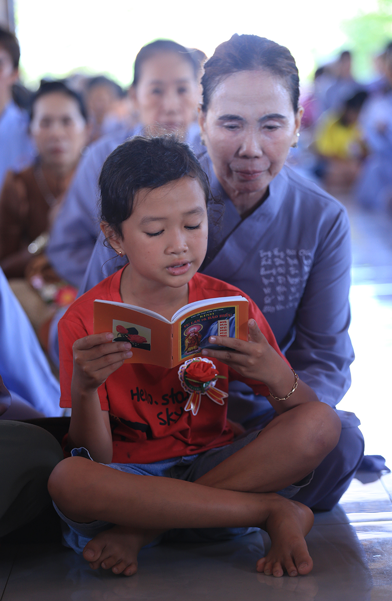 Tiếp đó là nghi thức cài hoa hồng tưởng nhớ tứ ân. Chư Tôn đức đã hướng dẫn Quý Phật tử đạo tràng chùa Thiền Tông dâng lên đóa hồng tươi thắm đến quý Chư tôn giáo phẩm Tăng Ni và cài hoa đến quý Phật tử đạo tràng. Theo ý nghĩa, ai còn cha mẹ sẽ được cài lên ngực áo một đóa hoa hồng đỏ, những người con mất cha hoặc mất mẹ sẽ cài lên ngực áo một bông hồng màu hồng nhạt, ai mất cả cha và mẹ thì sẽ cài lên bông hồng trắng. Hoa hồng trắng mang màu tinh khiết ý nghĩa buồn thương, đồng thời nhắc nhở con người hãy sống thật tốt, thật ý nghĩa để những người ra đi cảm thấy tâm hồn được an nhiên, thanh thản.